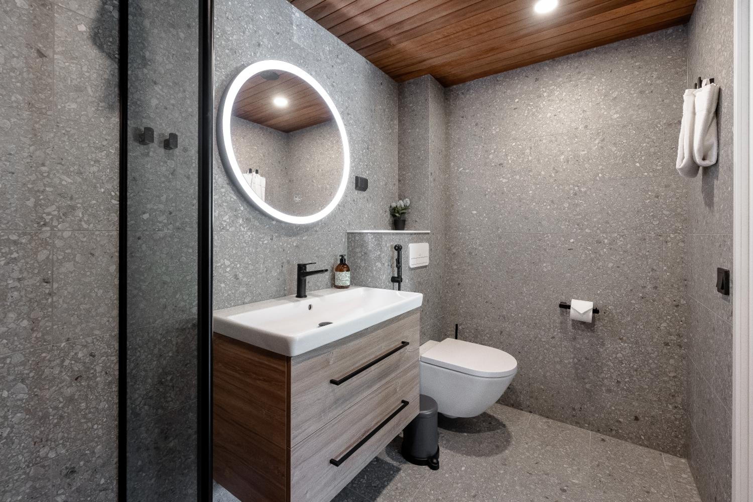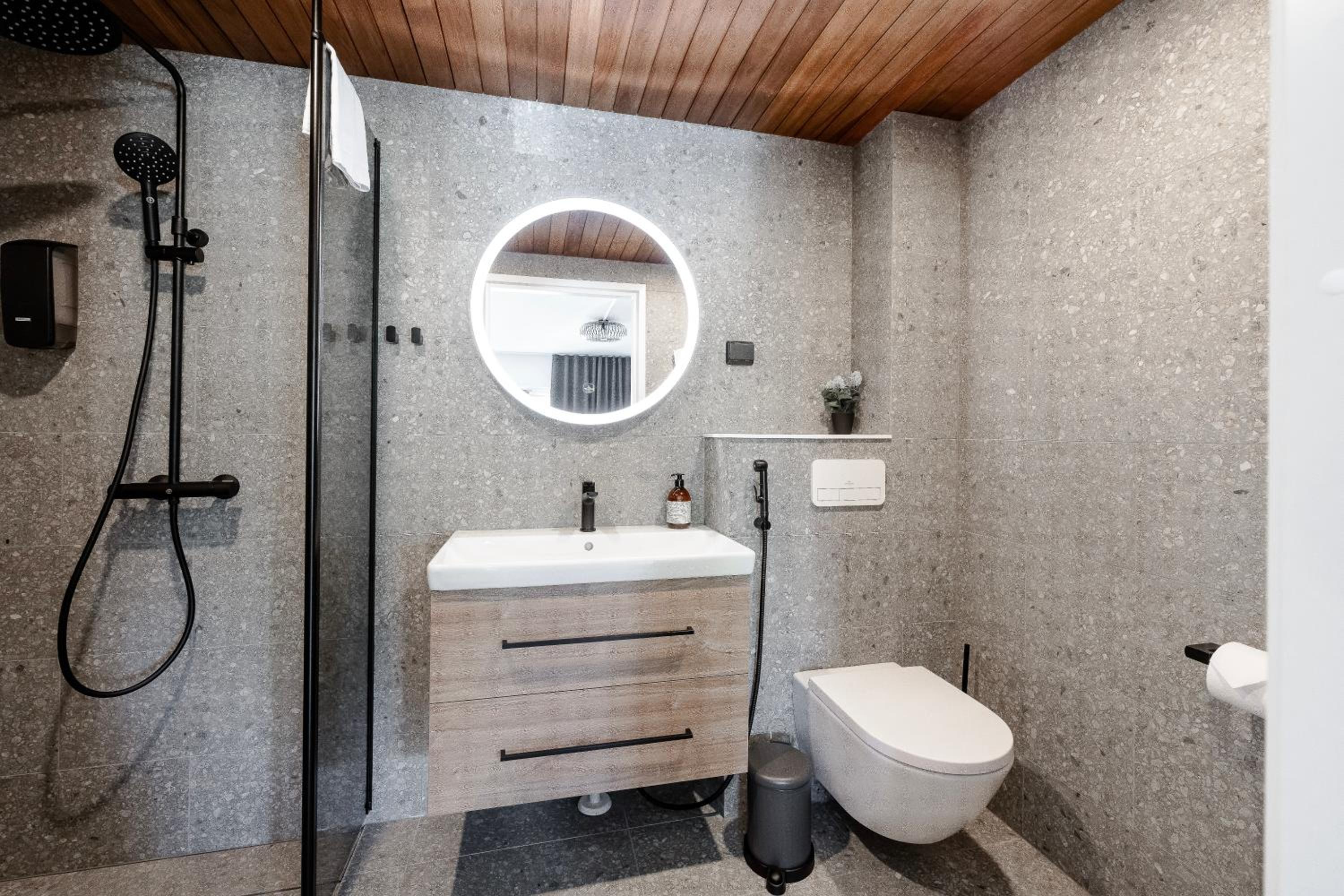 Hyvä sijainti. Ihanaa, että huoneen jäähdytys toimi, koska oli kova helle. Moderni design, korkealaatuiset materiaalit. Liikkuminen tunnusnumeroilla oli helppoa. Arvostimme maksutonta pysäköintiä.
