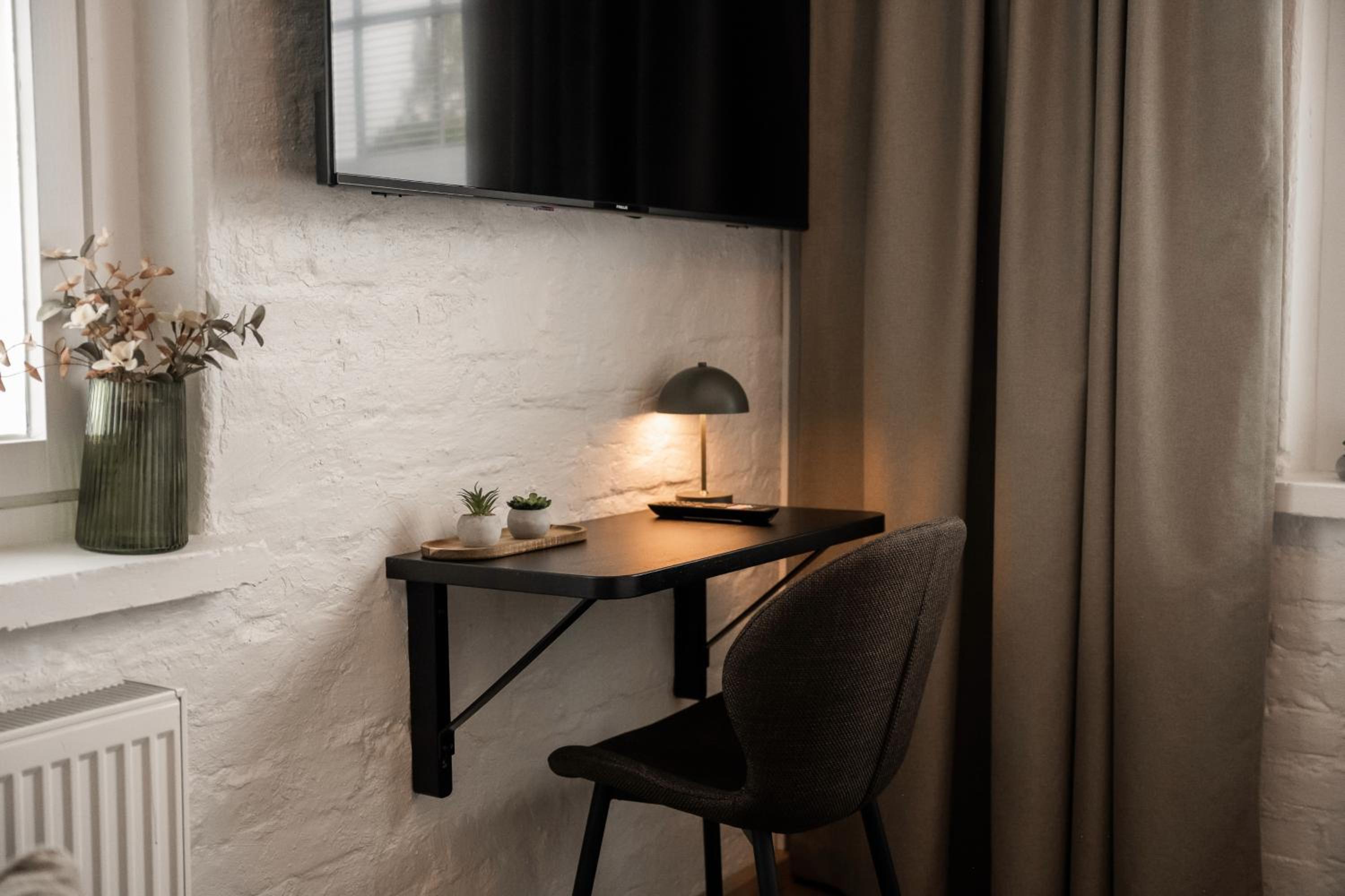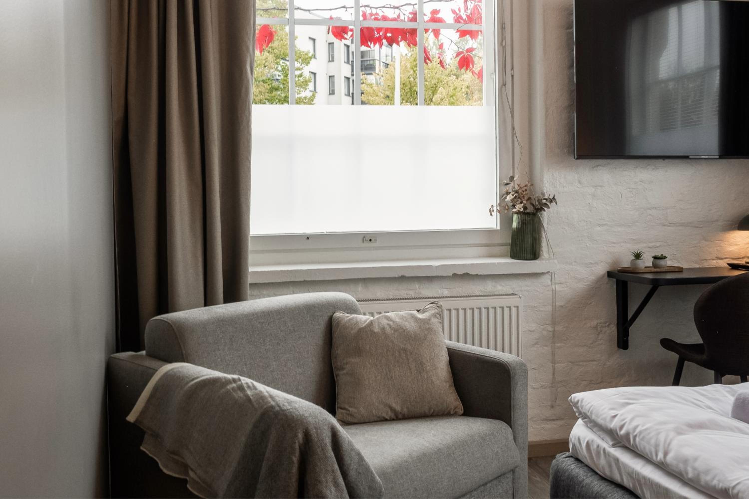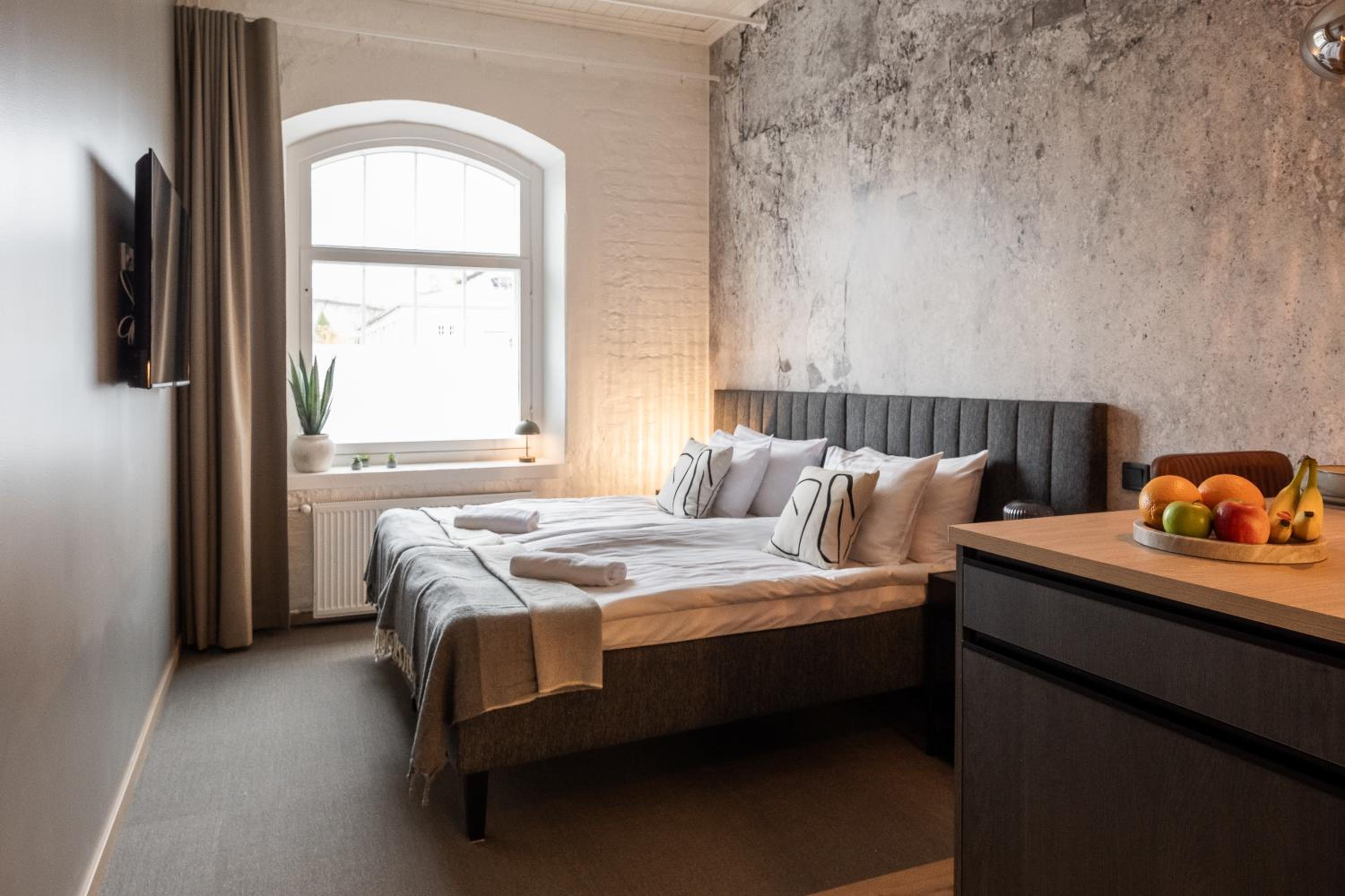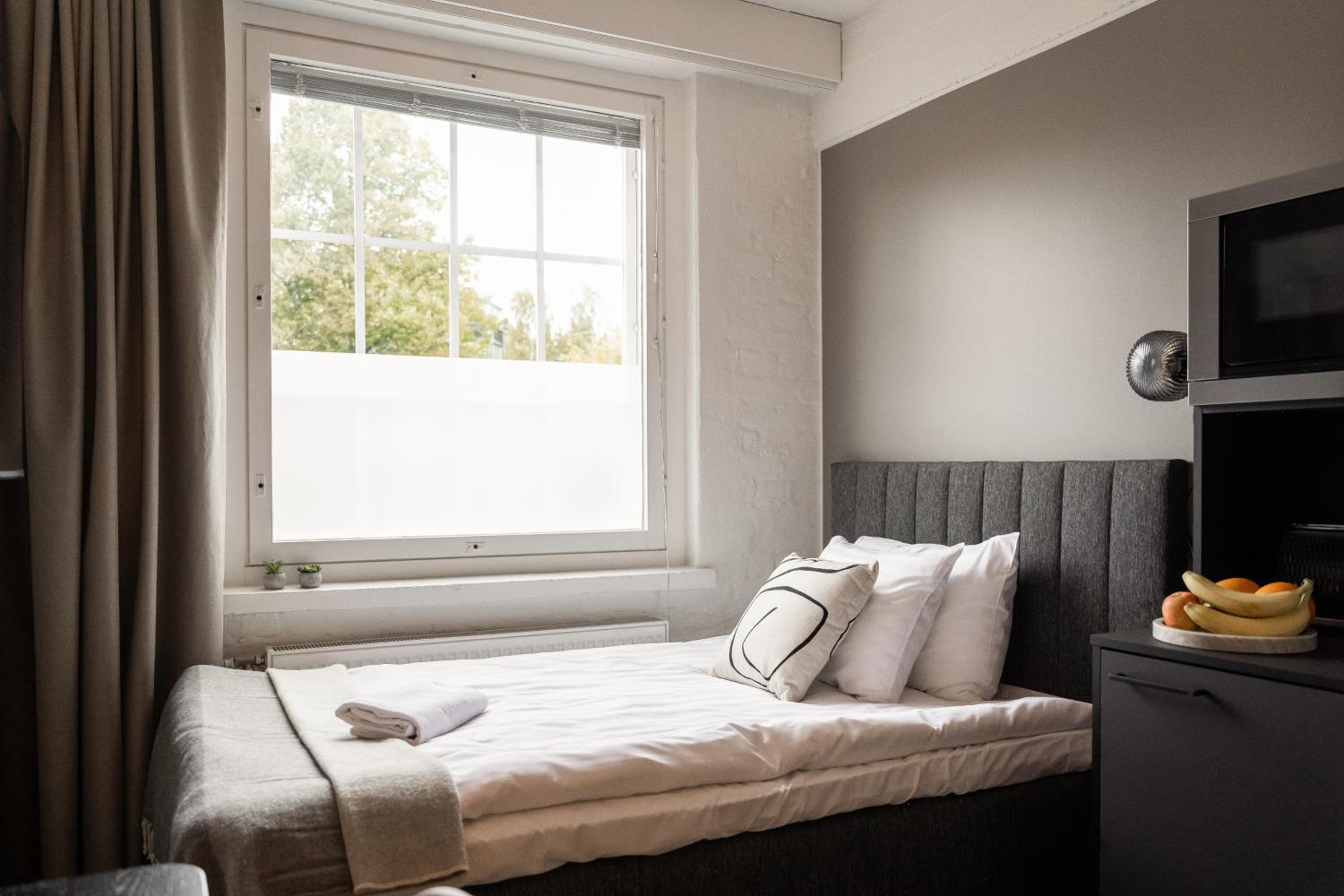 Saamamme huone oli älyttömän pieni eikä siellä ollut tilaa matkalaukuille tai vaatteille. Oven luona oli seinällä naulakko ja muualle ei saanut laitettua vaatteita. Talvella aivan mahdoton kun talvitakit vievät naulakosta kaiken tilan. En voi suositella. Lisäksi huoneen tyylikkyyttä ei ollut kylpyhyoneessa, mikä oli pettymys. Aamupalakin oli pettymys. Oli vedellä jatkettua mehua ja leikkeleissä oli vaihtoehtoina vain kinkku ja jonkinlainen salami.Jogurtti, raejuusto jne. olivat naurettavan pienissä kulhoissa, aivan kuin haluaisivat ettei niitä kukaan söisi. Boutique hotellin pitäisi olla elämys mutta tämä hotelli ei sitä tarjonnut.