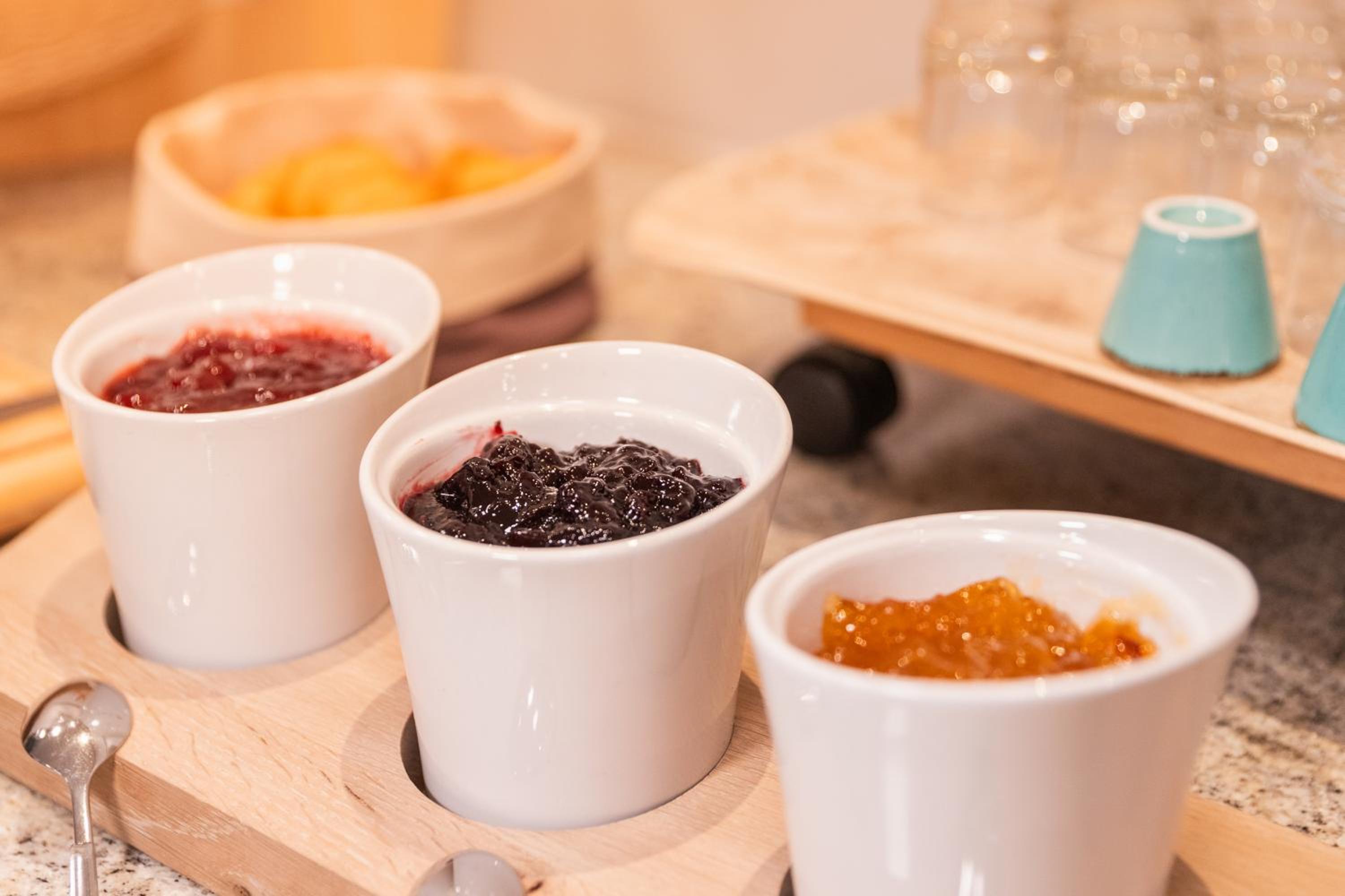 Der Frühstücksraum ist eher ungemütlich, kühl. Es dürfte eine leichte Hintergrundmusik laufen, vielleicht kleine, einfache Deko auf den Tischen.