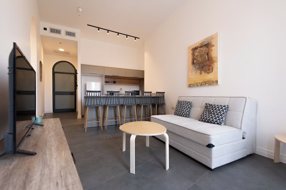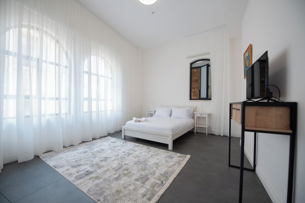 Immerse yourself in luxury at PORT CITY HAIFA - Flea Market Luxury where you can enjoy breathtaking views from the terrace and relax in one of the 2 air-conditioned rooms with fully equipped kitchens.