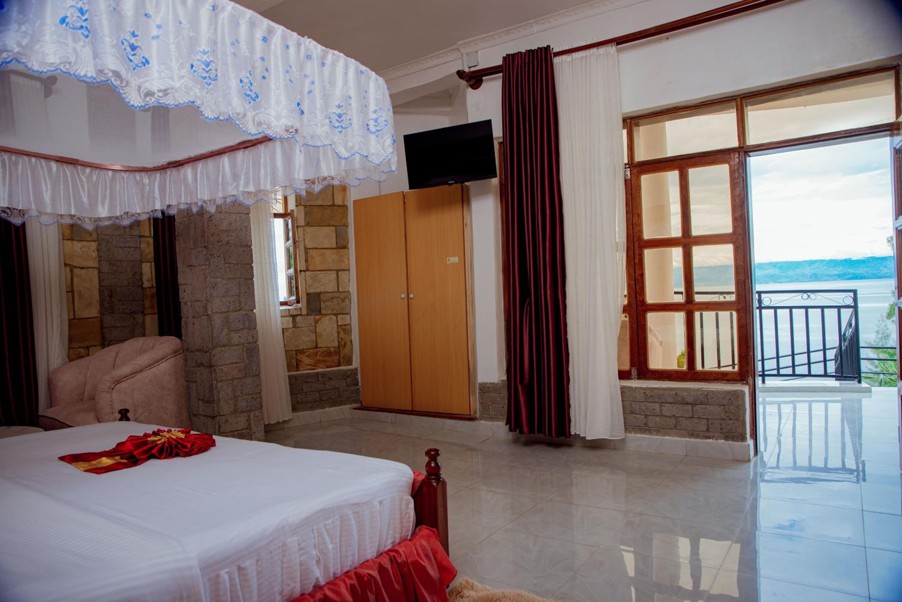 Immerse yourself in the breathtaking beauty of Gisenyi at KIGUFI HILL, Agape Resort & Kivu Edge. Wake up to stunning lake views from your own private balcony. Indulge in luxury with amenities like plush bathrobes and slippers provided in every room. Enjoy the convenience of free WiFi, room service, and a 24-hour front desk. Sit back and relax in the garden or terrace, or treat yourself to a delicious meal at the on-site restaurant and bar. With family rooms available, this 3-star hotel is perfect for all travelers. Plus, being just 14 km from Goma International Airport, your journey to relaxation begins the moment you arrive. Book your stay now for an unforgettable experience.