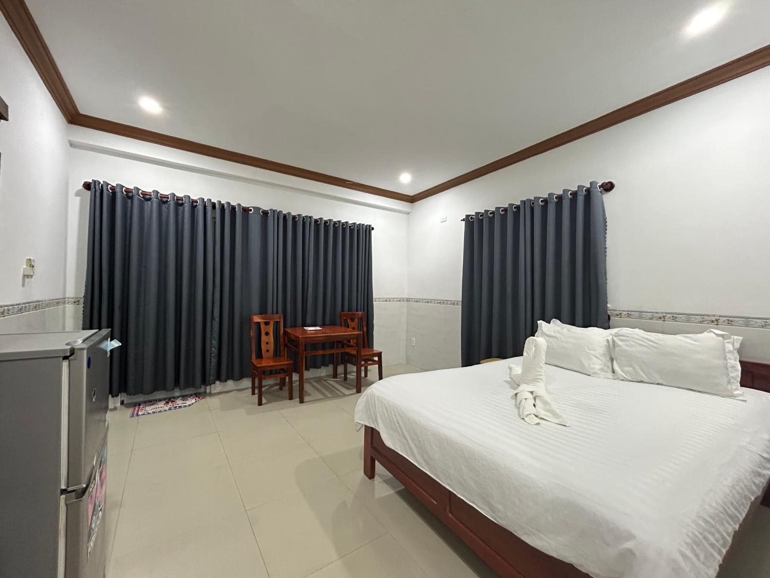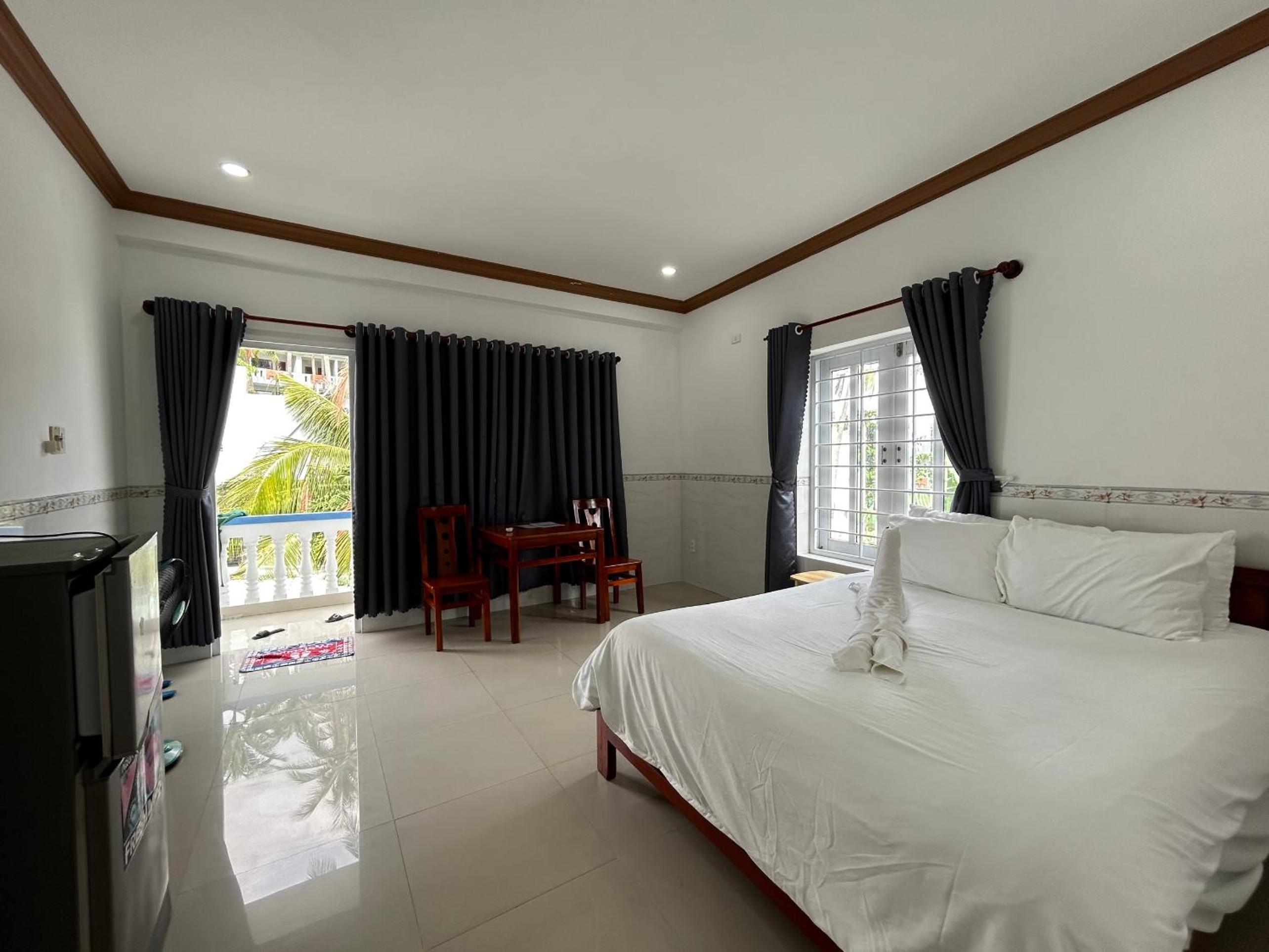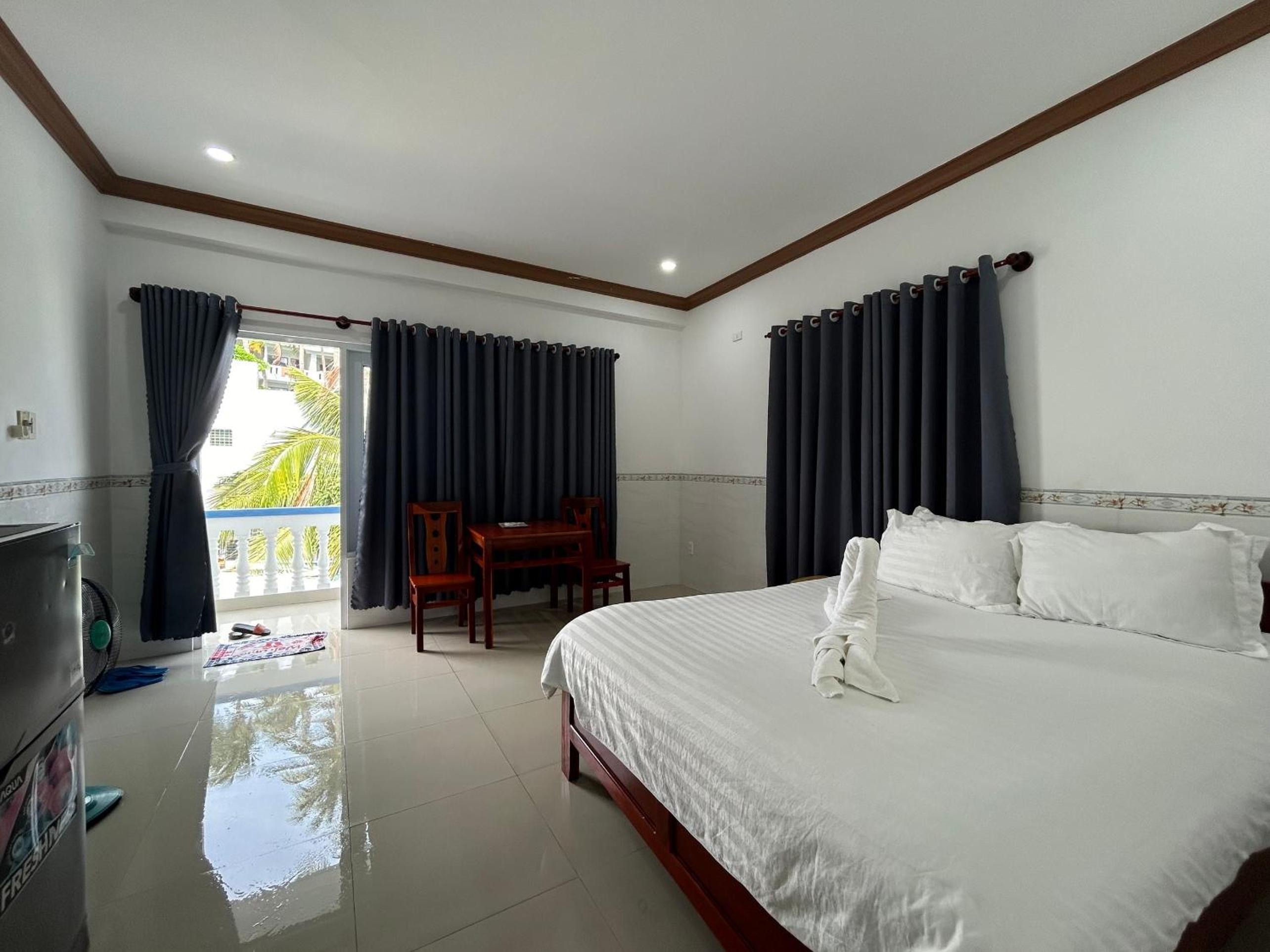 房间空间很大,非常干净,有阳台和天台,提供空调、风扇、冰箱,在炎热的美奈是必要的.老板很热情,续住无房后给免费升级了其他房间.位置靠近海边,距离美奈鱼市几公里,提供餐饮服务、租车服务等等,价格合理.下次来还会继续选择这里.