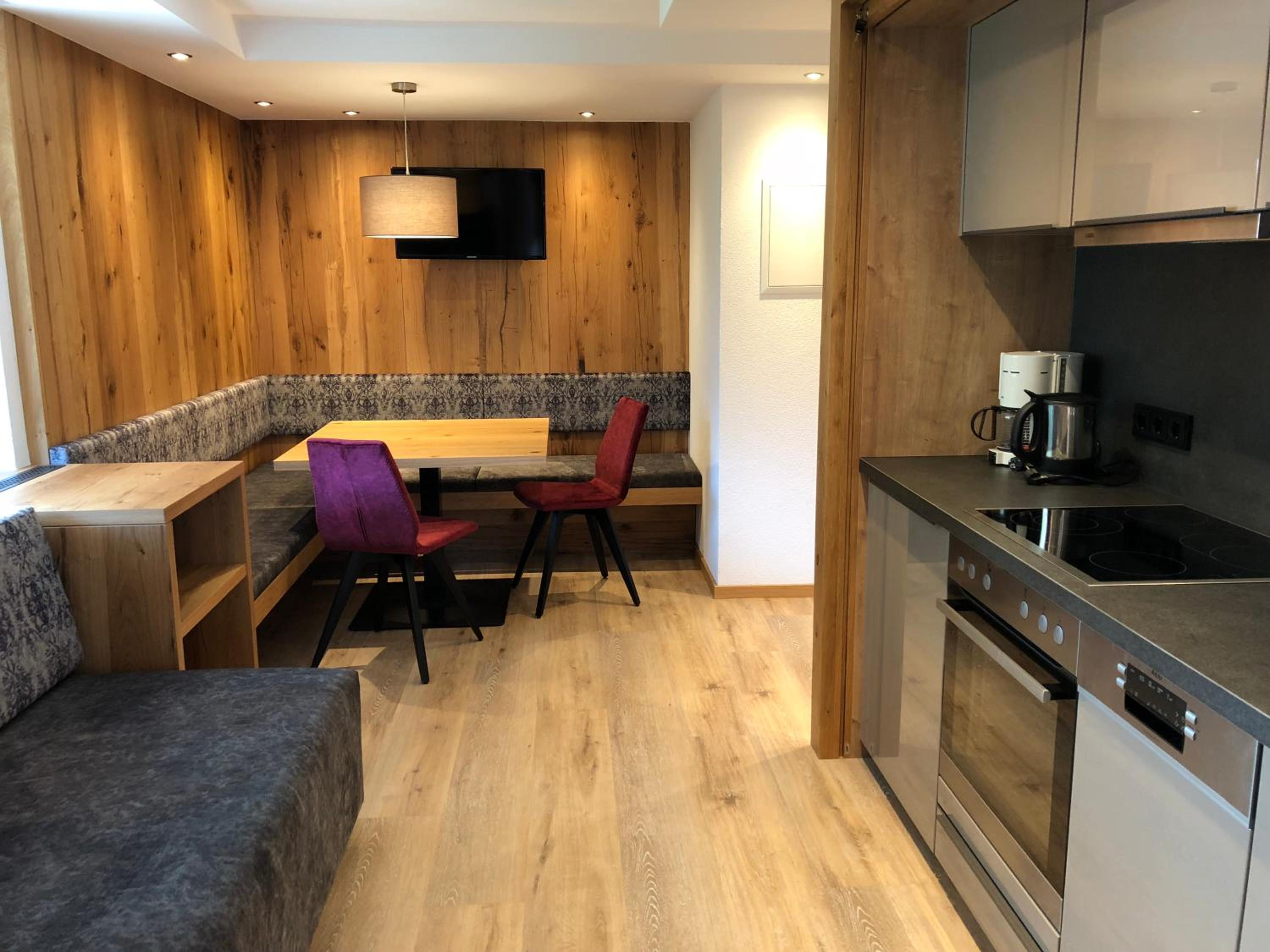 Wij hadden een erg mooie en brandschone kamer met balkon. Mooie badkamer, goed wifi, dichtbij het kleine centrum van Kappl. Hele vriendelijke uitbaters. Ontbijt was heel uitgebreid voor een relatief klein hotel/pension. Ook wat variatie tussen de dagen, prettig. Het bakken van een eitje of andere varianten werd graag gedaan. Het hele dal is prachtig met kabelbanen, stuwmeren, hangbruggen, etc. De beek loopt langs het huis en het geluid is aanwezig met het raam open, maar dat dempt alle eventuele andere geluiden.