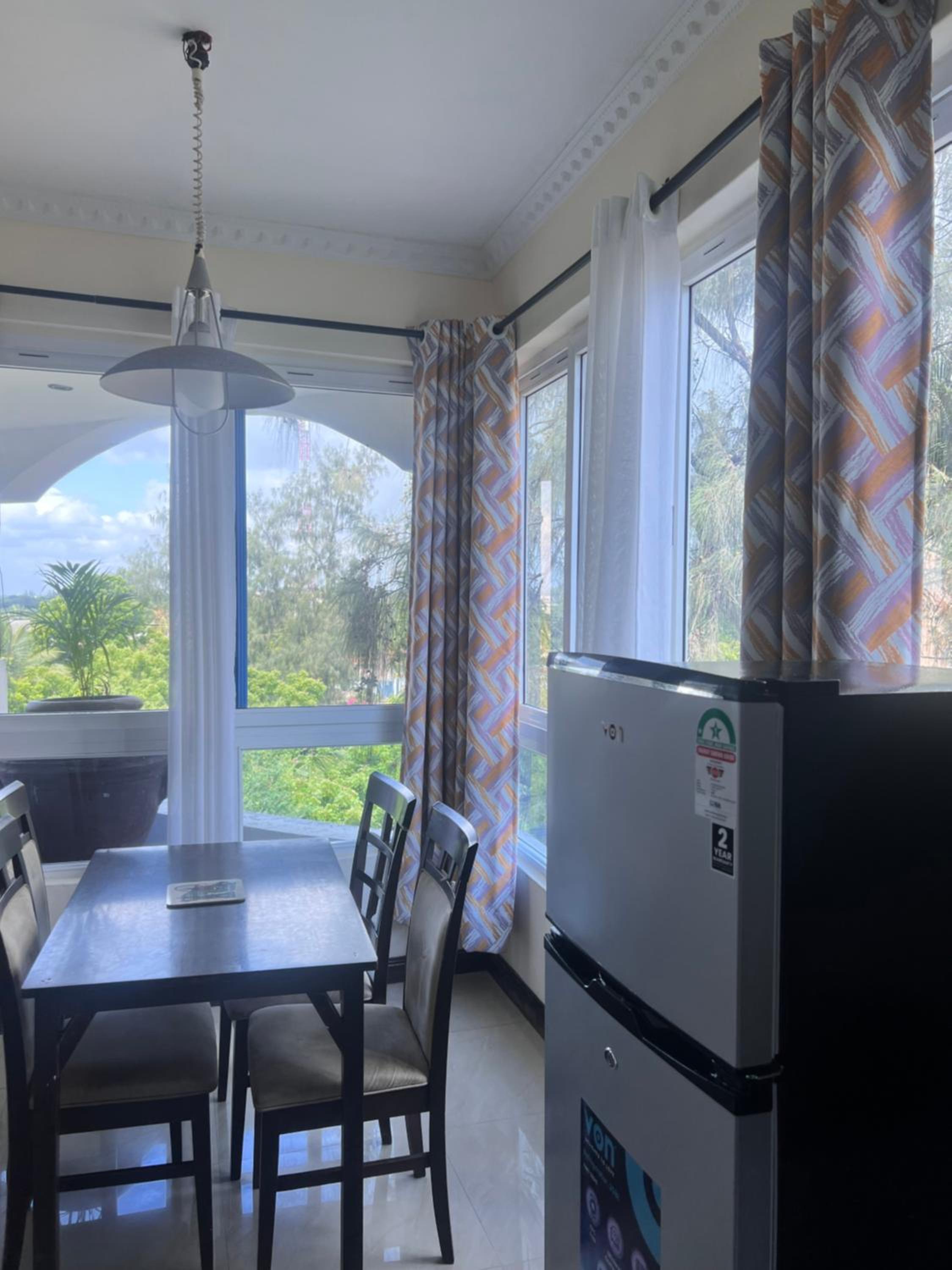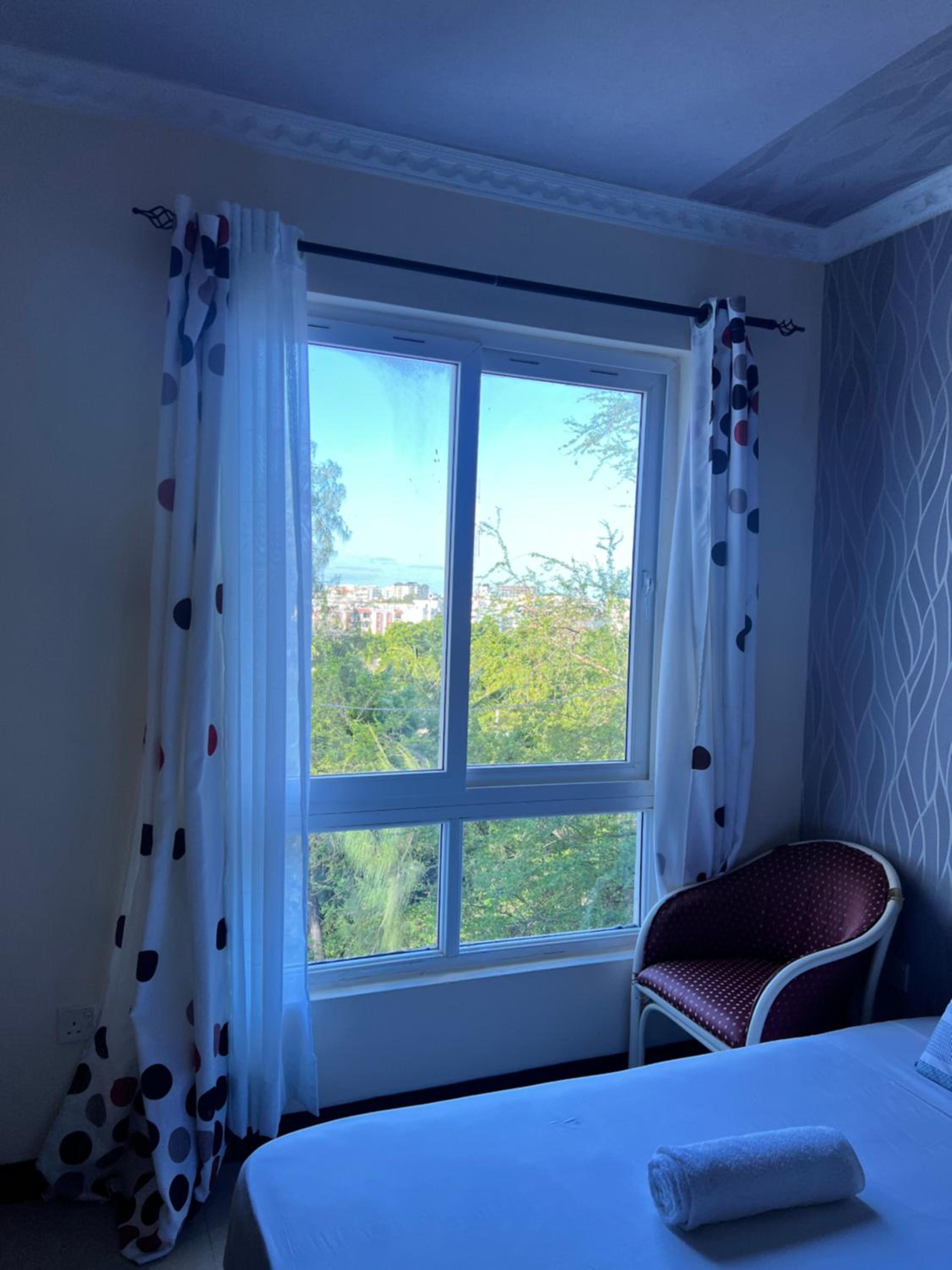 It’s set on a lovely quiet road in Nyali, close to the mall and beach. The outdoor pool area is good and has a clean pool. The staff were great and served nice food. The apartment had everything we needed and a balcony where we could spot wild birds and monkeys (make sure you keep your window closed when out otherwise monkeys can enter).