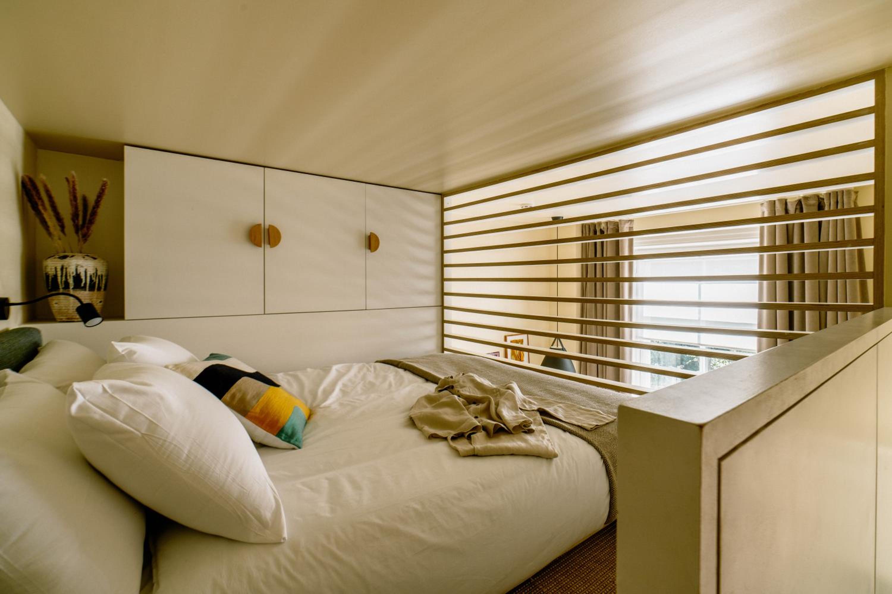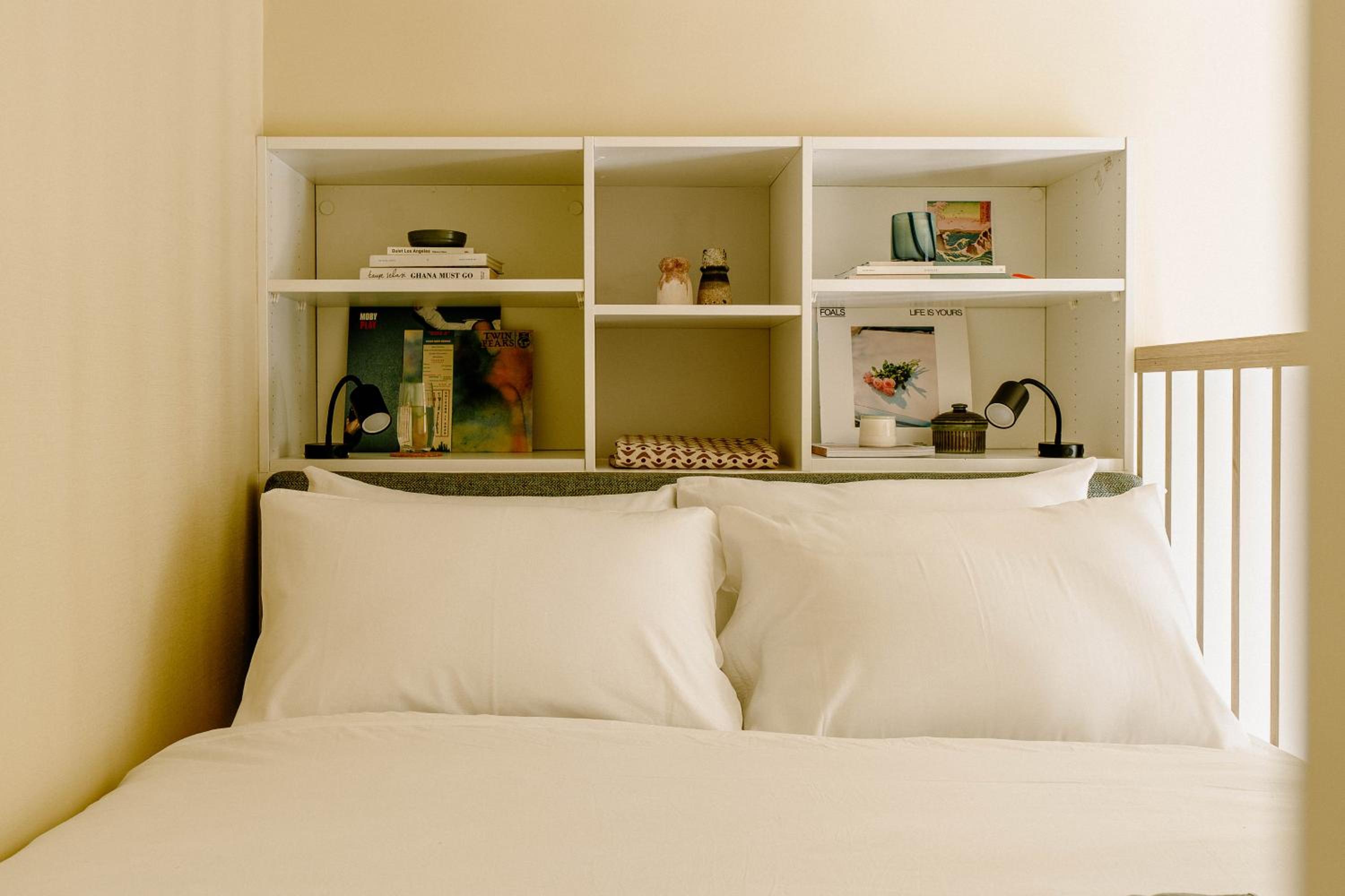 Double bed pushed into the corner of the room was small and pillows uncomfortable. Would have been difficult if staying as a couple. Also the one side with access had a poorly positioned shelf which would not have been high enough to avoid anyone over 6ft3 knocking their head getting in/ out of bed.