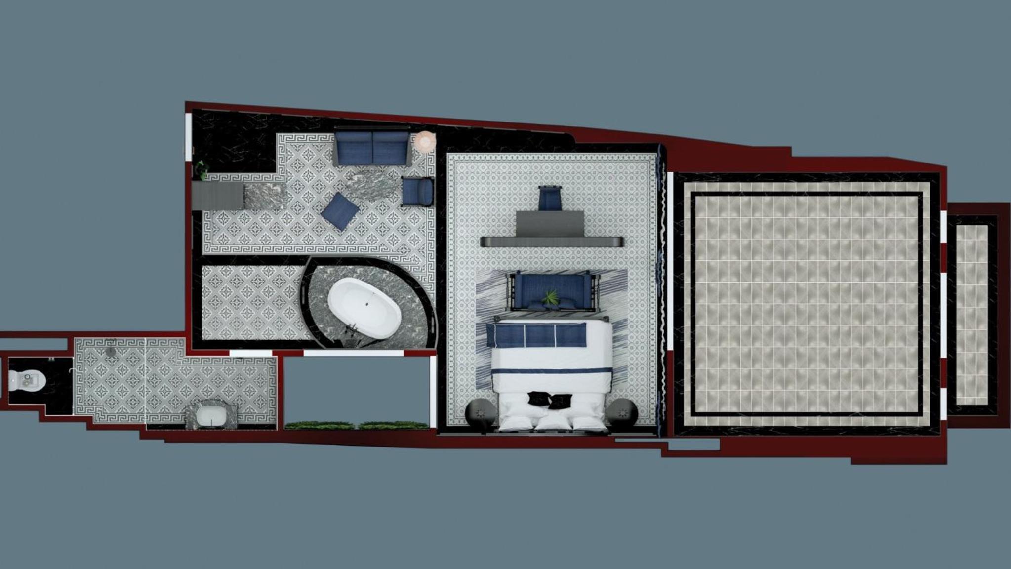 Les fauteuils sur la terrasse de la suite mériteraient des coussins pour pouvoir en profiter.