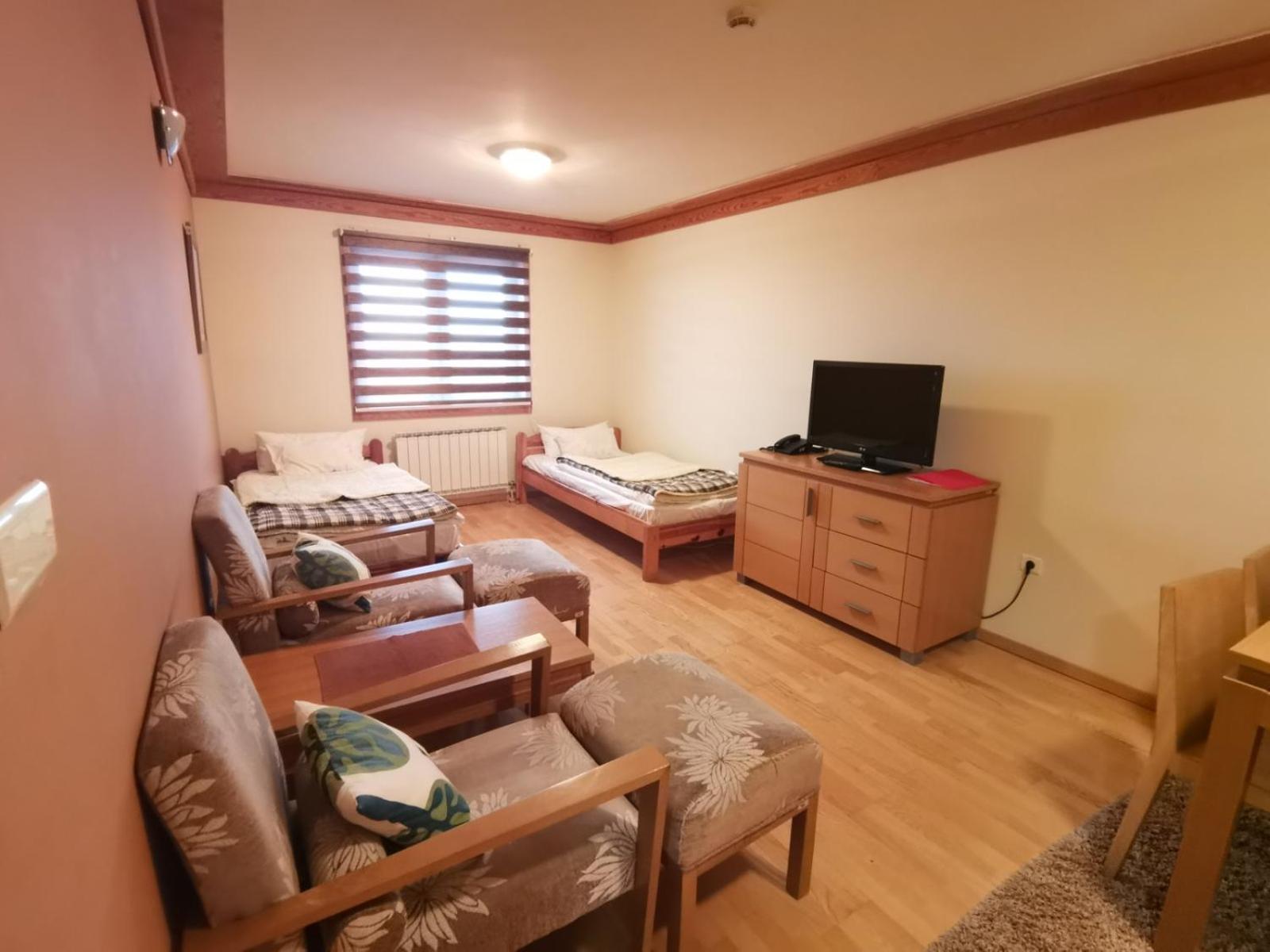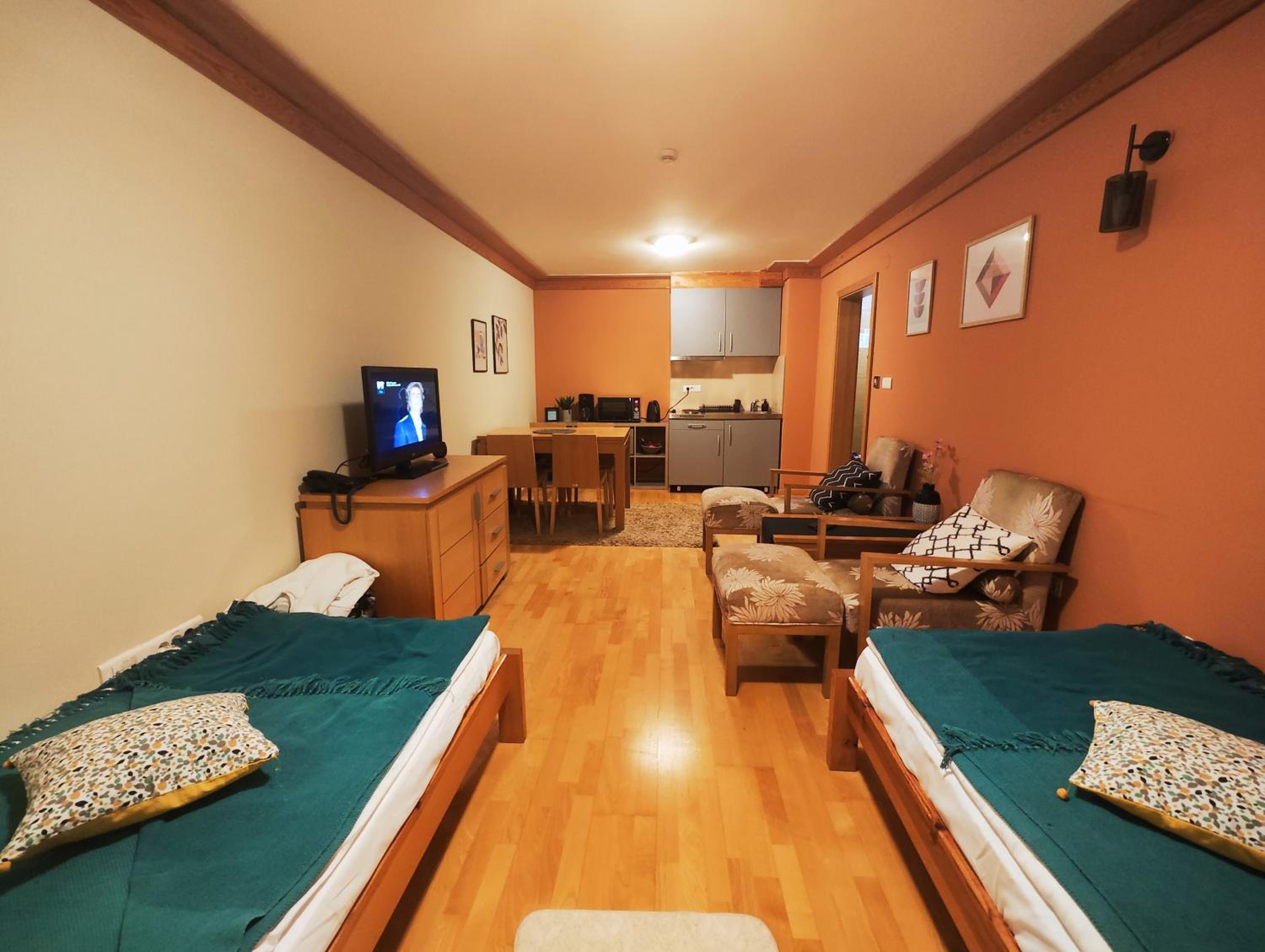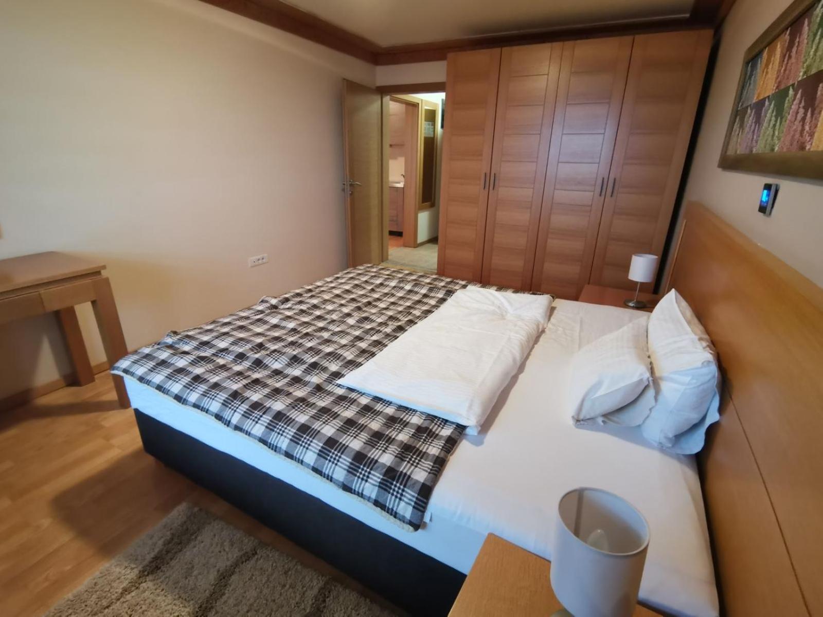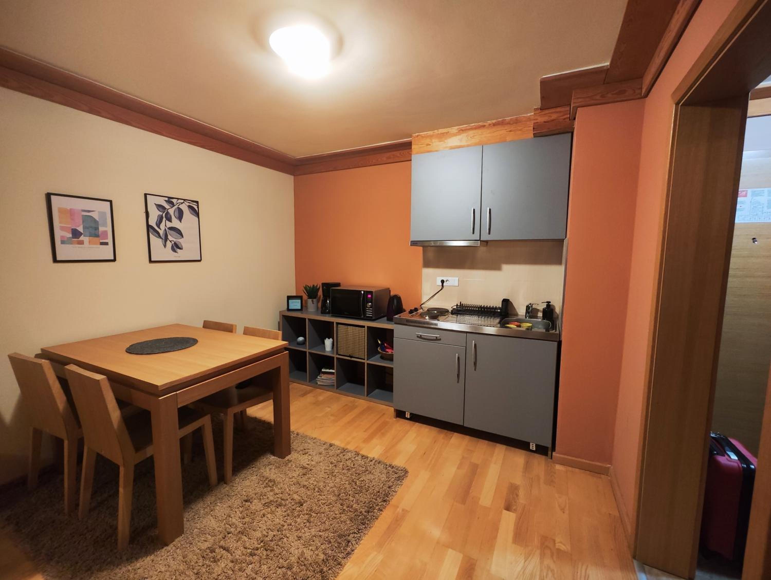 The apartment was very clean and tidy with extremely comfortable bed for a good night sleep :) Great size, it can comfortably fit a family of four to five. The kitchen is fully equipped with all necessary appliances. Great location, just a minute walk from the main cable car and with well organized ski depot in the hotel, including ski locker with boot driers, the property offers hassle free ski holiday. The property owner and hotel staff were all very helpful and polite. Definitely a great experience!