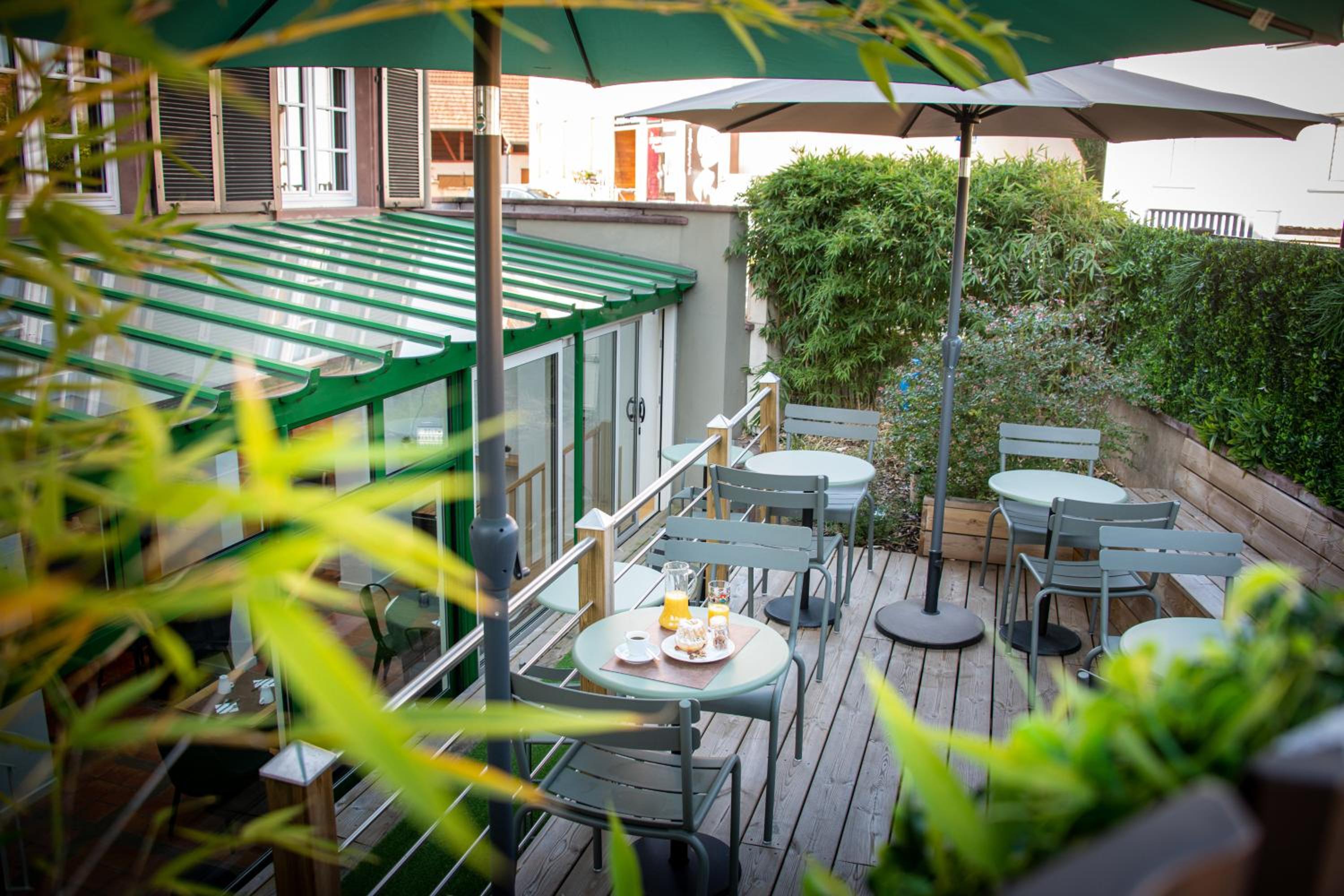 Posizione nel tranquillo villaggio di Reichstett accanto alla chiesa con le campane che scandiscono le ore e alle case con travi a vista nel tipico stile alsaziano .Hôtel semplice ma ordinato e pulito con personale molto cortese. Prima colazione a pagamento nella norma con i prodotti di una buona boulangerie delle vicinanze .