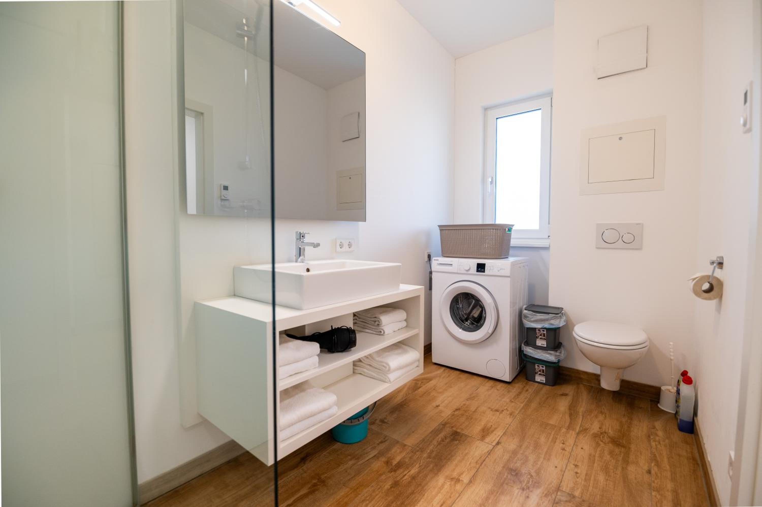 Velmi prostorný pokoj se stavebně oddělenou ložnicí, plně vybavená kuchyně včetně myčky, mikrovlnky, lednice, kávovaru, trouby apod., moderní koupelna, čistota, pěkné prostředí, velmi dobře organizovaný online check-in, krásný a prostorný balkón s posezením, vše působilo nově a čistě
