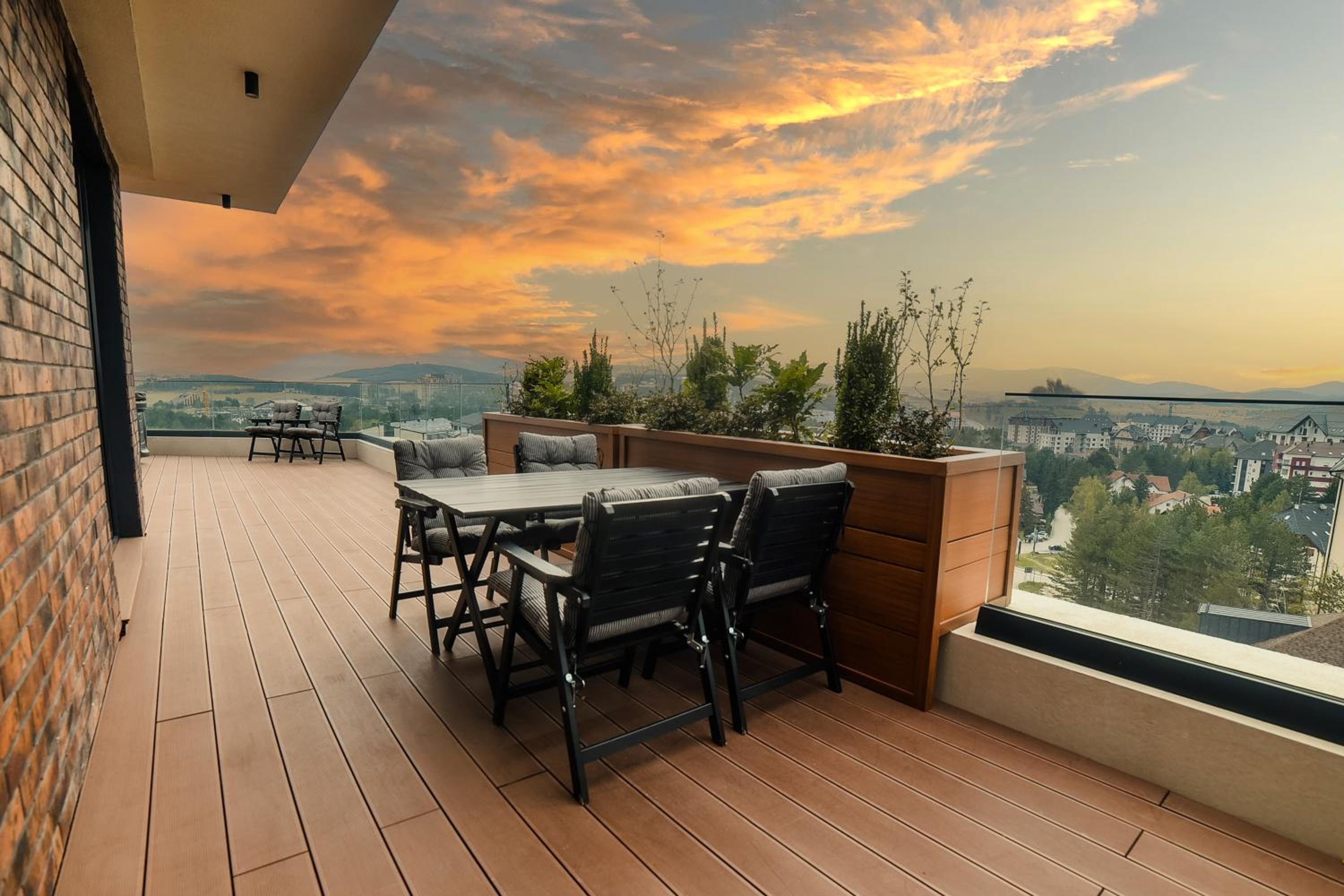 Each unit features a terrace, mountain views, fully equipped kitchen, and balcony with garden views.