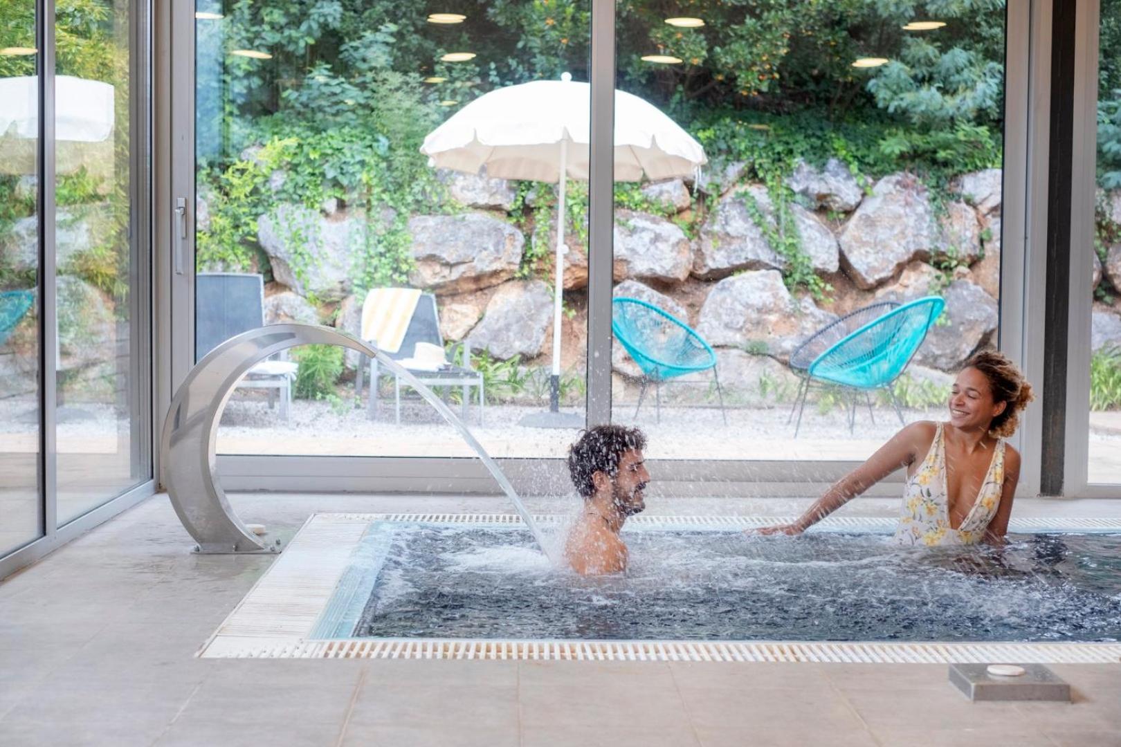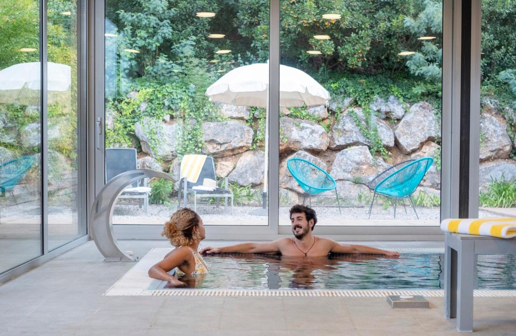 Indulge in the spa's hydromassage bath, Finnish sauna, and more for an additional cost. Relax by the outdoor pool or on the terrace with stunning views.