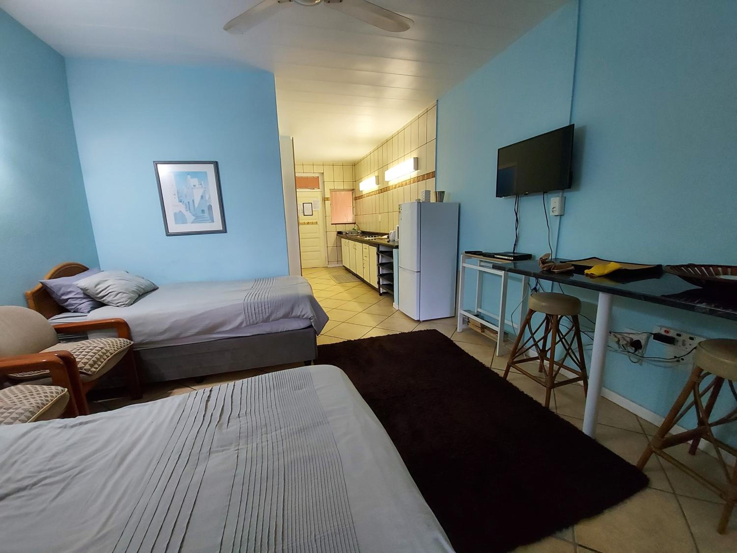 Main bed is uncomfortable, the bathroom needs a renovation, cold tap keeps coming off, it makes a squealing noise, the towel rack fell off the wall one night. Needs wifi or dstv as open view offers very little in the way of viewing.