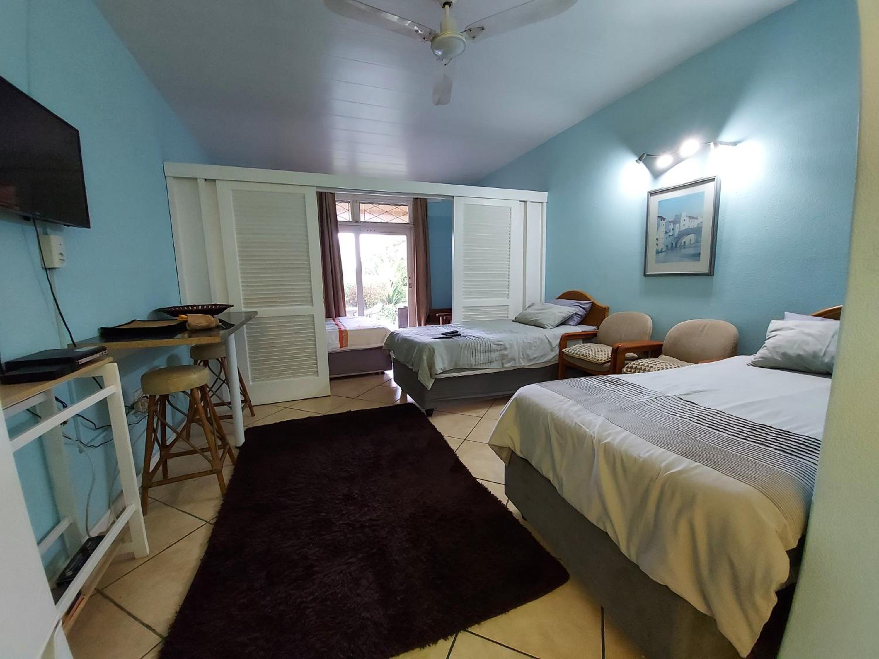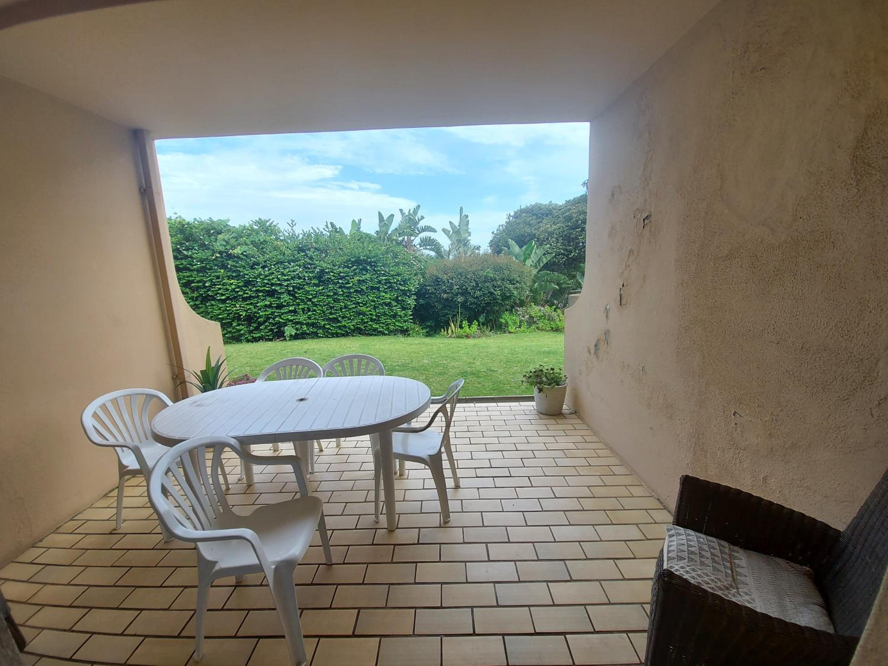 The location is great, beach in a short walk from the flat, the pool is lovely, our toddler loved the kiddies section of the pool. There is a lovely braai area in the garden with a nice view of the ocean. The double bed is very comfortable! A nice layout of the apartment itself. Outside furniture is comfortable but could use some cushions. Clothing rack available which helps alot!