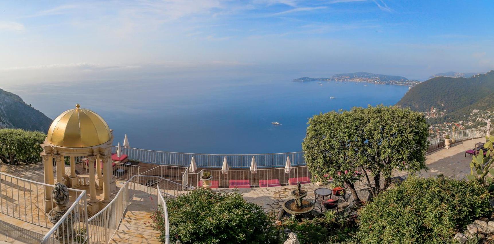 Located in the heart of Eze, this luxury hotel offers breathtaking views of Saint-Jean-Cap-Ferrat. Guests can enjoy five-star facilities including private gardens, an outdoor heated pool, and a wellness centre. The air-conditioned accommodation features elegant decor and spa baths for ultimate relaxation.
