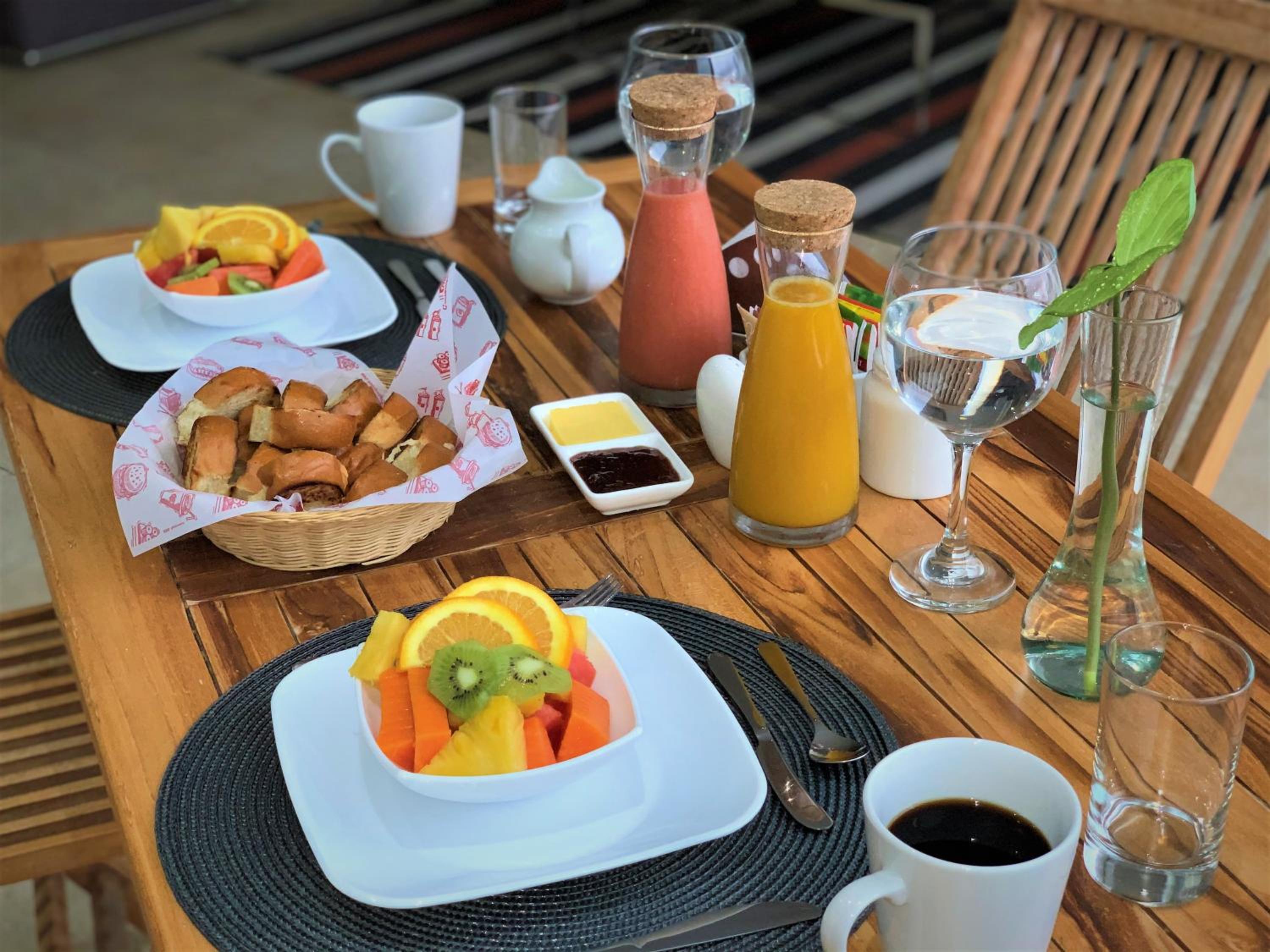 Breakfast was really good, fresh fruit, eggs, juice.
