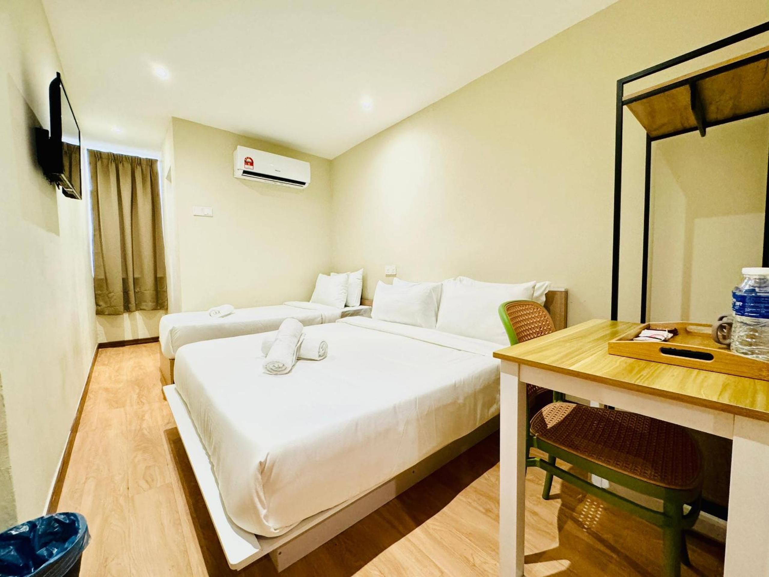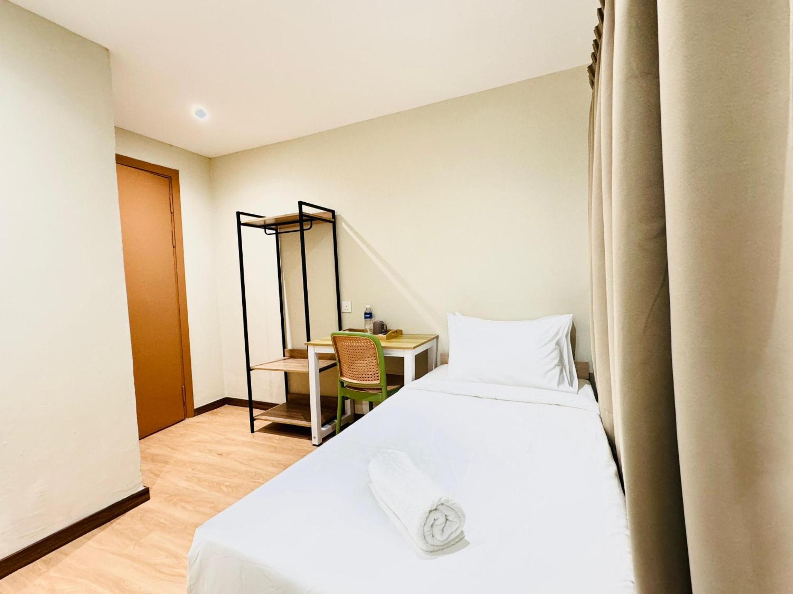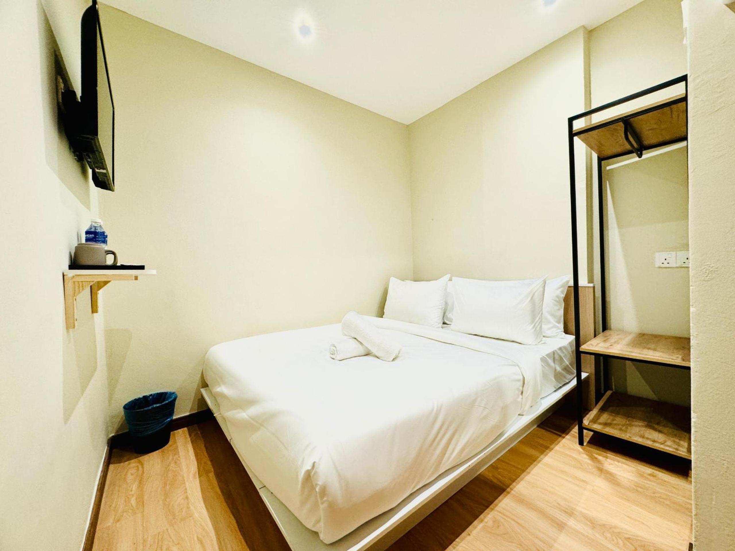 Name when booking does not match the actual name on Google maps (Victory2 Hotel Jalan Imbi). Easily confused with another swing and pillows close by. Rooms are on several levels above a small restaurant. Understandable to have a small room for a low price but expected clean sheets/towel.