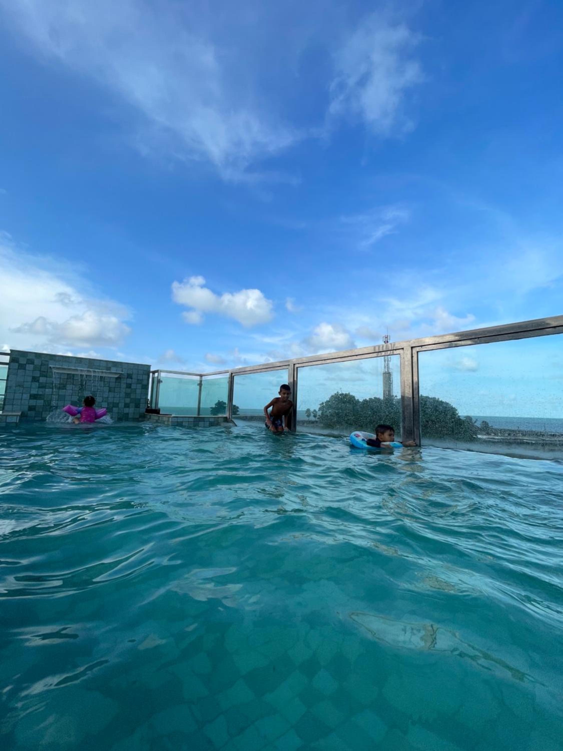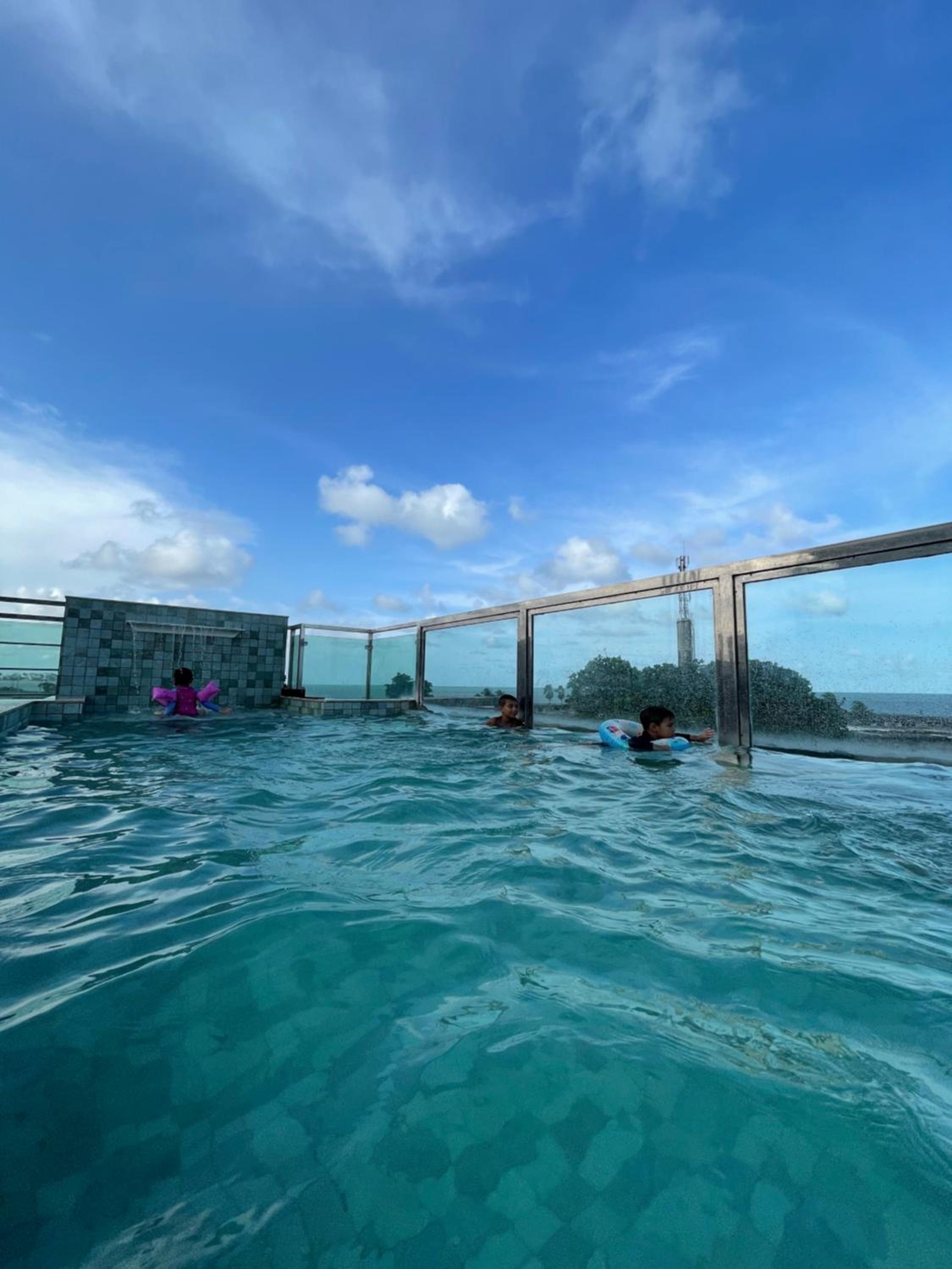 Indulge in the comfort of air-conditioned rooms, flat-screen TVs, and private balconies with stunning sea views.