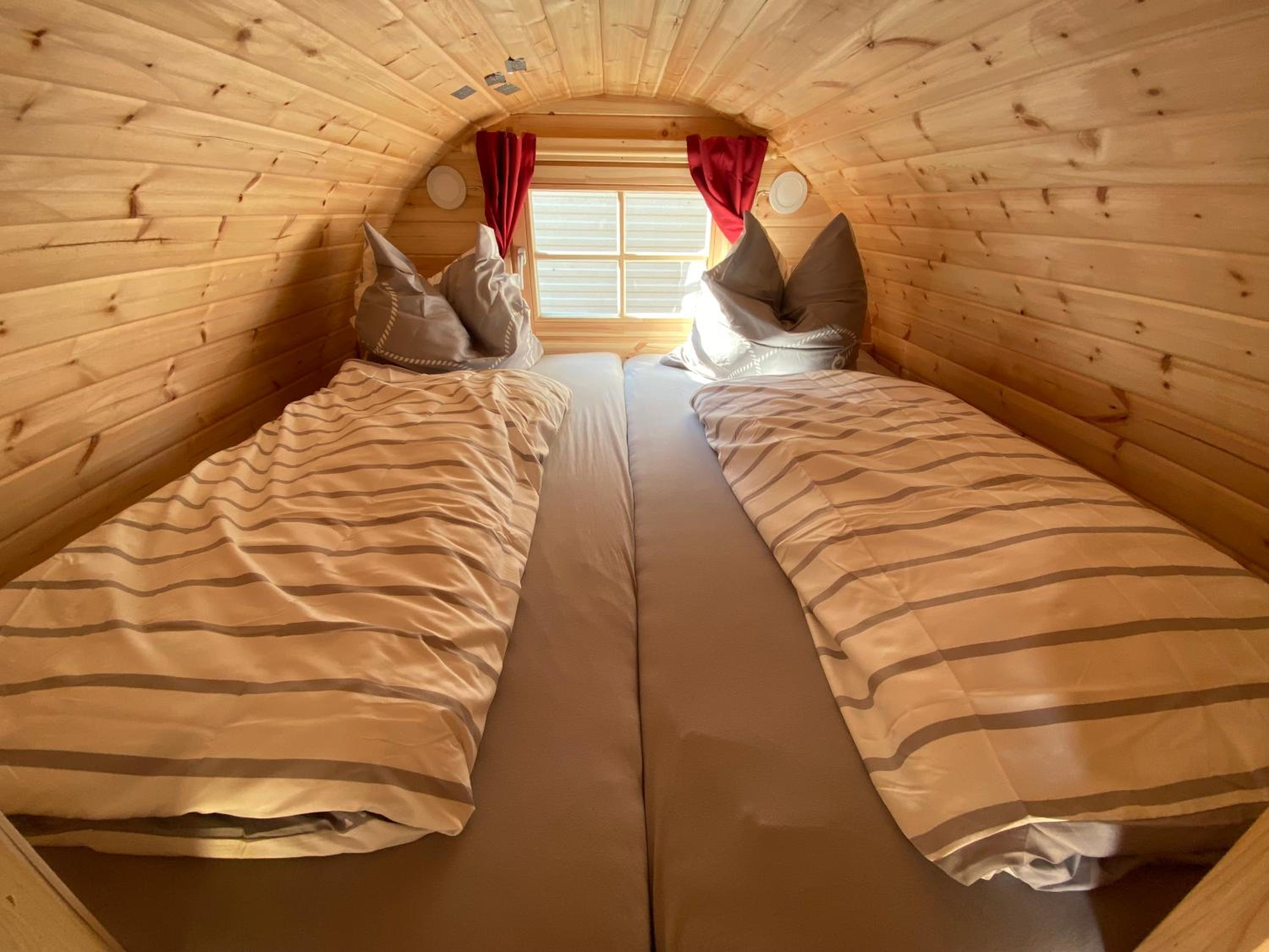 Seehaus Mamming offers a one-of-a-kind stay in Schlaffässer (sleeping barrels) nestled in a picturesque setting. Each room is equipped with modern amenities and cozy furnishings, ensuring a comfortable and memorable experience.