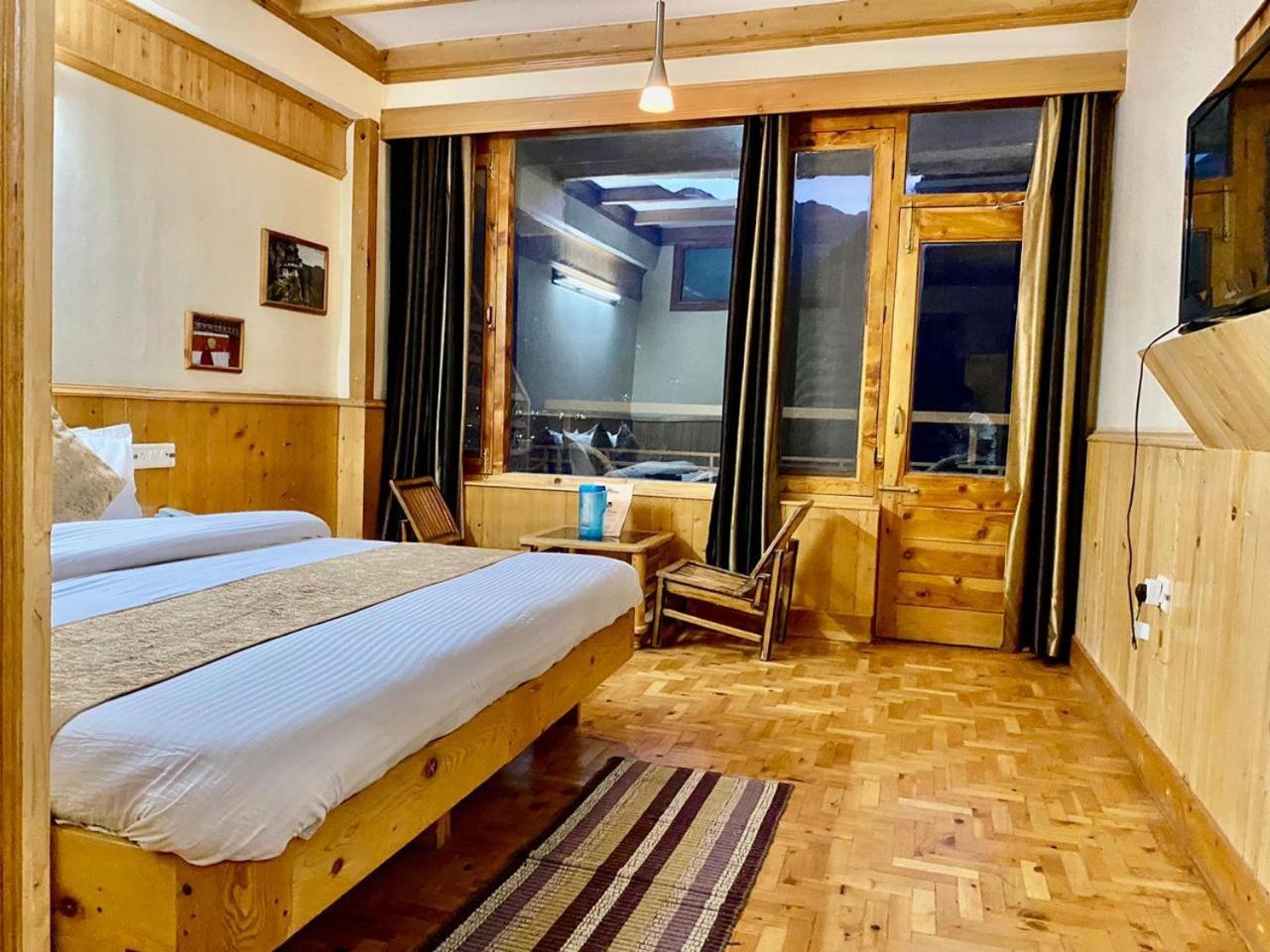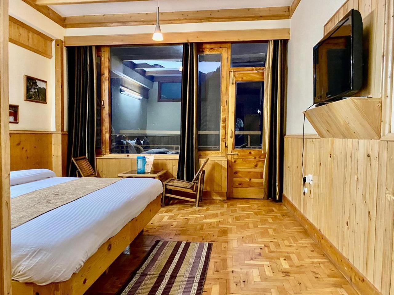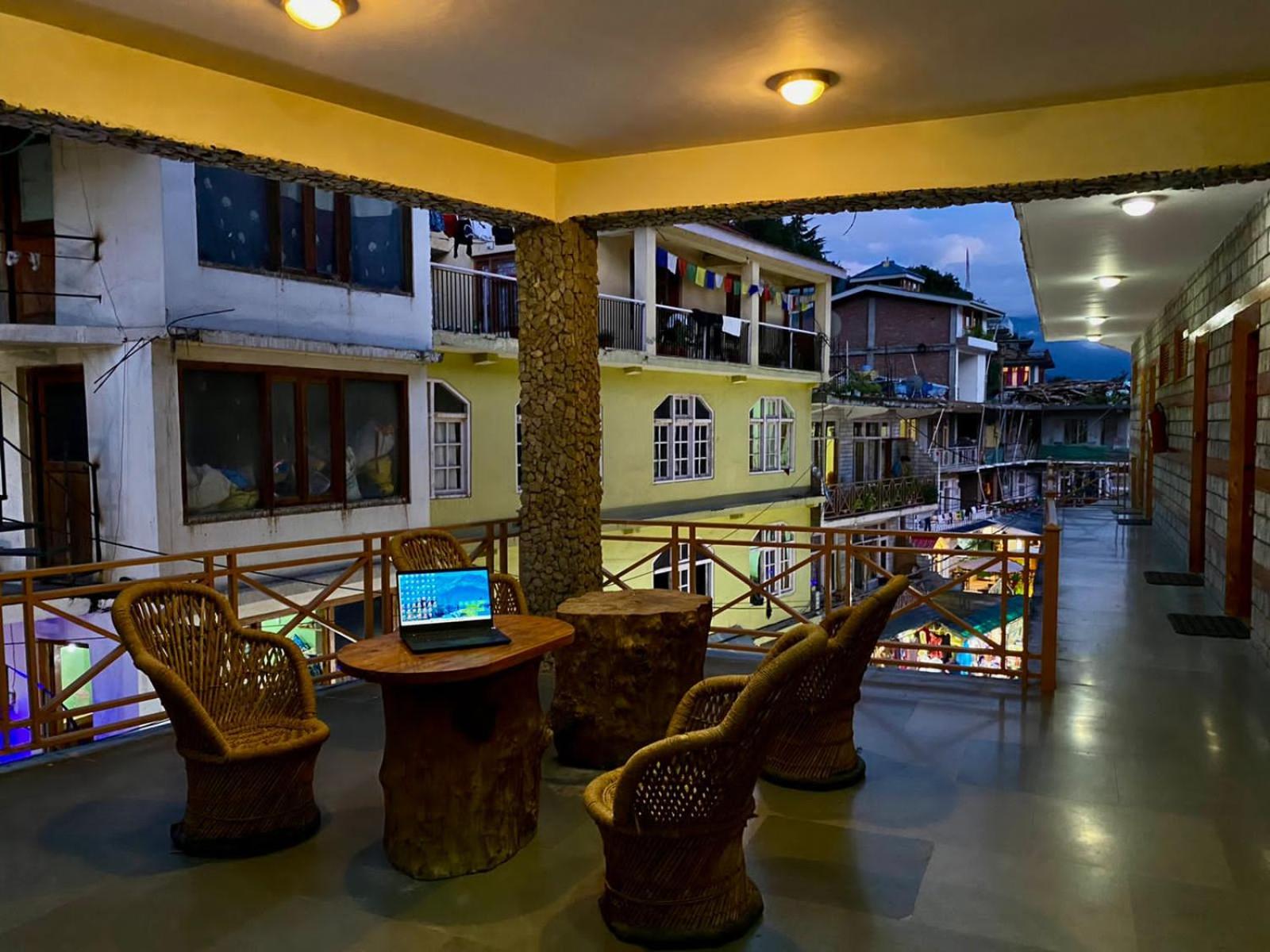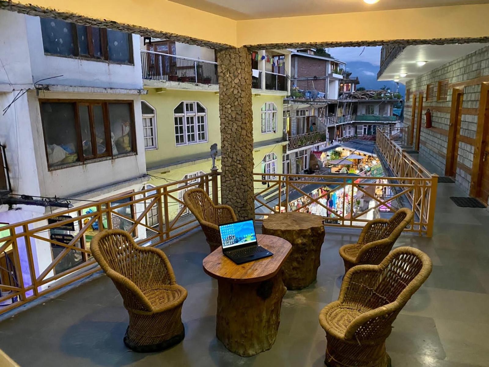 Experience a lavish stay at The Vashisht, Manali with rooms featuring balconies offering stunning city views. Relax in the cozy seating area and enjoy modern amenities like a flat-screen TV, kitchen, and private bathroom with complimentary slippers.