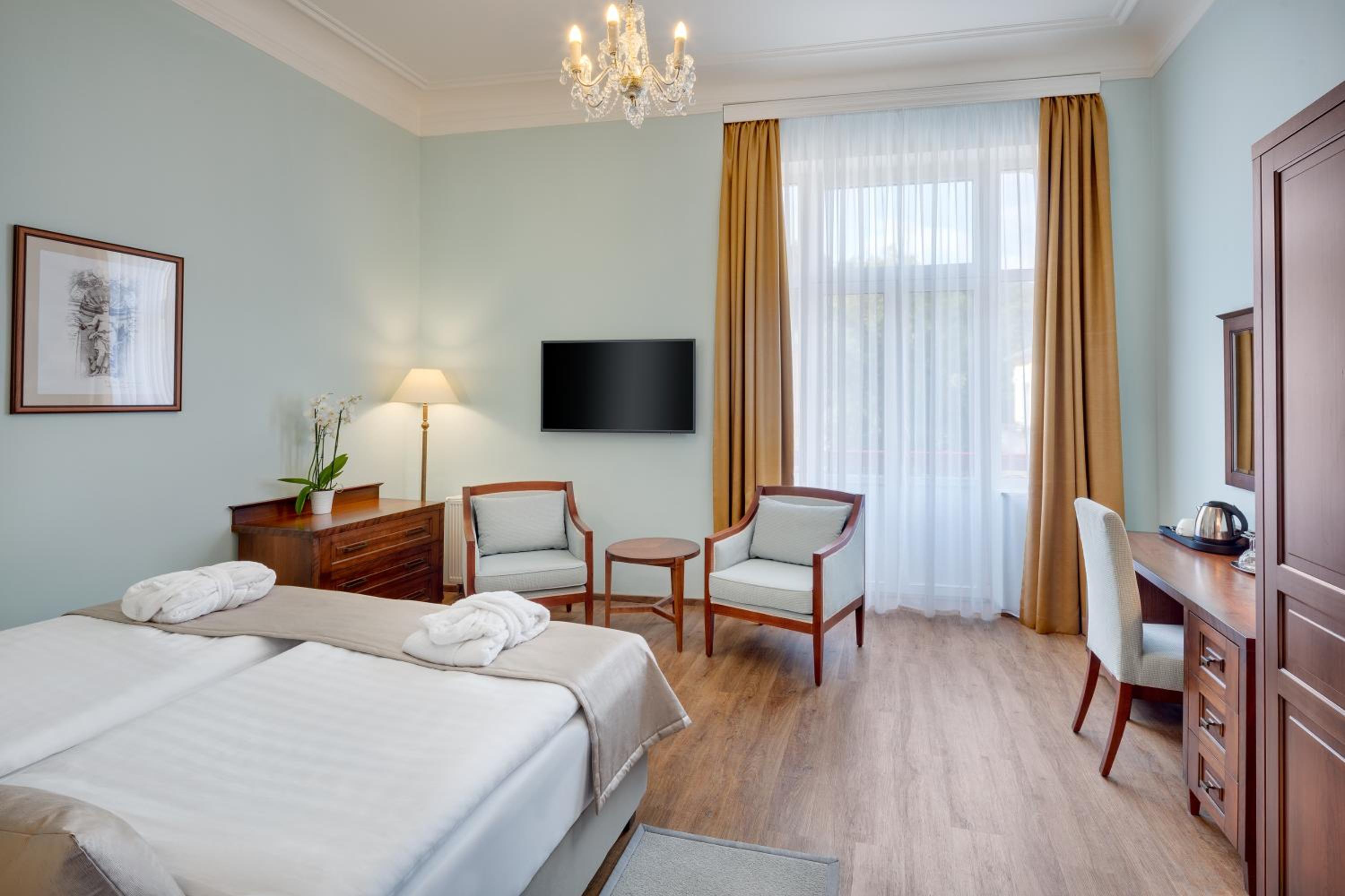 Each room at Ensana Hvězda - Imperiál - Neapol is thoughtfully designed with a seating area, flat-screen TV, safety deposit box, and a private bathroom stocked with complimentary toiletries. The cozy bedding and plush towels ensure a comfortable stay for every guest.