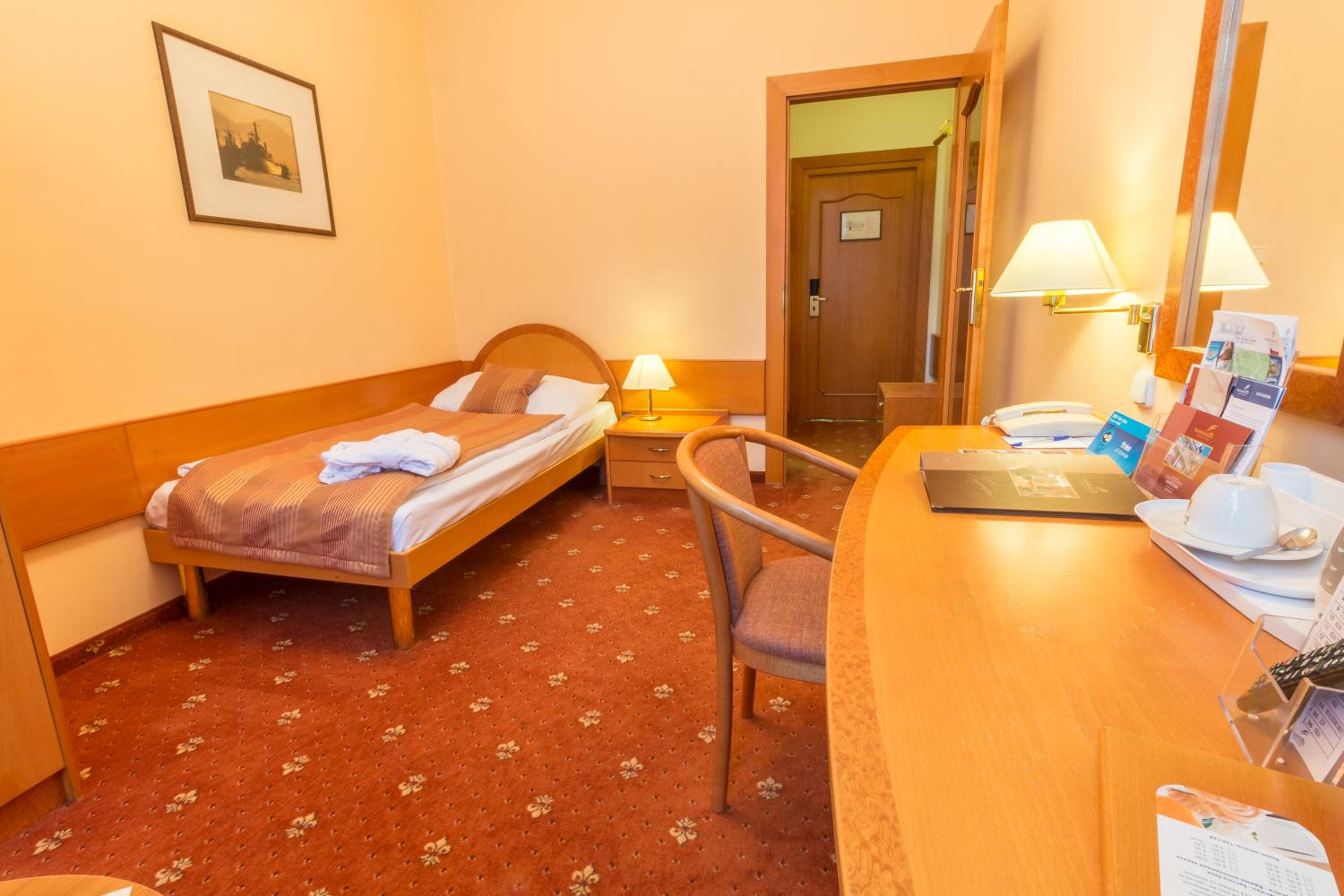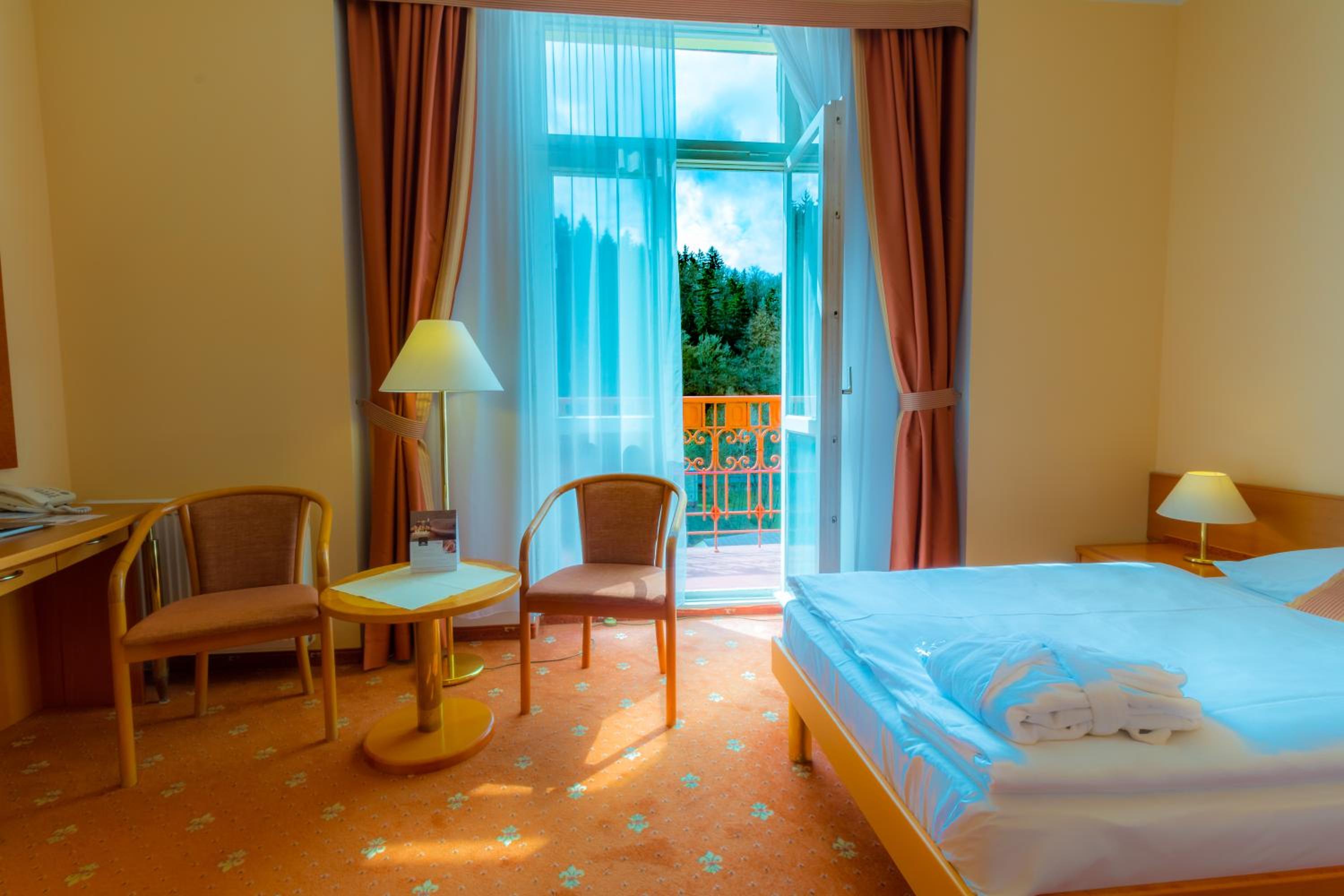 The hotel is located in a beautiful building with historic elements in the interior. The breakfast is good. The room is spacious and comfortable. The hotel is connected by corridors to several other Ensana hotels. You can visit the spas at other hotels without leaving the hotel, including the Roman Baths at the Nové Lázně Hotel. The reception staff is very friendly and professional.
