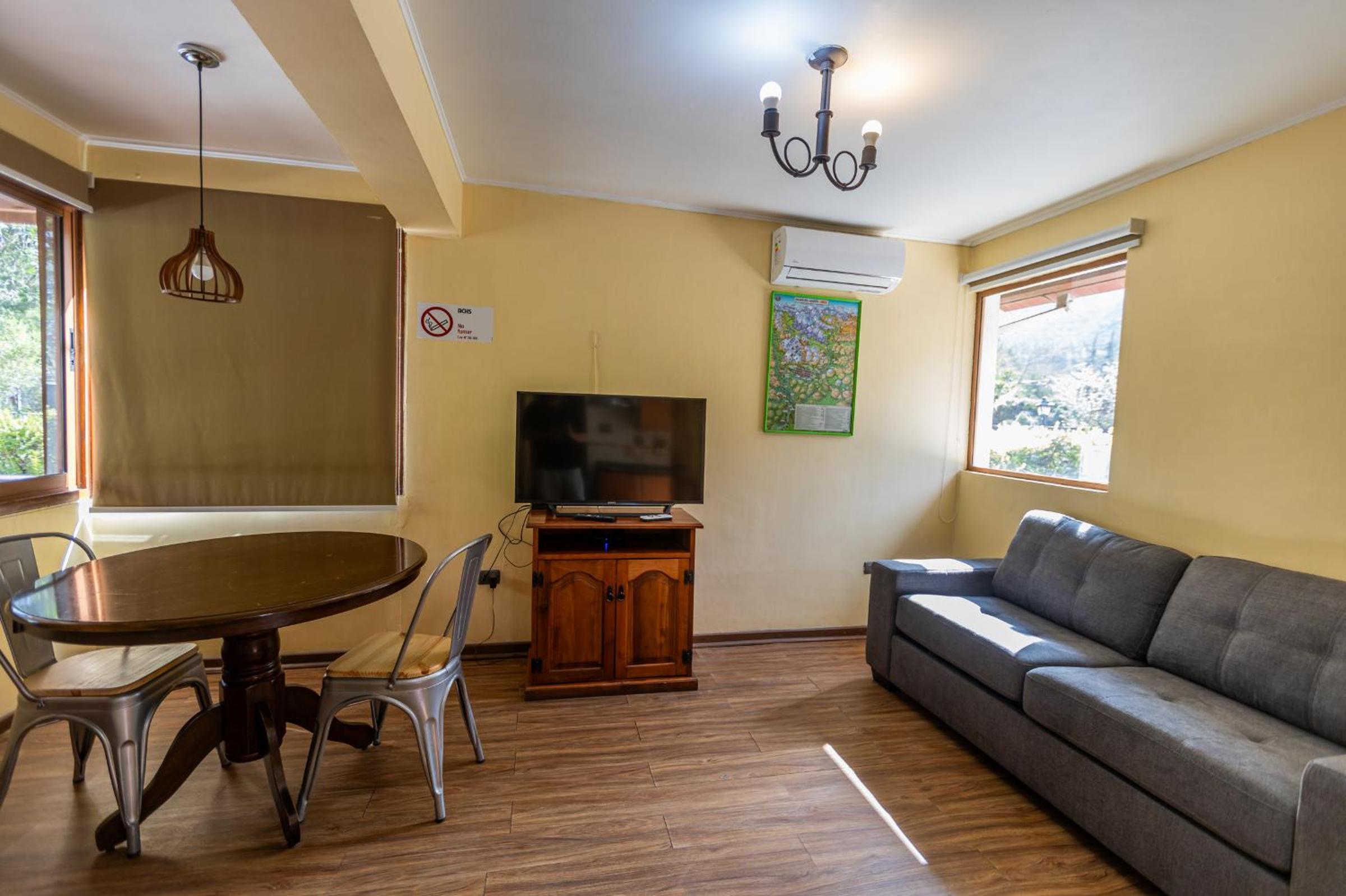 Cordialidade, educação dos colaboradores, estrutura da cabana (principalmente pela Jacuzzi, simplesmente espetacular). A Localização é muito boa, próximo ao centro do povoado de Maipo. O parque é bem arborizado, limpo, organizado e muito seguro. Com certeza votaremos a essa acomodação.