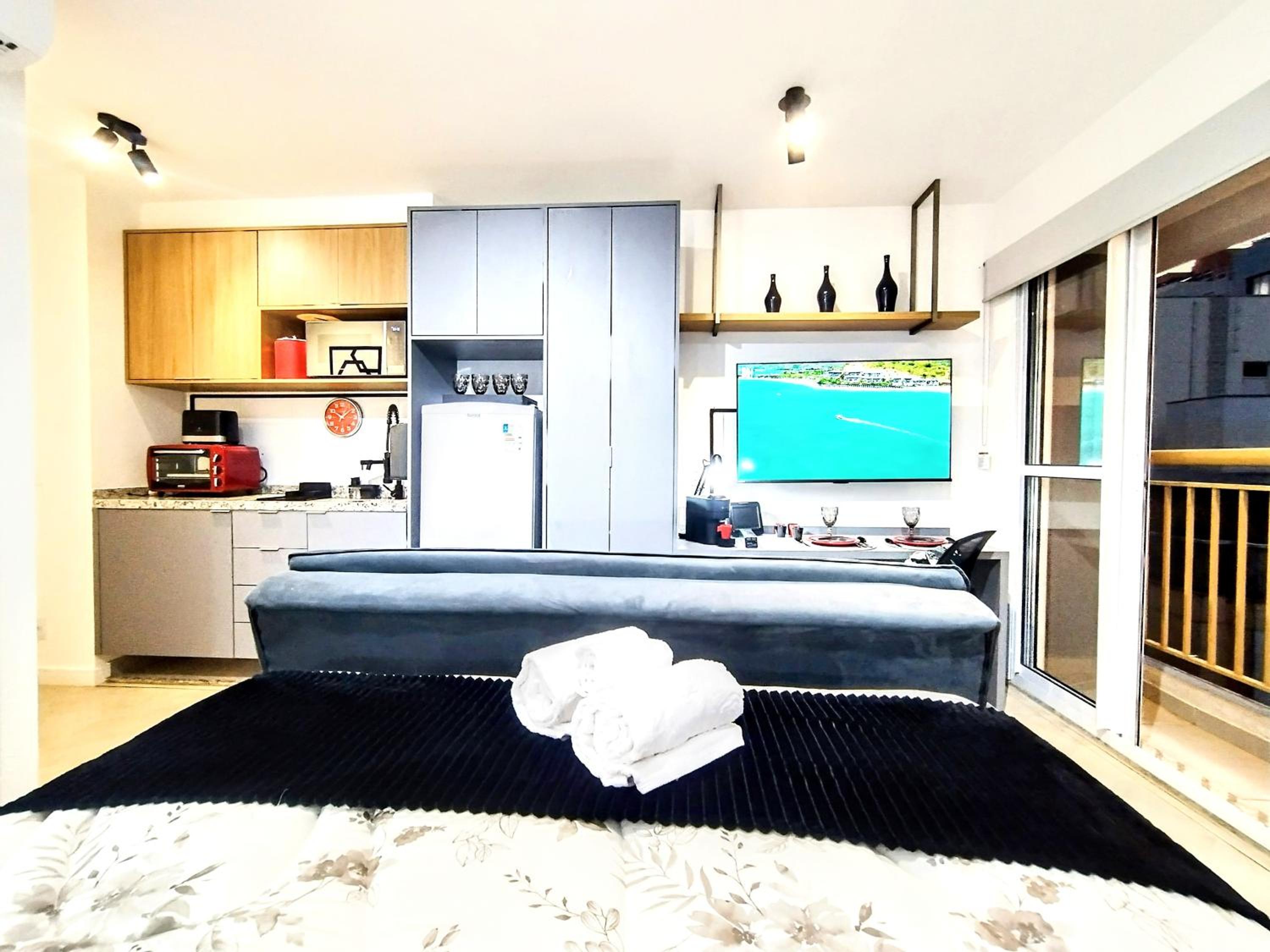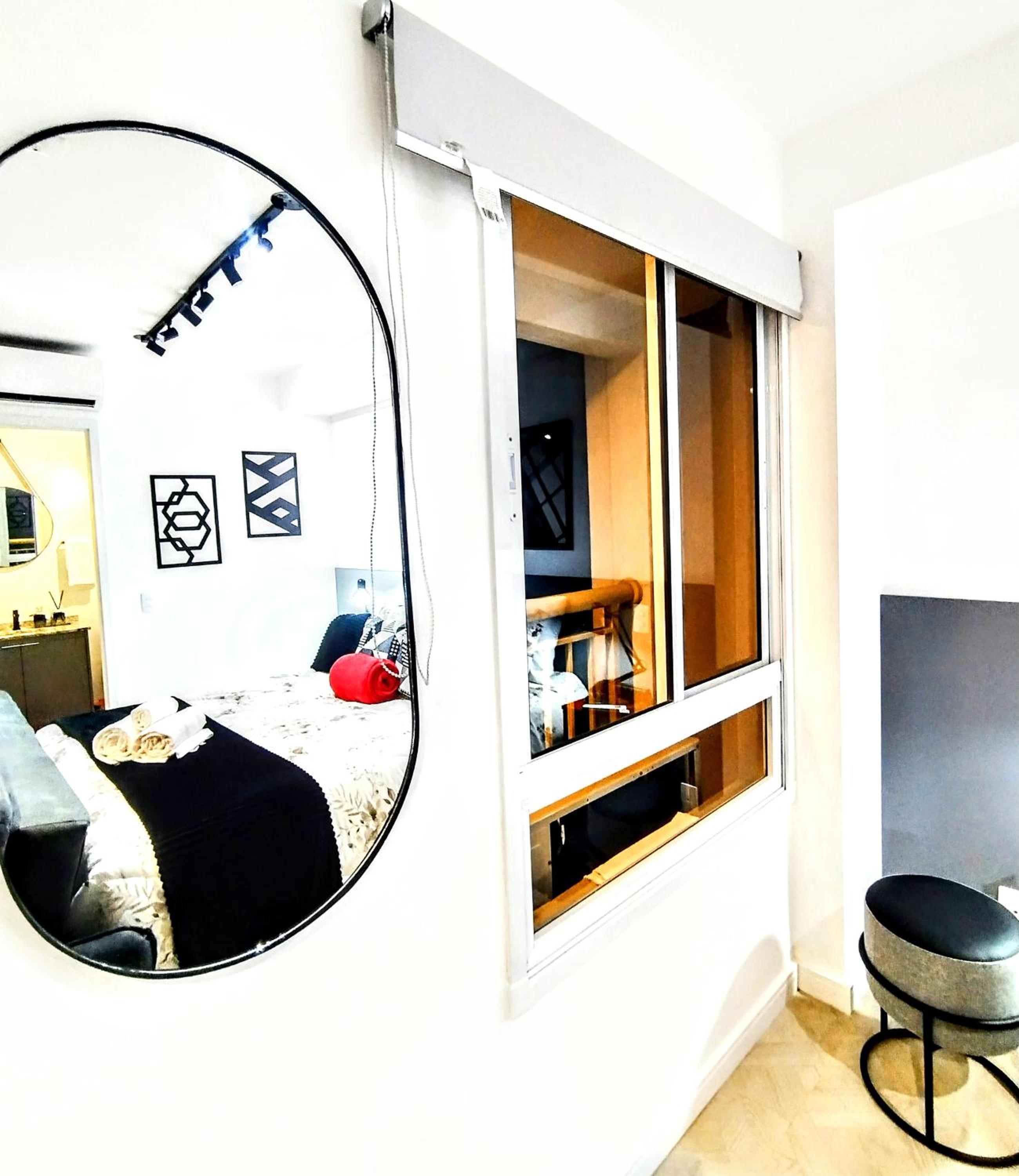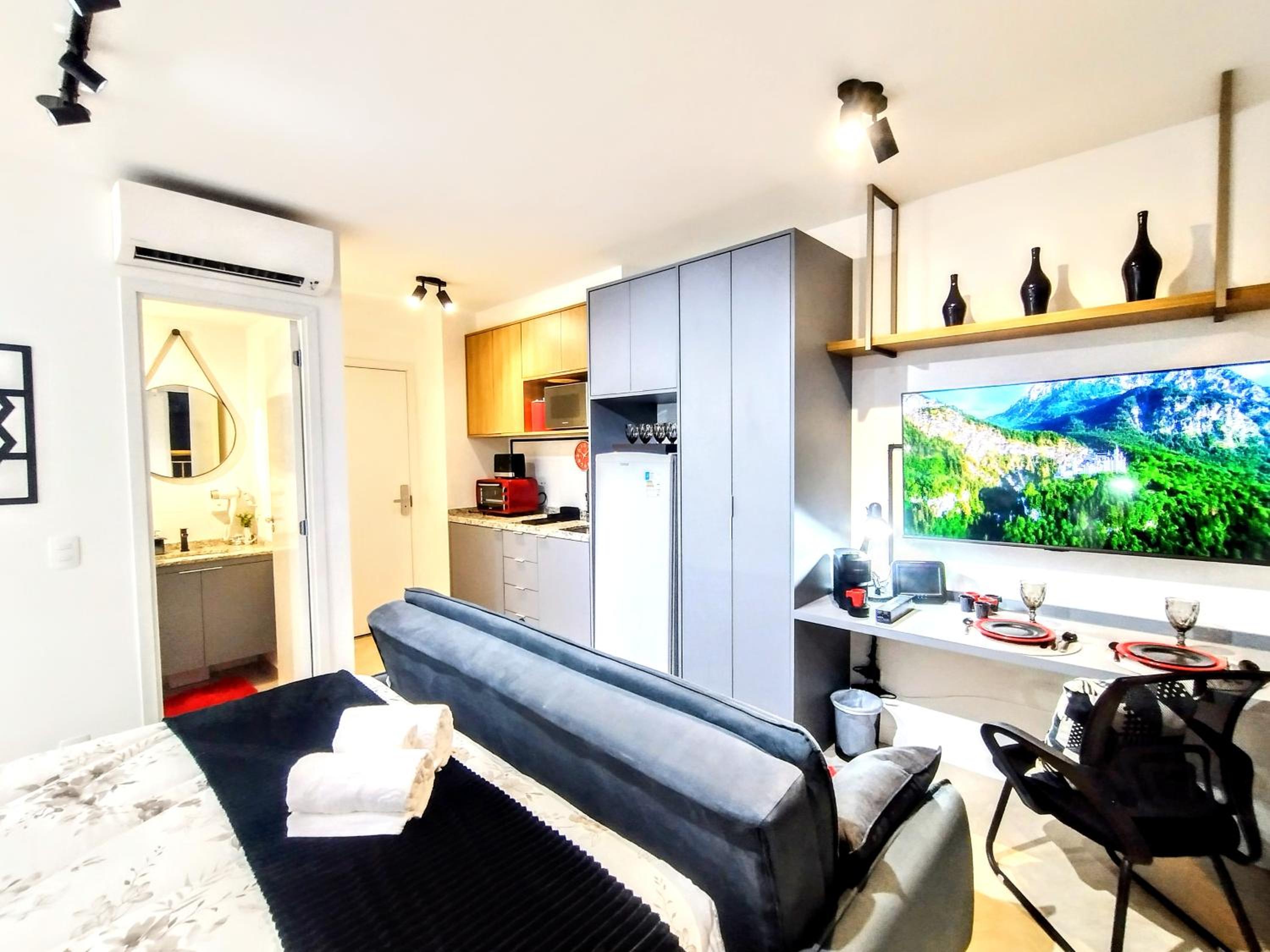 Unwind in the lush garden or take a leisurely stroll to nearby landmarks like Copan Building and Ciccillo Matarazzo Pavilion. With Sao Paulo/Congonhas Airport a short drive away, convenience meets comfort at Smart Urban Deluxe Studio Varanda - The MOB ONE PINHEIROS - Black Edition - By LuXXoR.