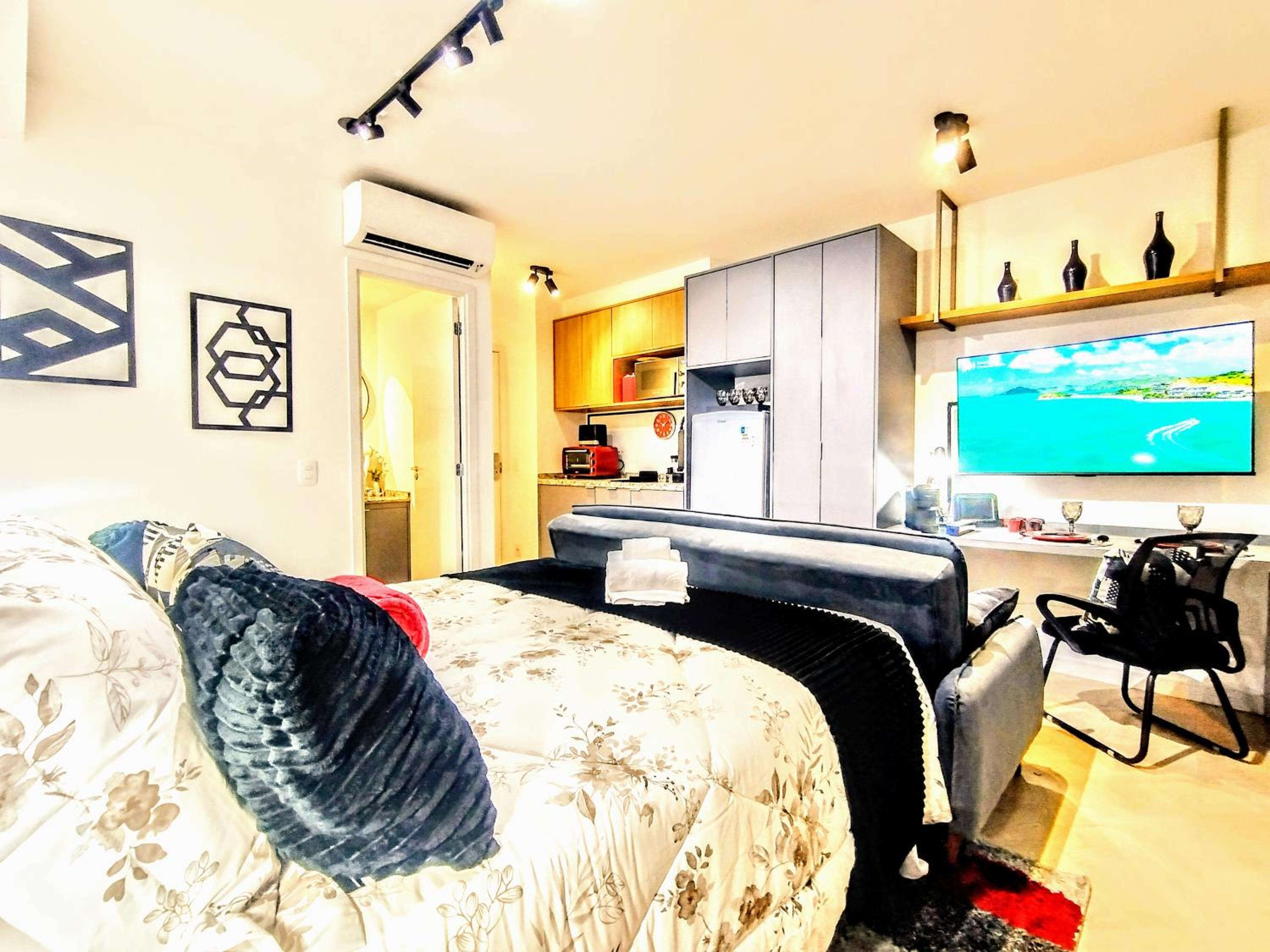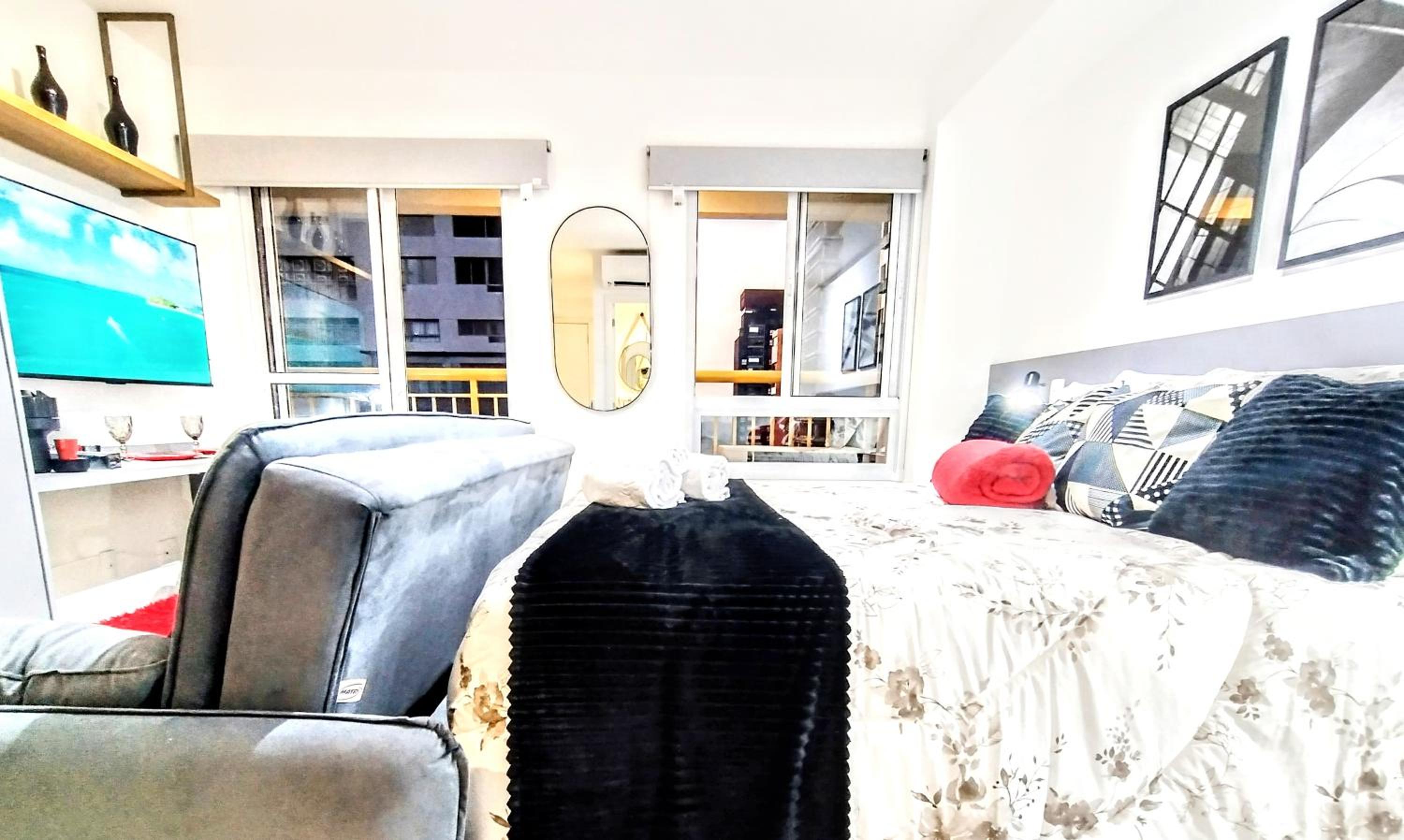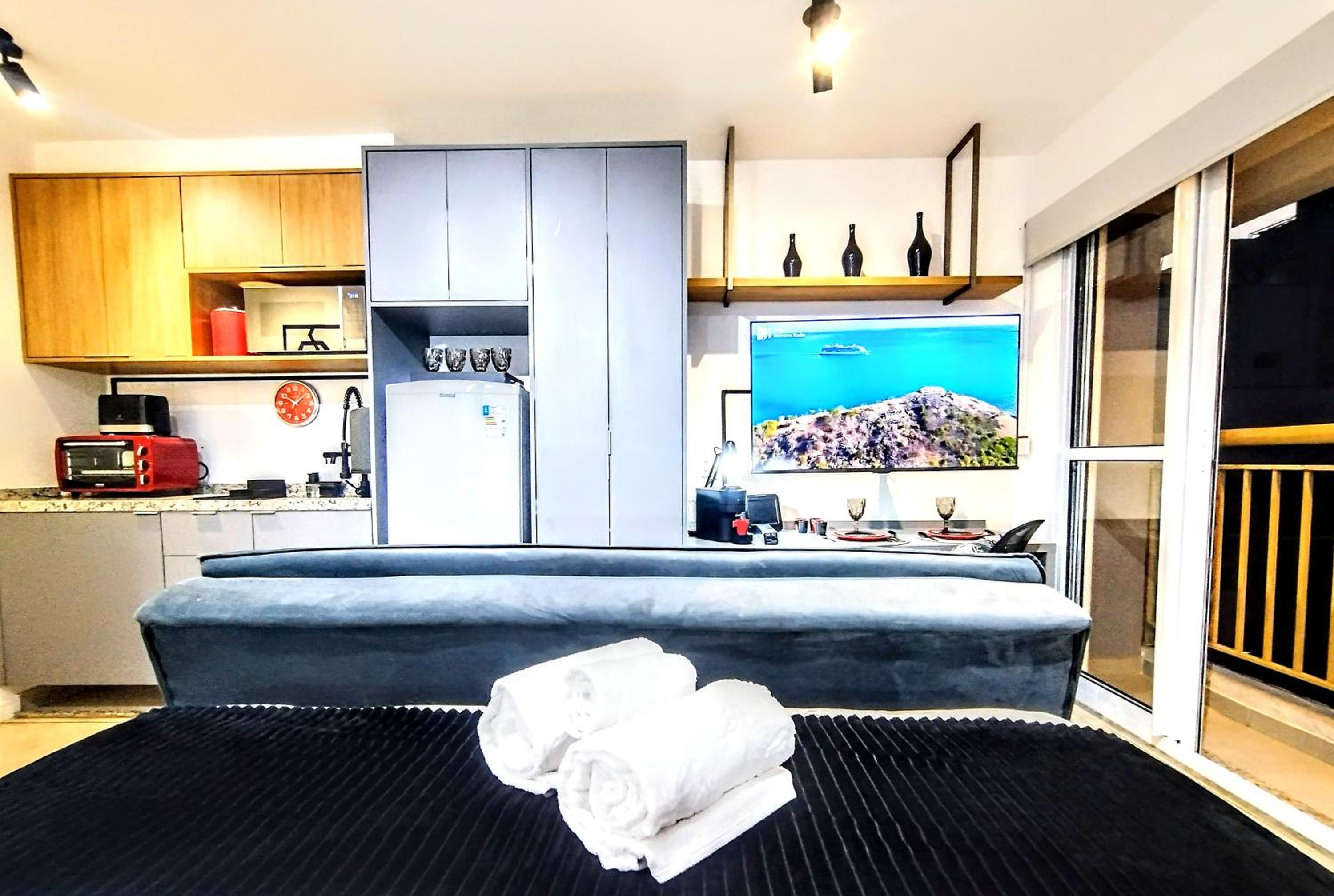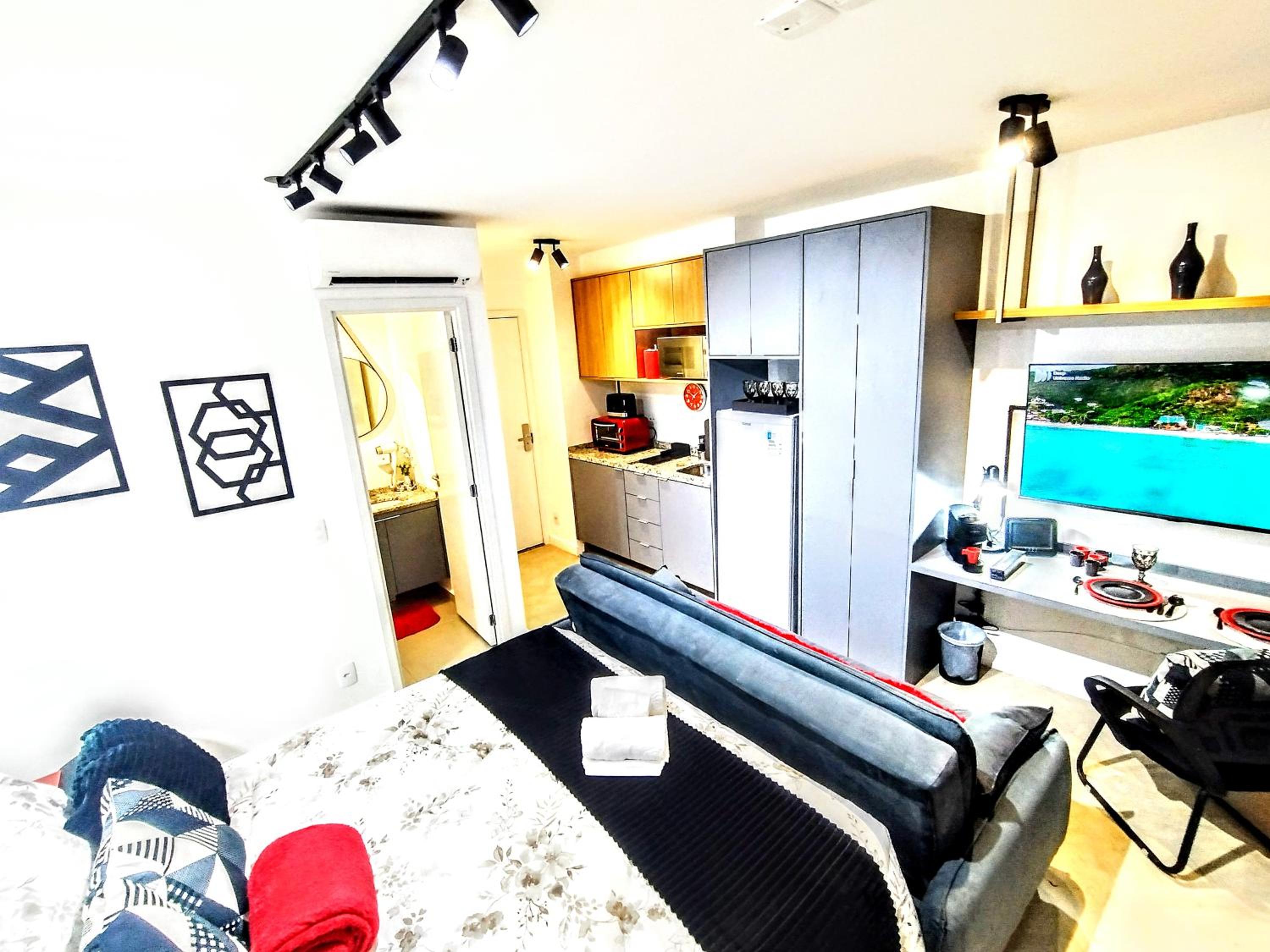 Unwind in the lush garden or take a leisurely stroll to nearby landmarks like Copan Building and Ciccillo Matarazzo Pavilion. With Sao Paulo/Congonhas Airport a short drive away, convenience meets comfort at Smart Urban Deluxe Studio Varanda - The MOB ONE PINHEIROS - Black Edition - By LuXXoR.