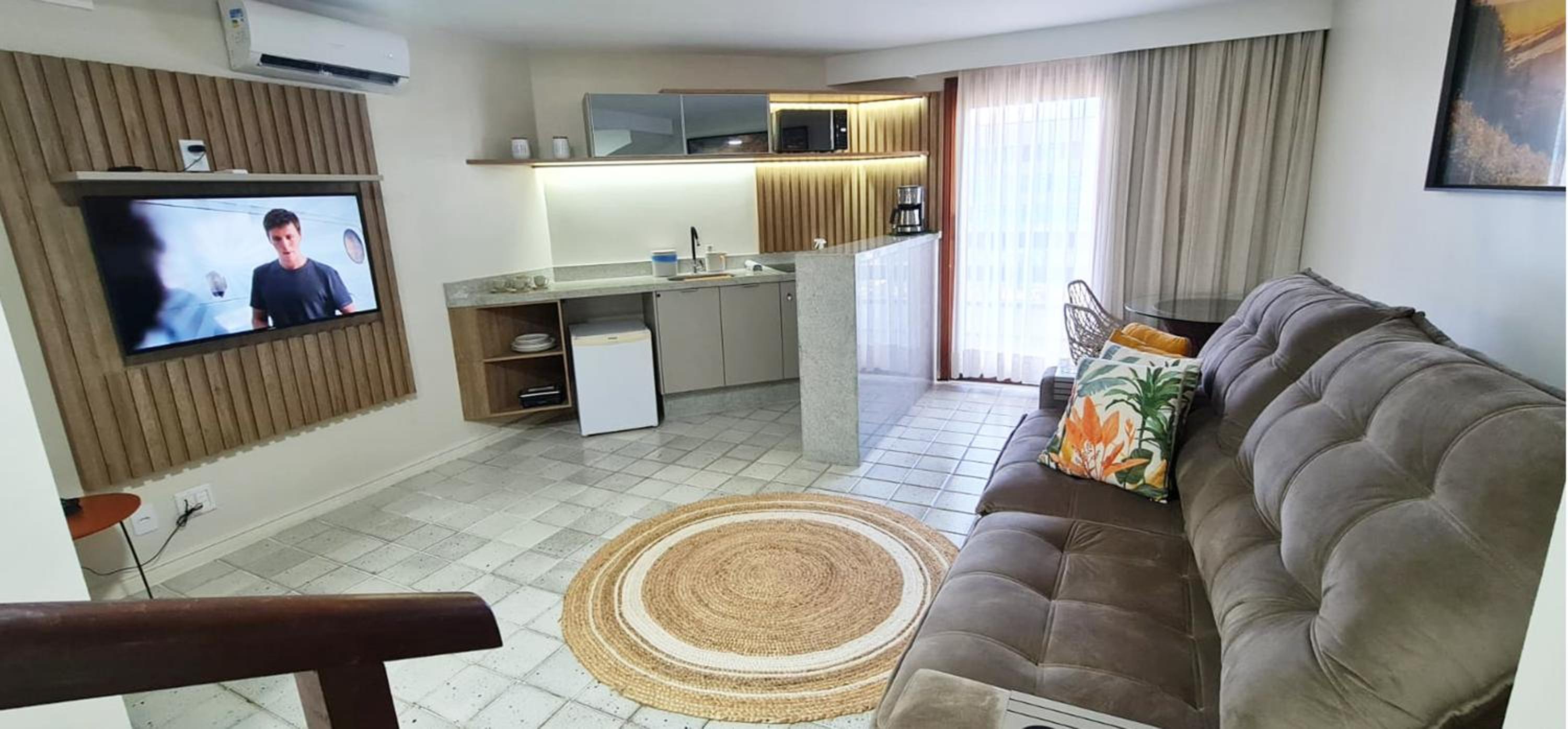 Luxurious Accommodation: Experience a stay at JATIÚCA SUITES RESORT - FLAT VISTA MAR, offering modern rooms with city views, flat-screen TVs, and comfortable amenities like air conditioning and private bathrooms.