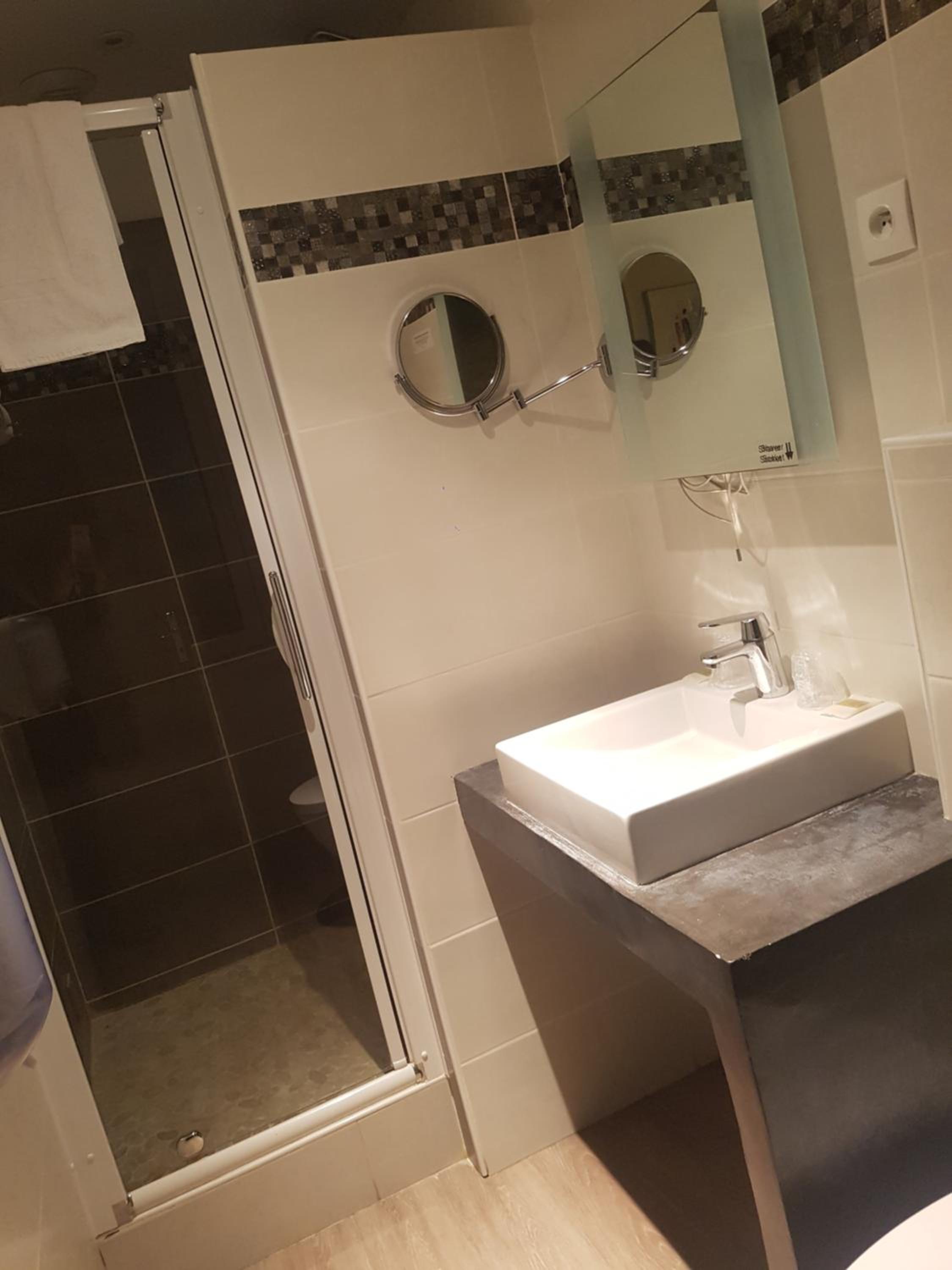 salle de bain vetuste, mitigeur bain-douche defectueux. bruits de la gare et des voyageurs jusqu'a 23h.