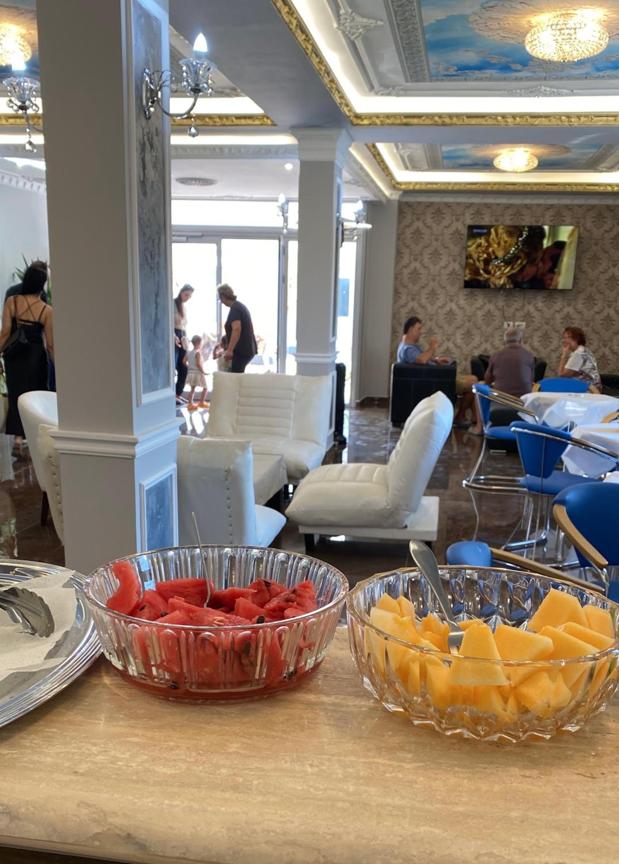 Ruim hotel. Kamer voor drie spijtig geen buitenzicht. Groot zwembad was pas een maand open. Met de warte hebben we er super van genoten. Heel vriendelijke mensen.