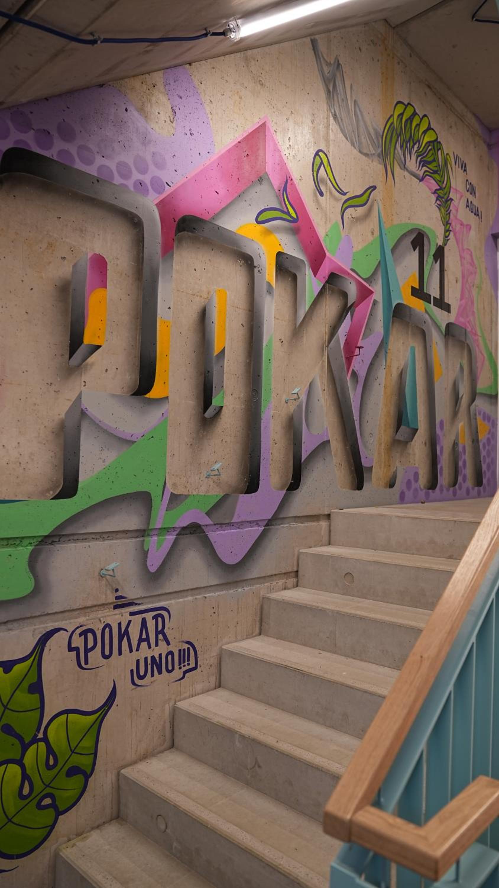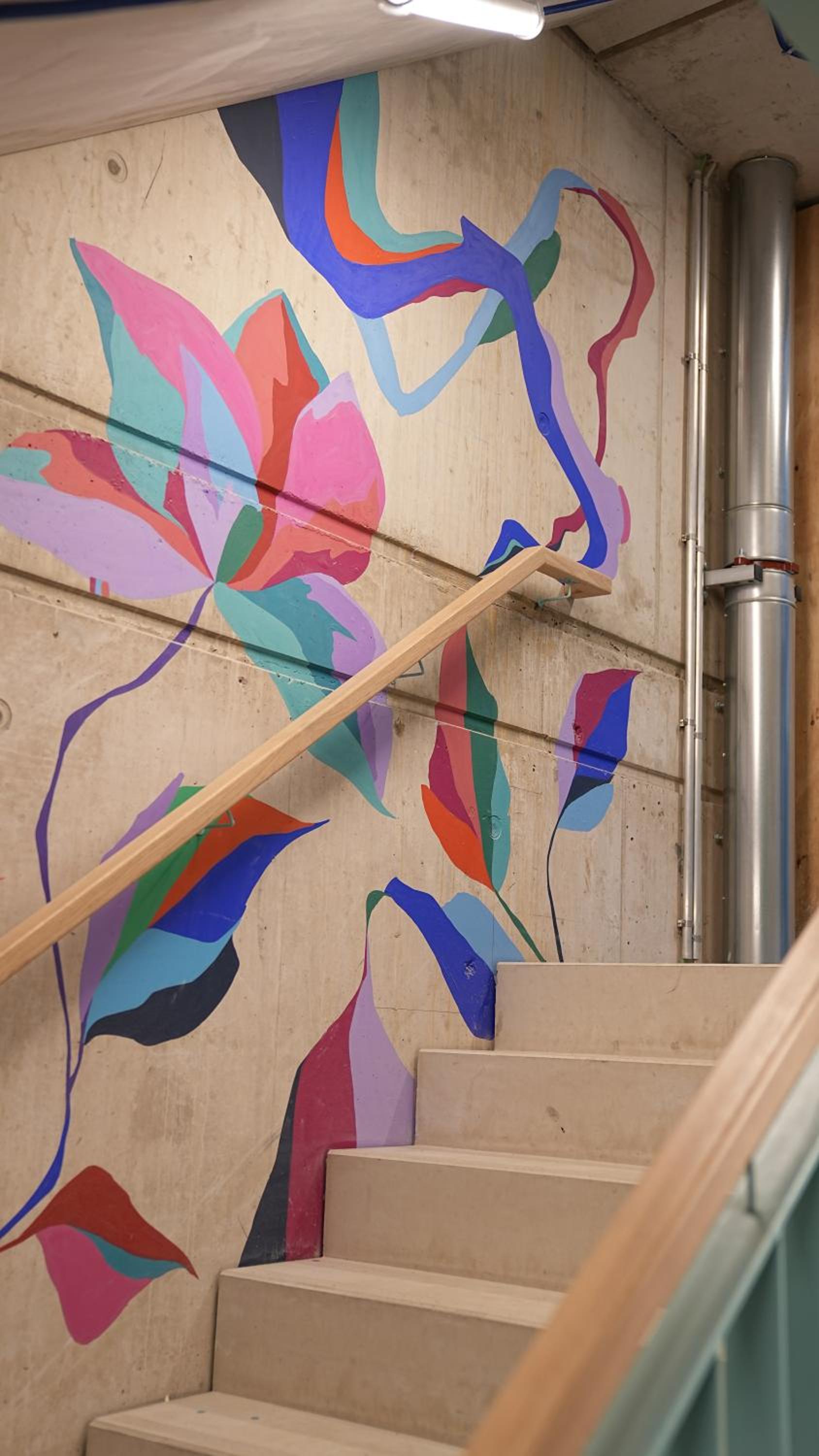 Sehr buntes, modernes Haus mit schlichten Zimmern und tollem Frühstück