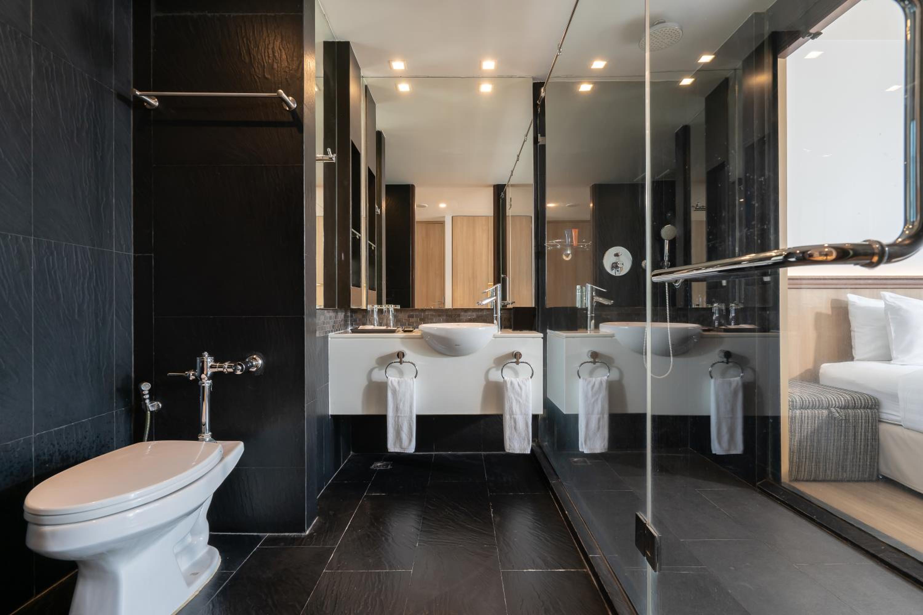 The air-conditioned rooms are stylishly decorated and equipped with all the modern amenities you need for a comfortable stay, including flat-screen TVs and personal safes.