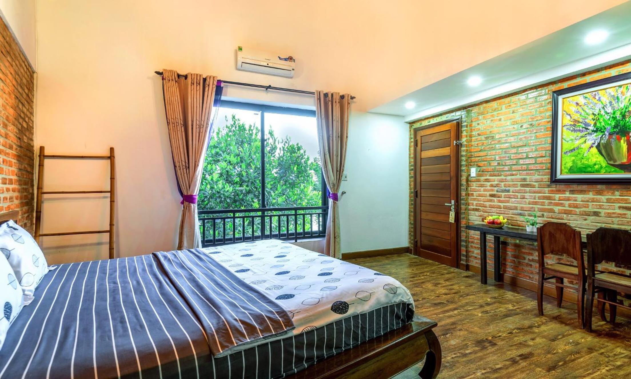Enjoy stunning city views from the comfort of your own balcony at Calm House Hostel Hoi An. Each room is equipped with air conditioning and a desk, ensuring a comfortable stay for all guests.