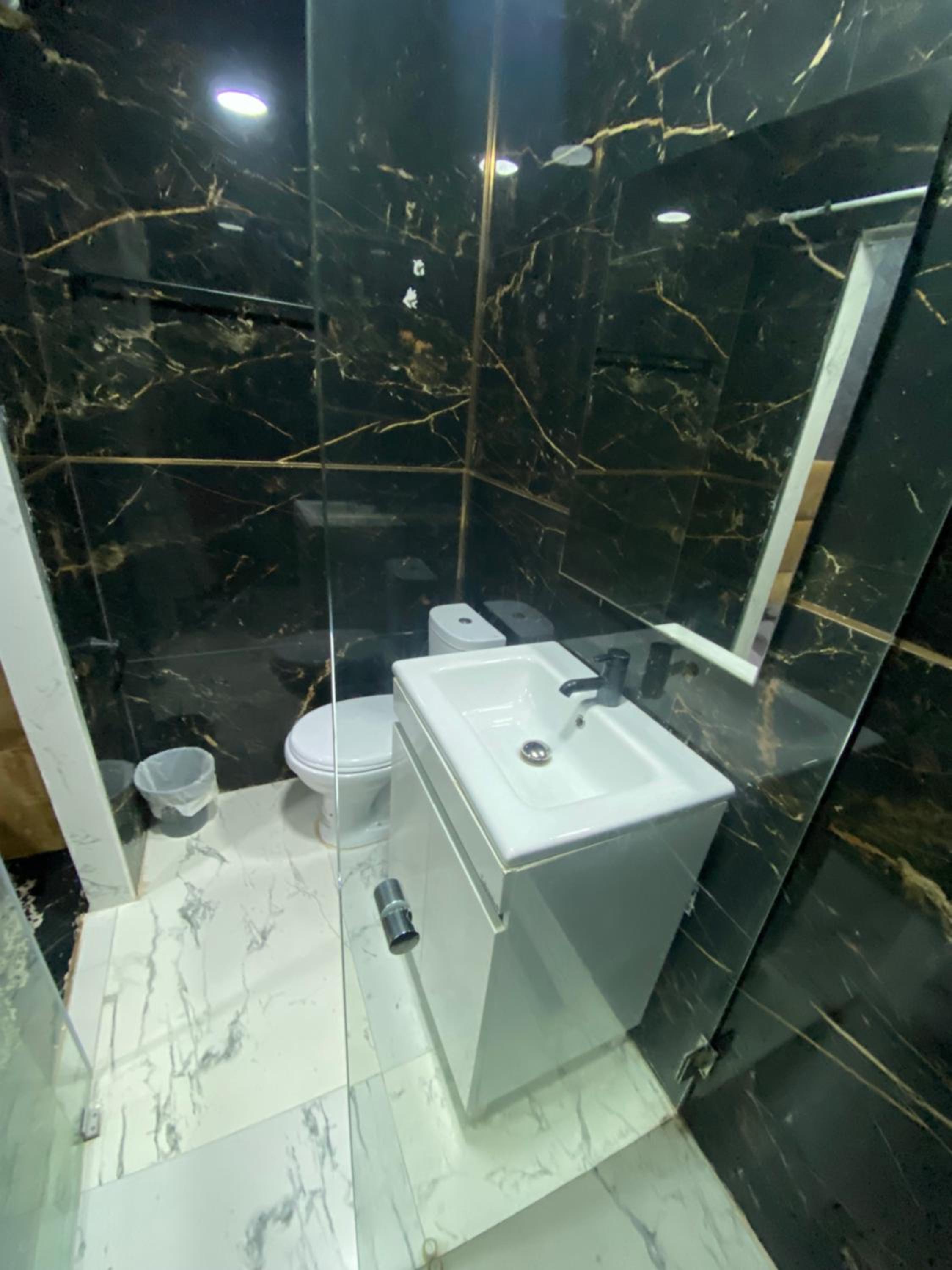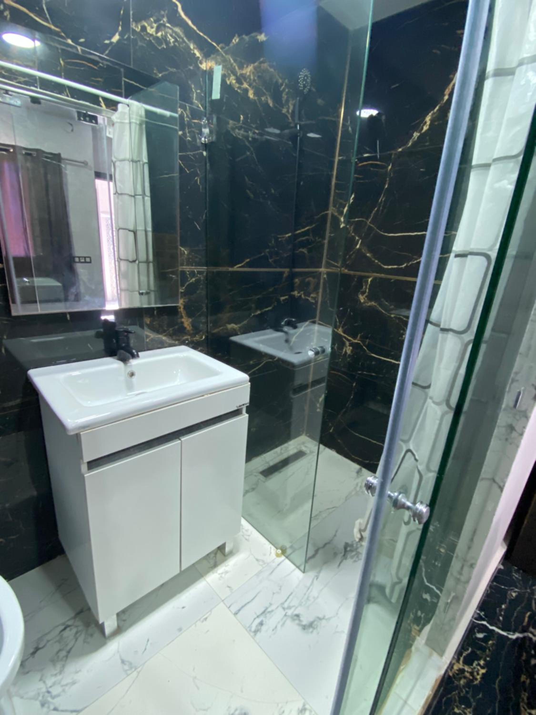 Deur van de badkamer/ wc is van glas. Vind niet privé.