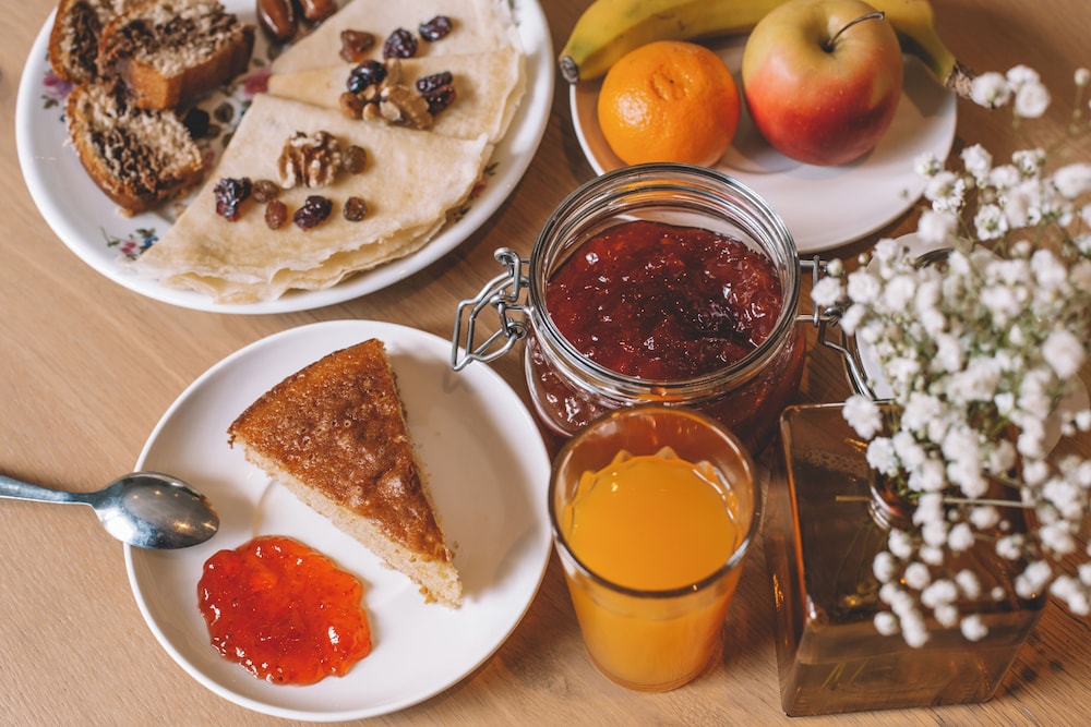 Petit déjeuner top (gâteaux fait maison, viennoiseries, fruits, jus de fruits frais, charcuterie, pains...)