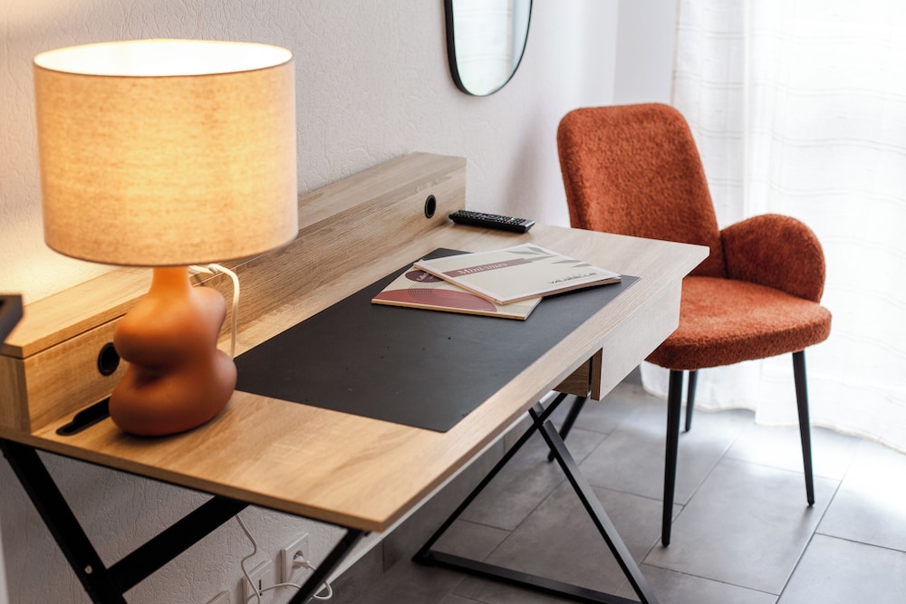 quelques petits détails seraient à corriger:pouvoir deguster un vrai apéro au bar de l hôtel ds les beaux canapés orange,rafraichir et amplifier l américano bu ds le resto,donner du goût aux gateaux "maison"du petit dejeuner,et ajouter une tablette ds salle de bains pour pouvoir poser sa trousse de toilette,sinon hotel sympathique et accueillant,beaux sourires a la reception
