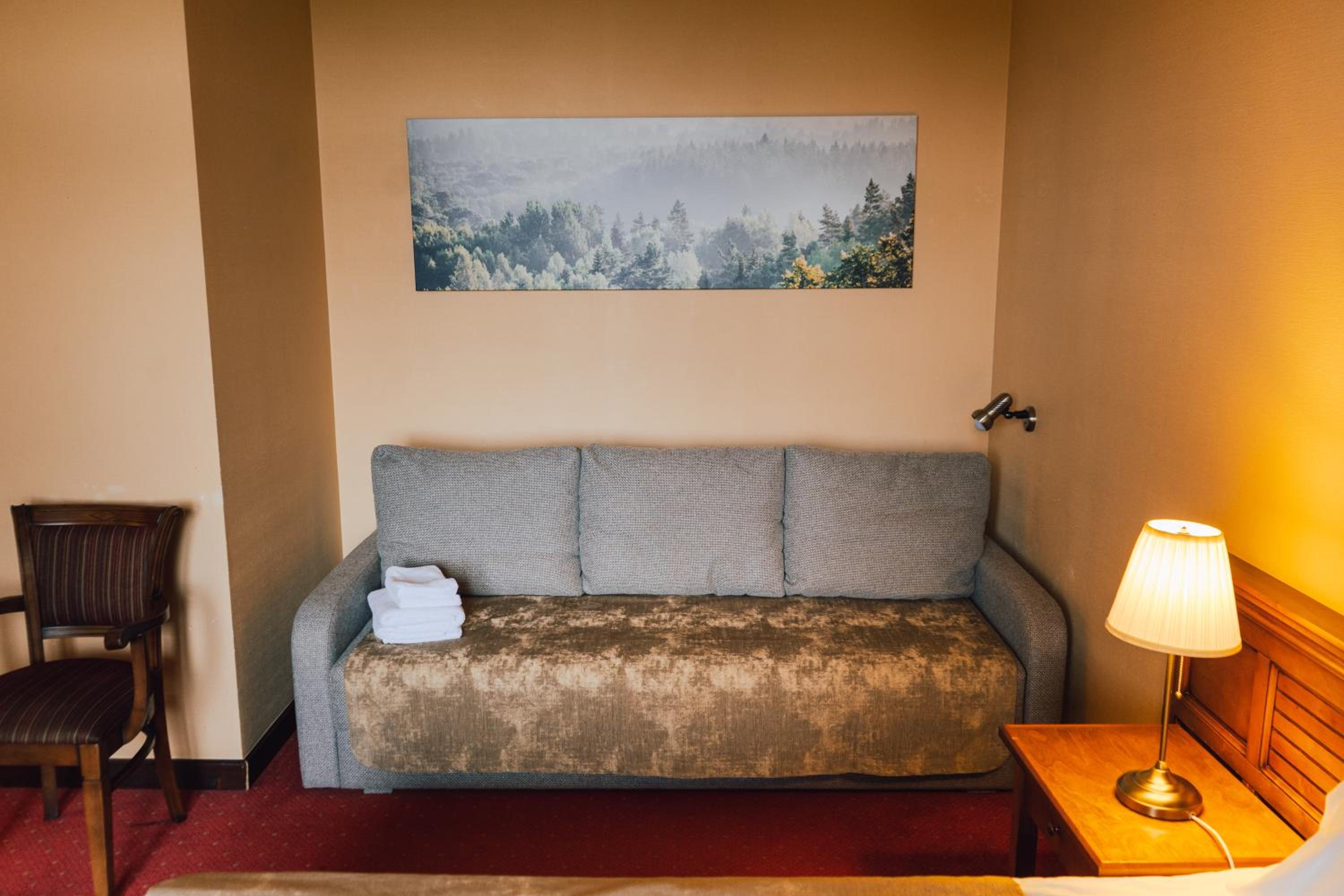 Vieta grazi, priziureta, vaizdas i Gaujos sleni, viesbutis nenuobodzios architekturos, tvarkingas, kambarys erdvus, kiek pagyvenes, bet tvarkingas ir priziuretas, viskas veikia ir didziausias pliusas, kad nera siuolaikiniu elektroniniu galvosukiu :) , daug vietos automobiliams