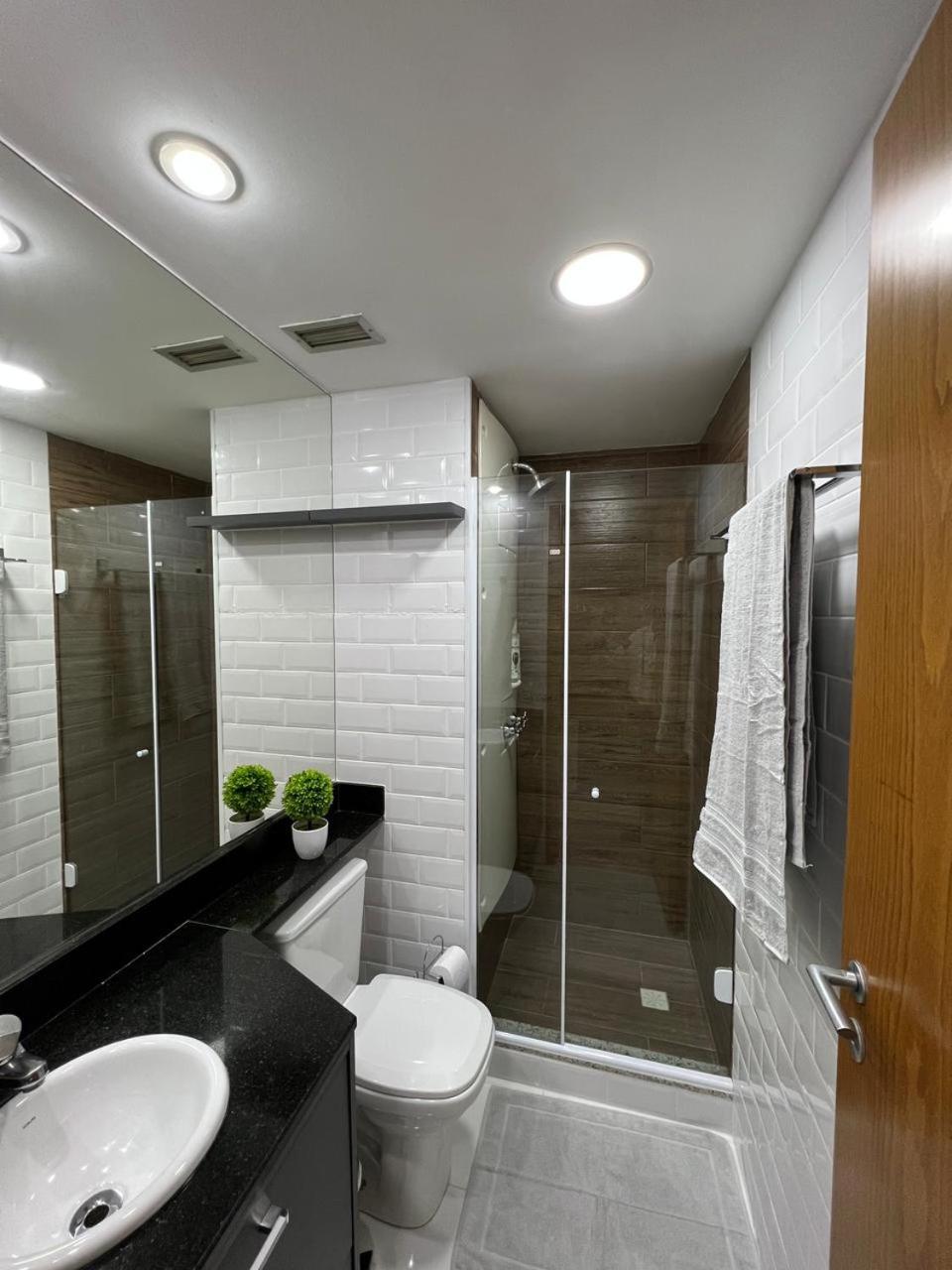 Banheiro, box muito pequeno.