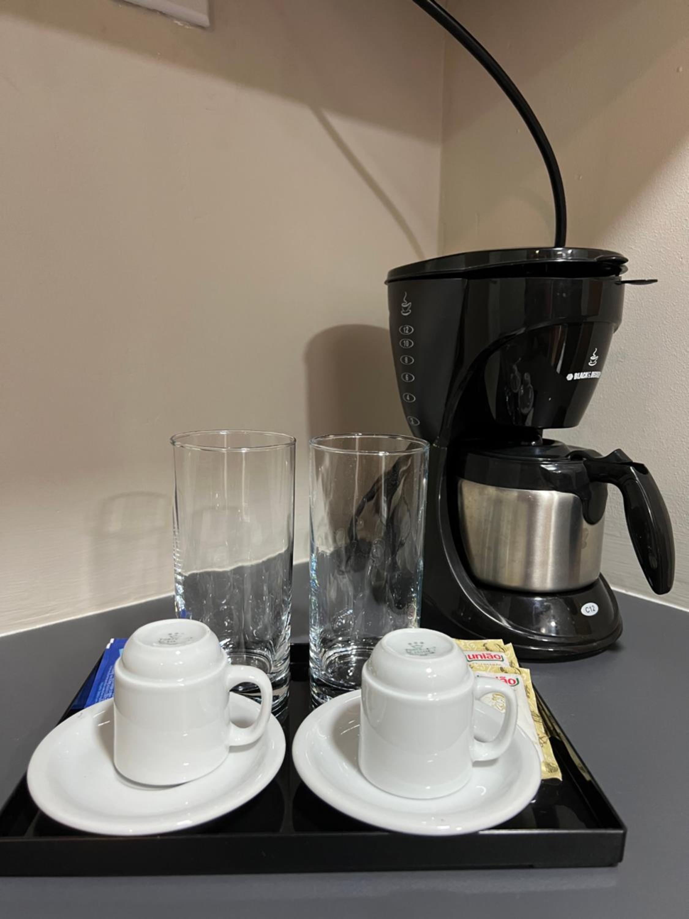 A suíte é confortável, deixam uma. Maquina de café com 2 cápsulas, muito bom