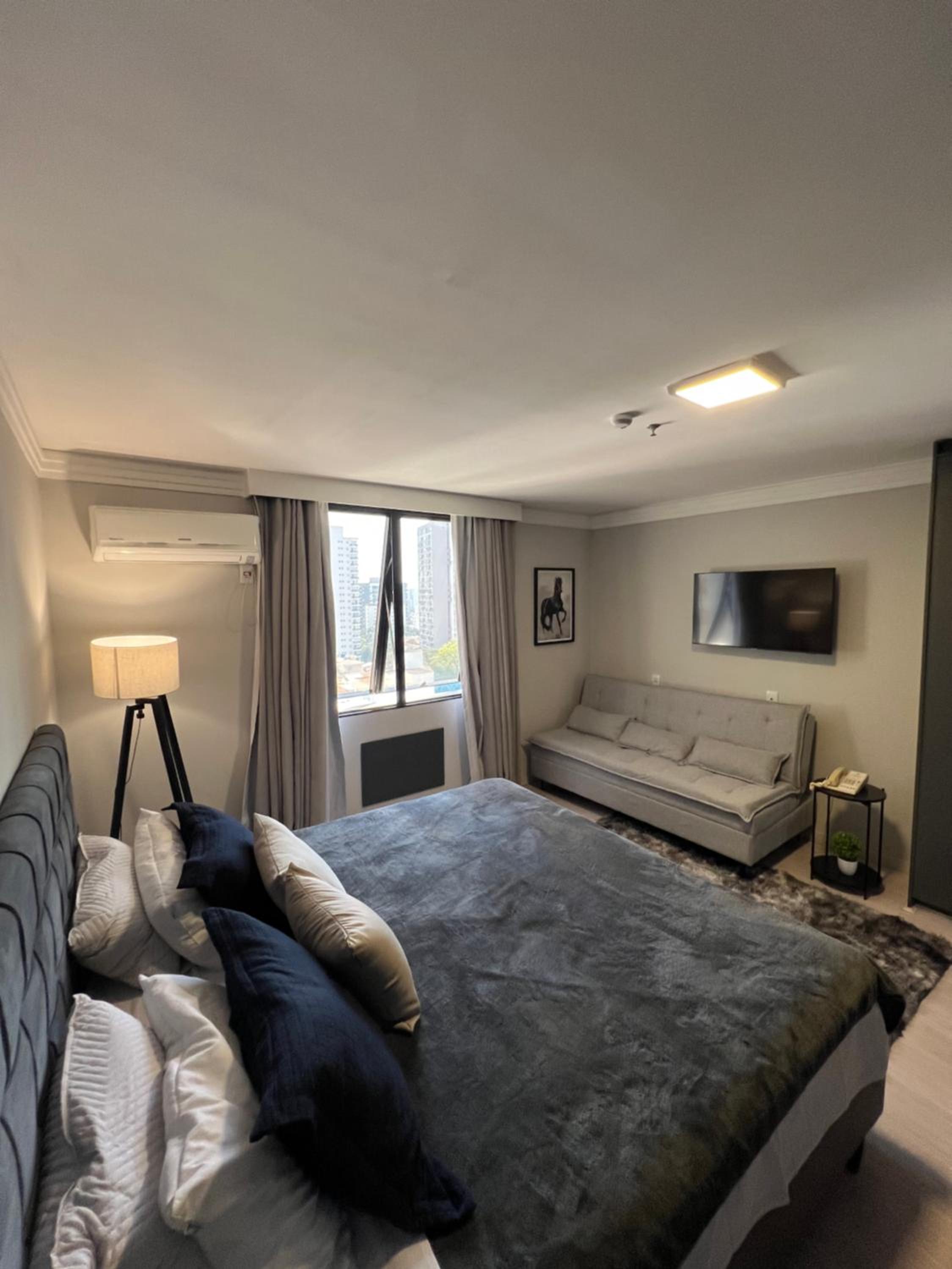 Suíte hotel Aeroporto Congonhas offers 5-star accommodation with well-equipped guest rooms featuring air conditioning, fridge, microwave, and coffee machine. Guests can enjoy a comfortable stay with amenities like a bath or shower, free toiletries, and plush bed linens, ensuring a relaxing experience.