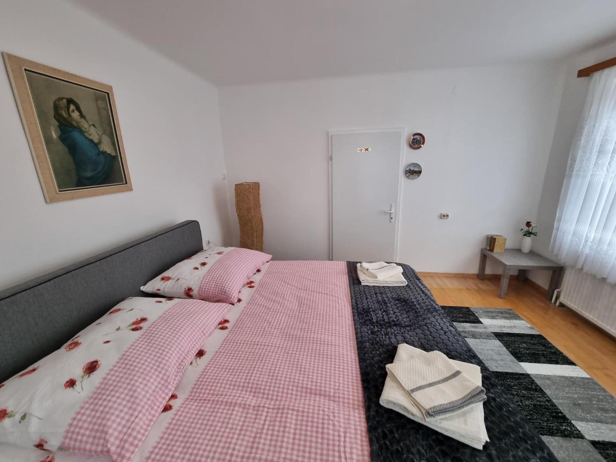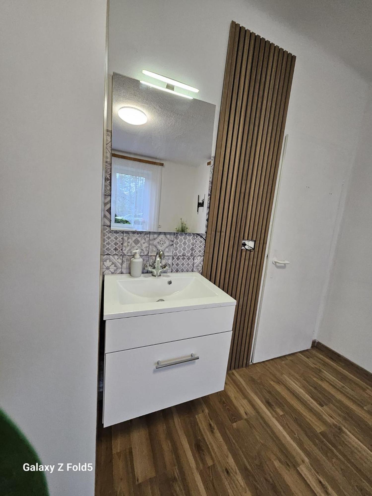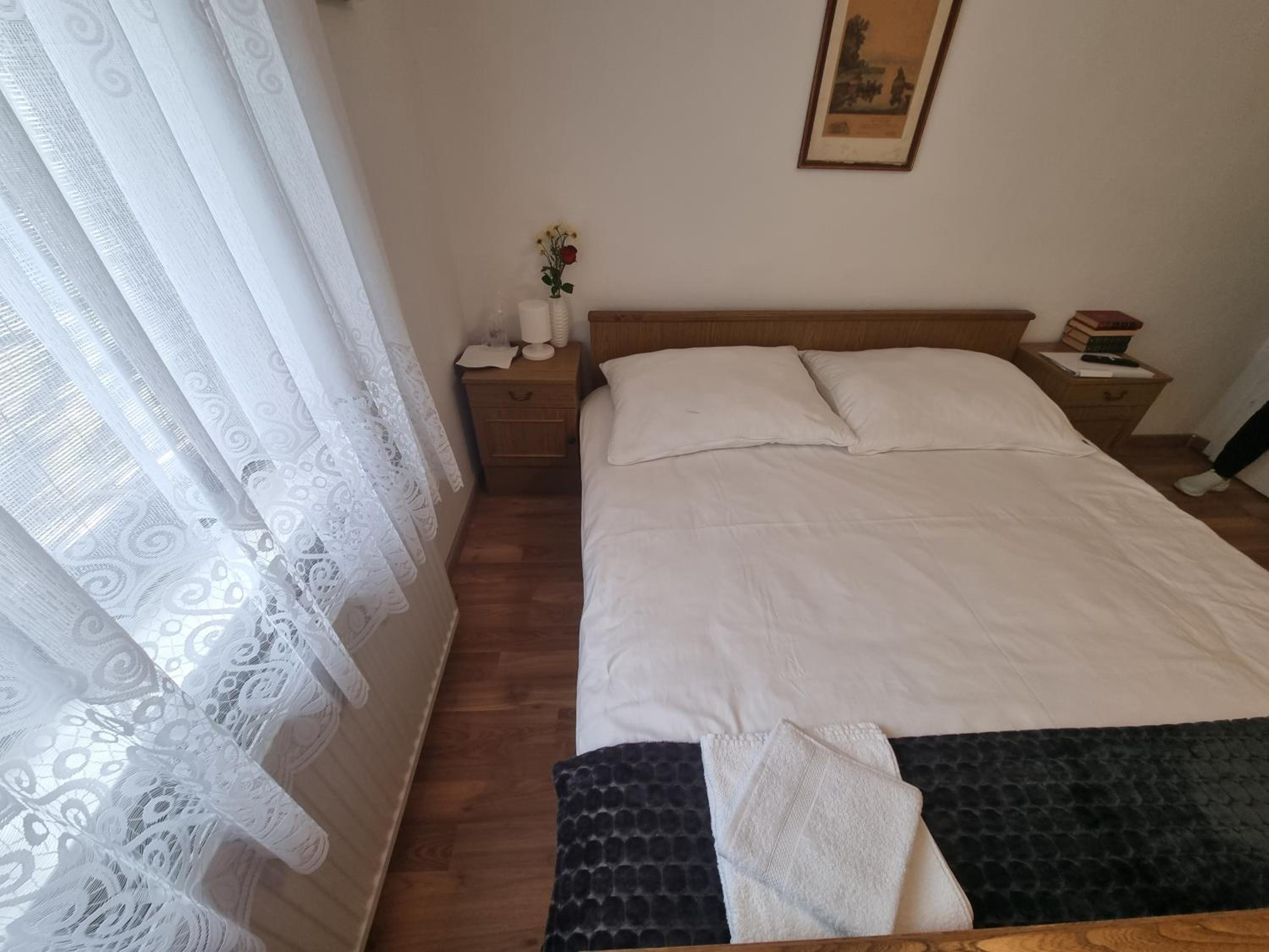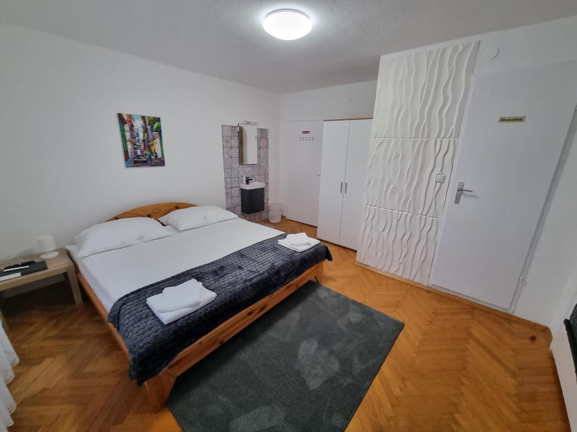 Ein altes Haus auf einem ungepflegt Grundstück, in der Garage ( Fahrrad- Abstellraum) liegt die Wäsche für die Zimmer offen rum, völlig unordentlich. Wir hatten ein DZ mit Dusche und WC. Die Fliesen wölbten, n sich von der Wand, bei Berührung fallen die runter. Duschwanne aussen schimmelig. Armaturen locker, , Putz bröckelt. Alte Möbel, das Bett quietscht und ist unbequem. Dieses Haus gehört grundsaniert, dort kann man nicht wohnen und schon gar nicht für 90 € pro Nacht, eine bodenlose Frechheit.