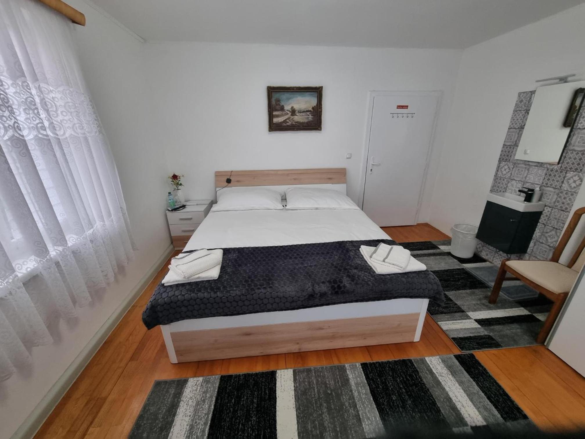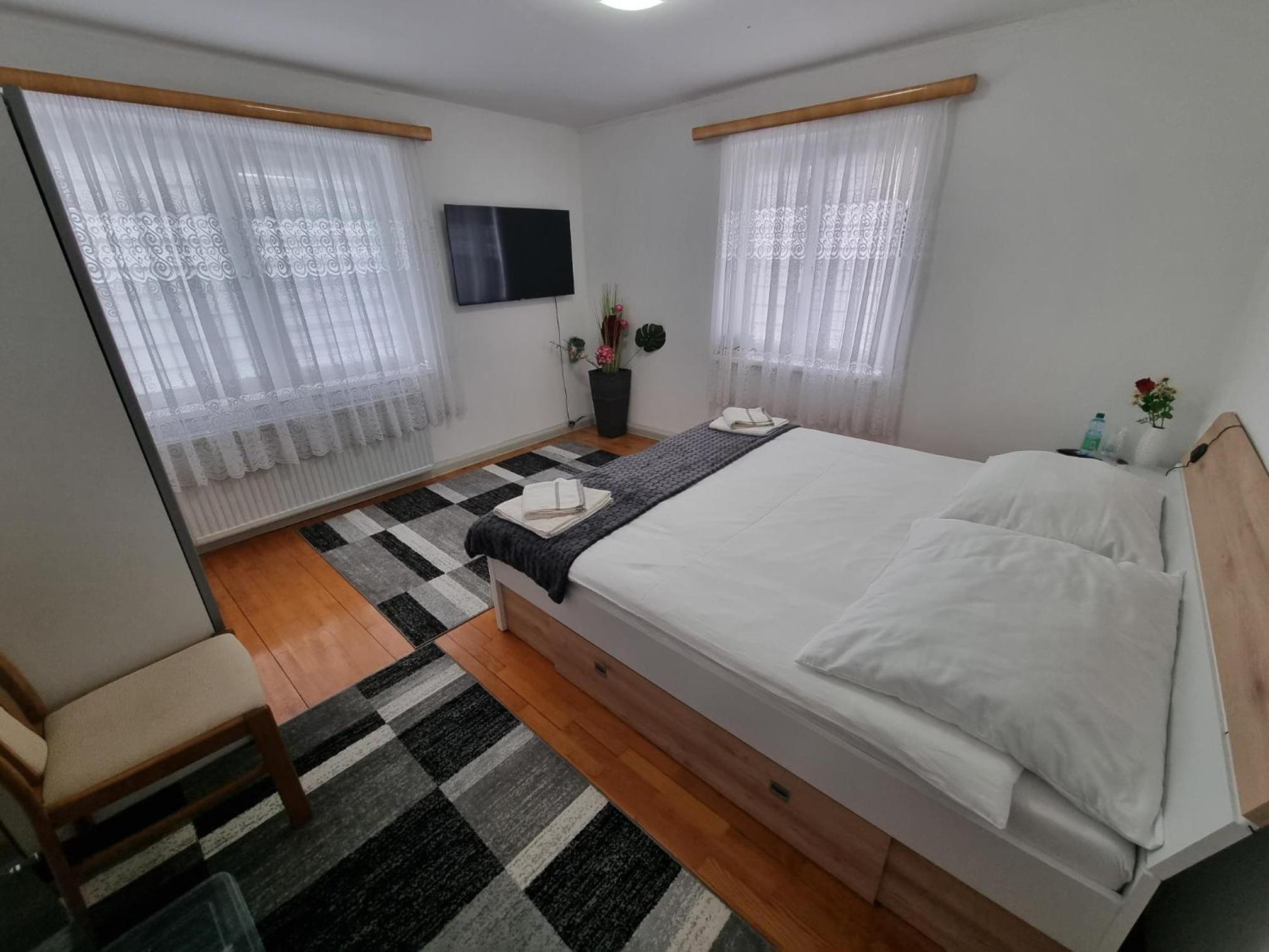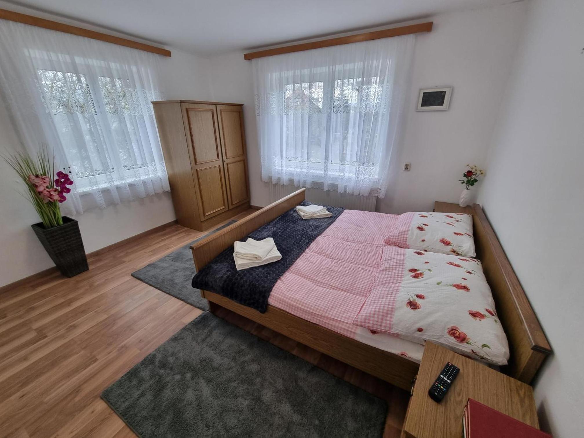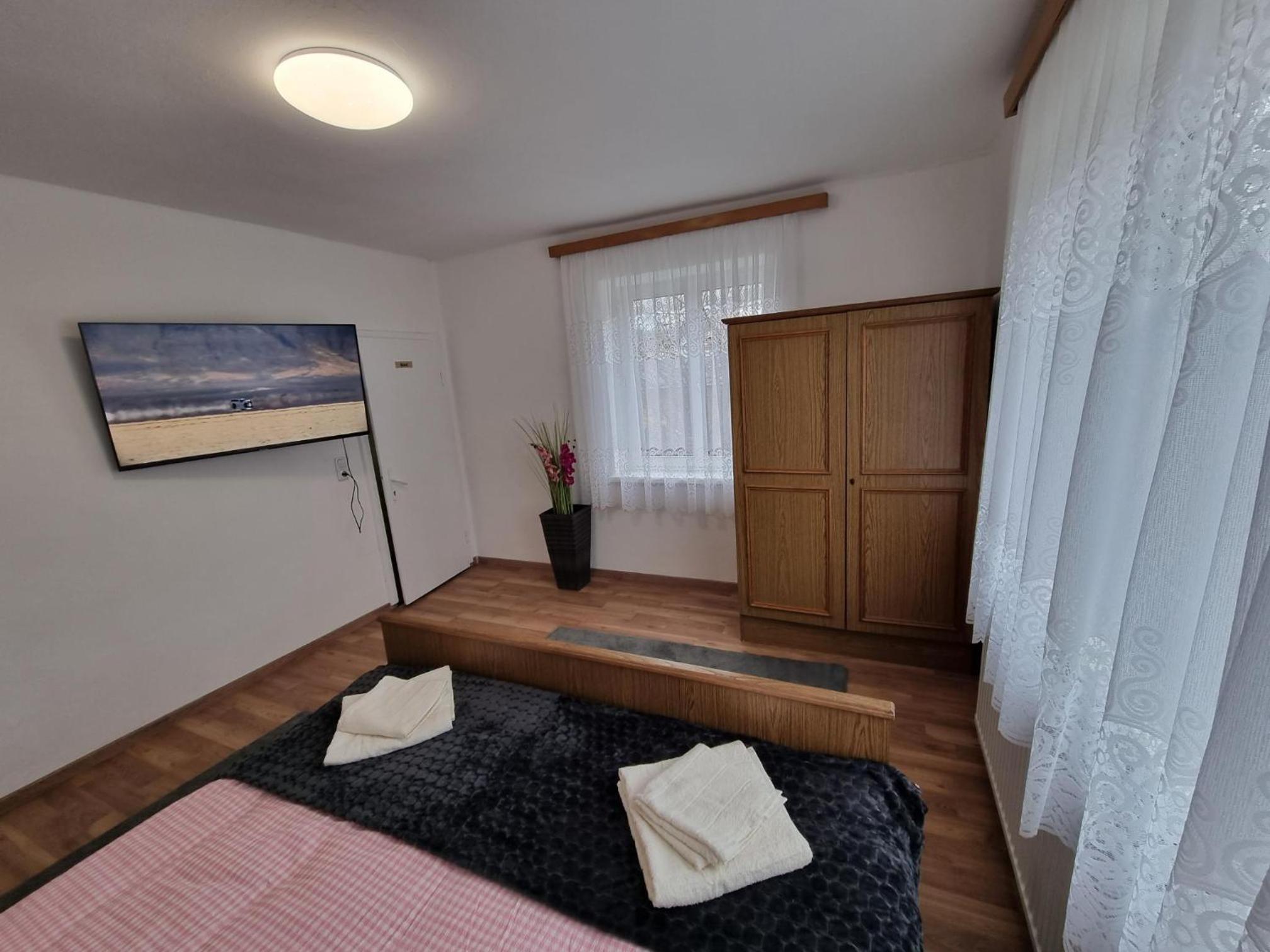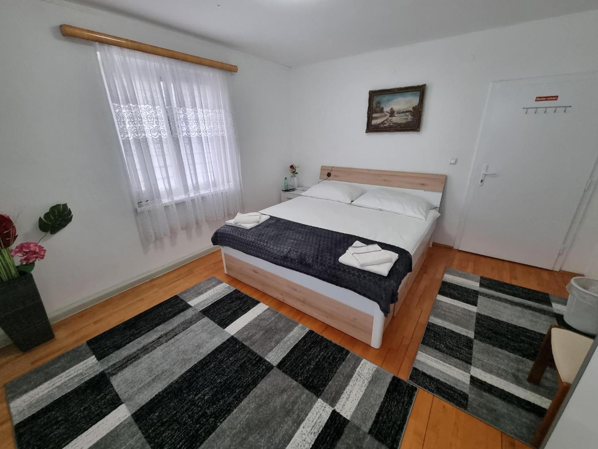 Ein altes Haus auf einem ungepflegt Grundstück, in der Garage ( Fahrrad- Abstellraum) liegt die Wäsche für die Zimmer offen rum, völlig unordentlich. Wir hatten ein DZ mit Dusche und WC. Die Fliesen wölbten, n sich von der Wand, bei Berührung fallen die runter. Duschwanne aussen schimmelig. Armaturen locker, , Putz bröckelt. Alte Möbel, das Bett quietscht und ist unbequem. Dieses Haus gehört grundsaniert, dort kann man nicht wohnen und schon gar nicht für 90 € pro Nacht, eine bodenlose Frechheit.