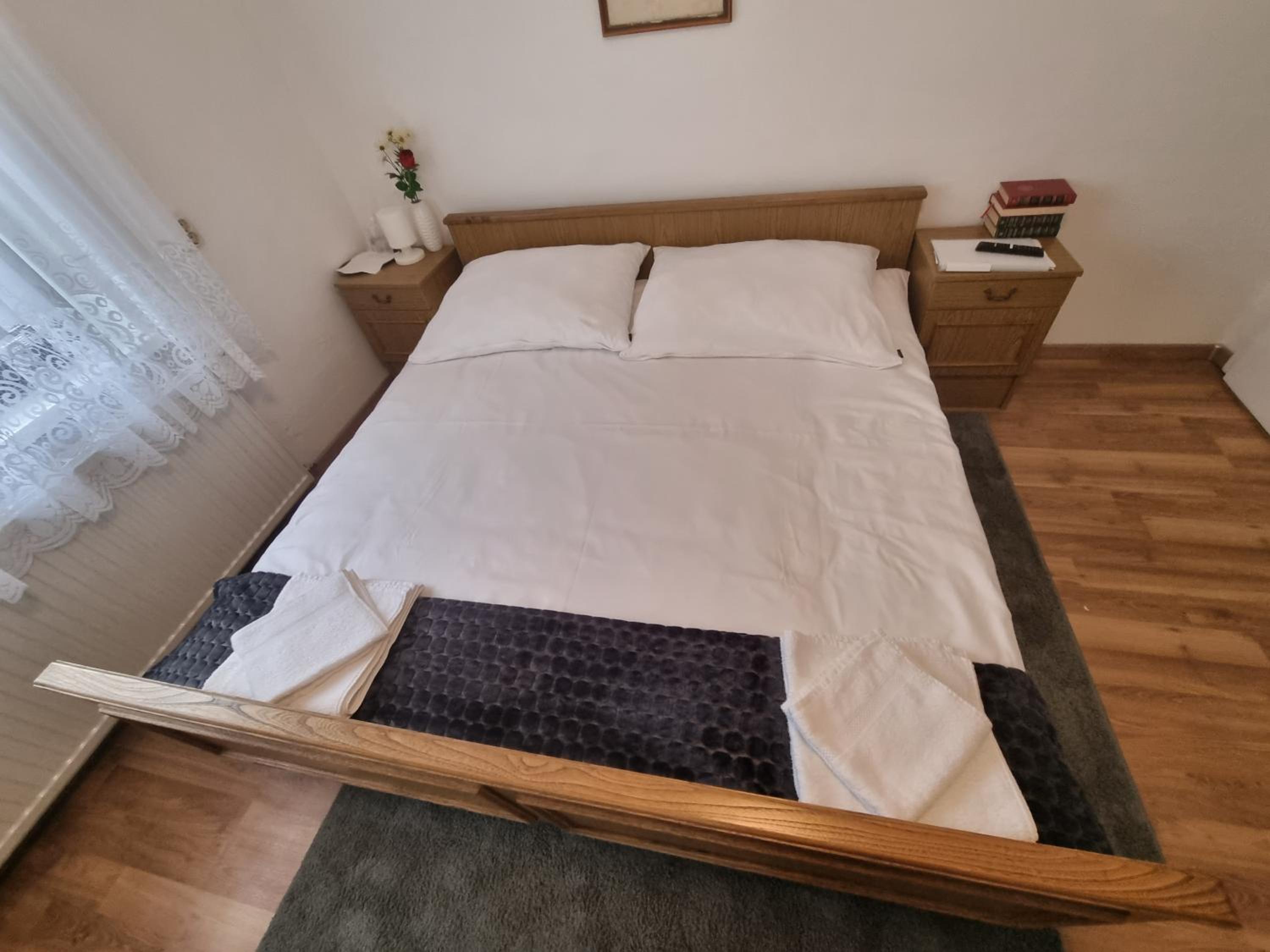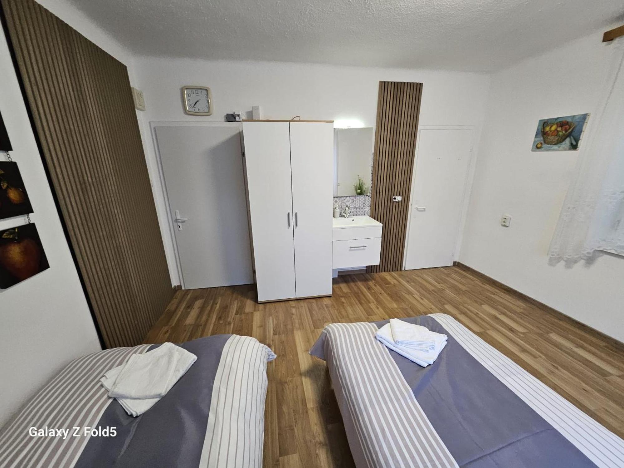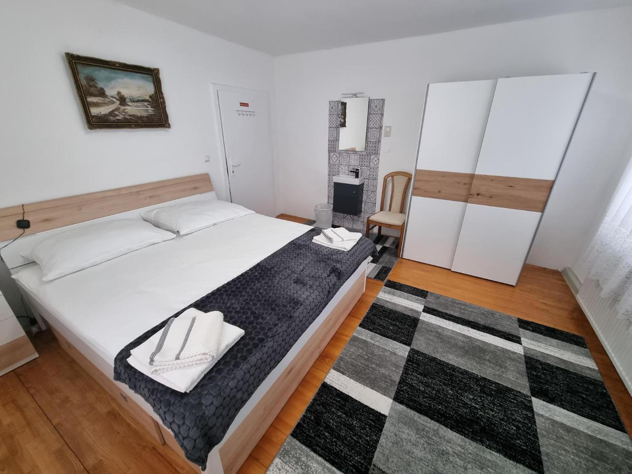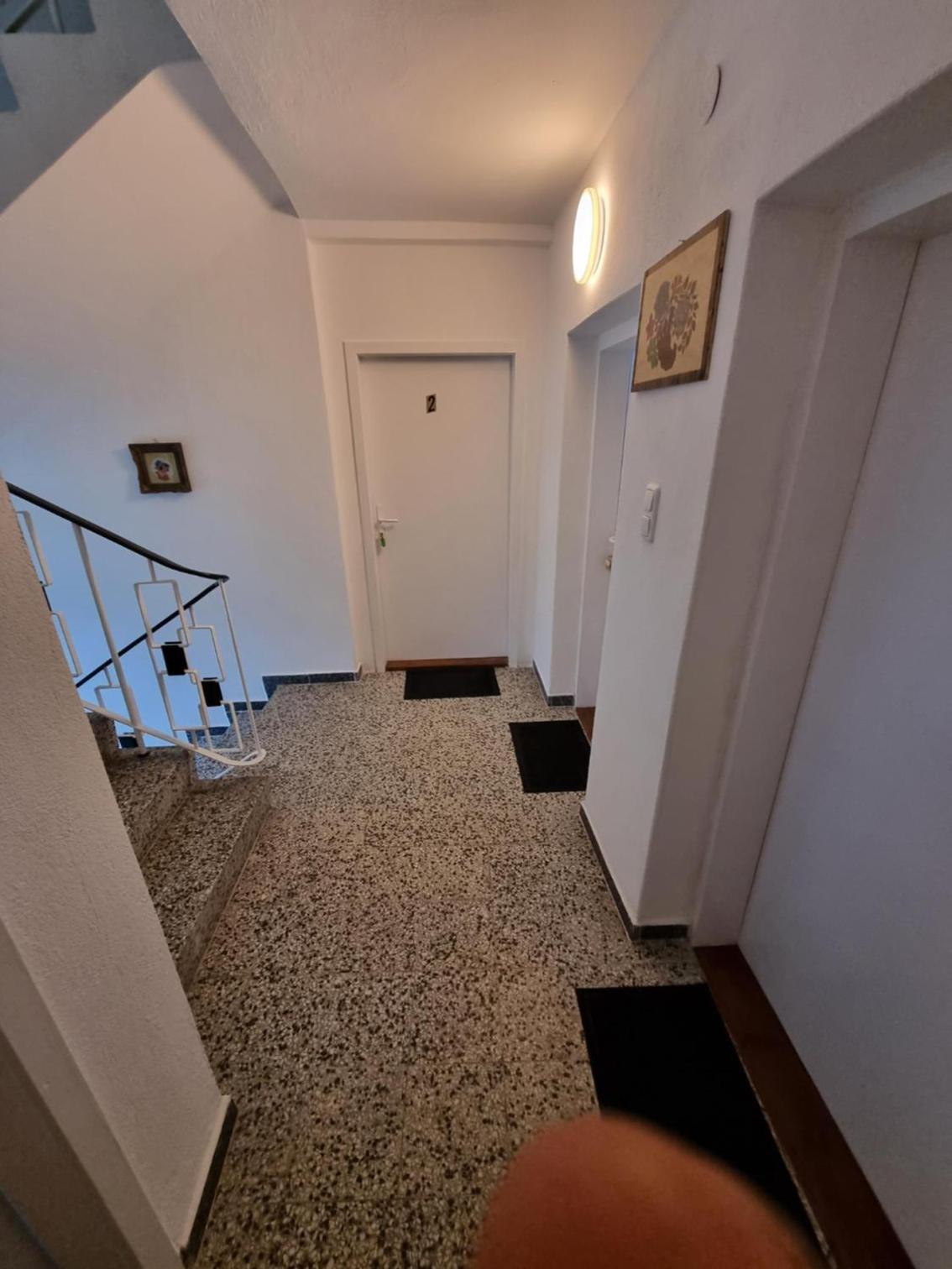 Ein altes Haus auf einem ungepflegt Grundstück, in der Garage ( Fahrrad- Abstellraum) liegt die Wäsche für die Zimmer offen rum, völlig unordentlich. Wir hatten ein DZ mit Dusche und WC. Die Fliesen wölbten, n sich von der Wand, bei Berührung fallen die runter. Duschwanne aussen schimmelig. Armaturen locker, , Putz bröckelt. Alte Möbel, das Bett quietscht und ist unbequem. Dieses Haus gehört grundsaniert, dort kann man nicht wohnen und schon gar nicht für 90 € pro Nacht, eine bodenlose Frechheit.