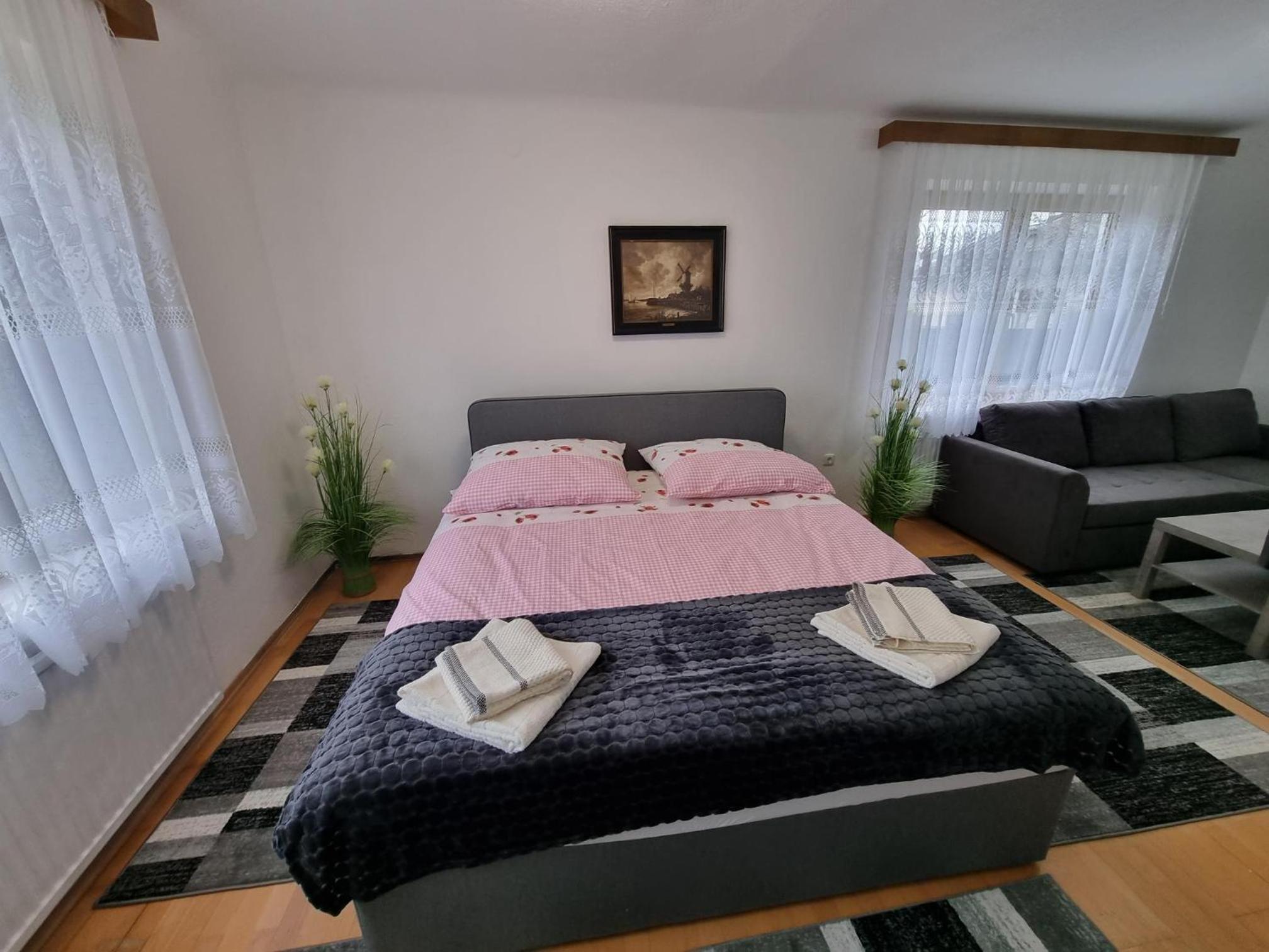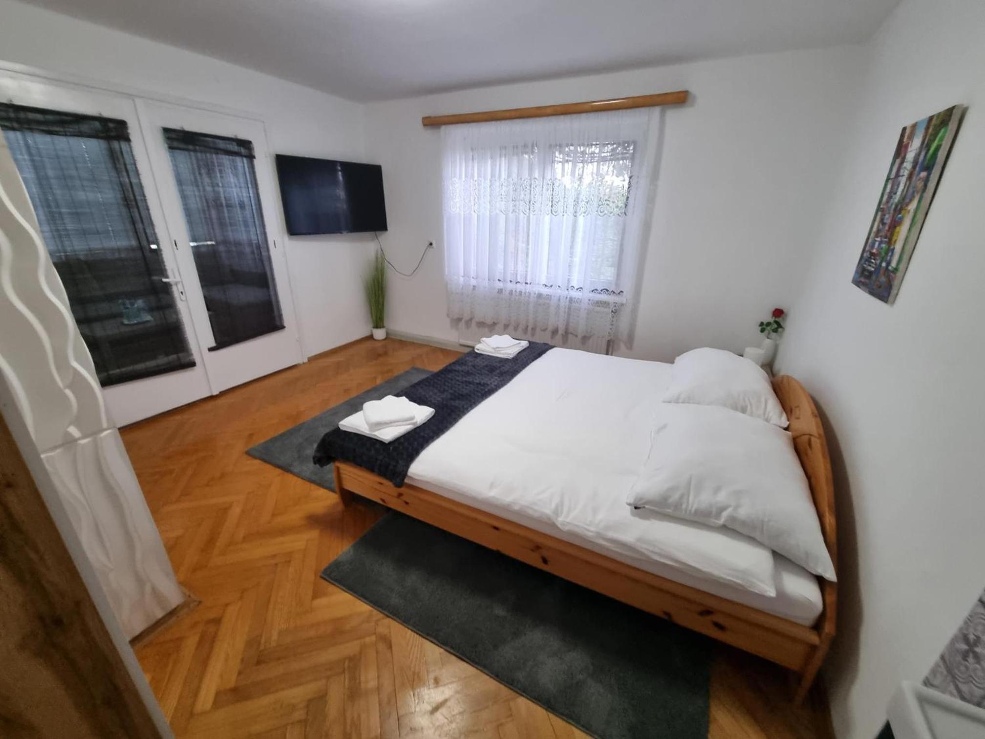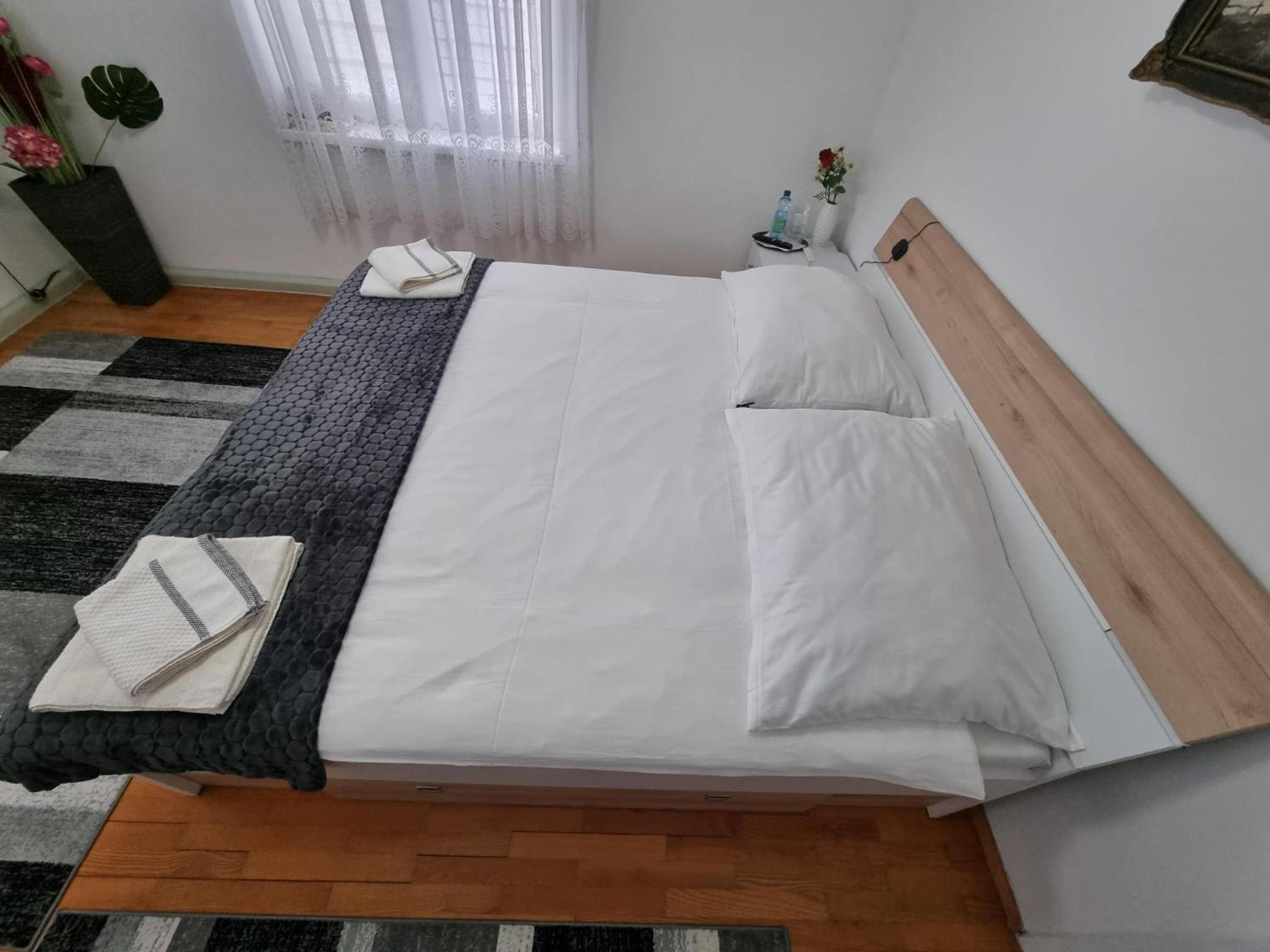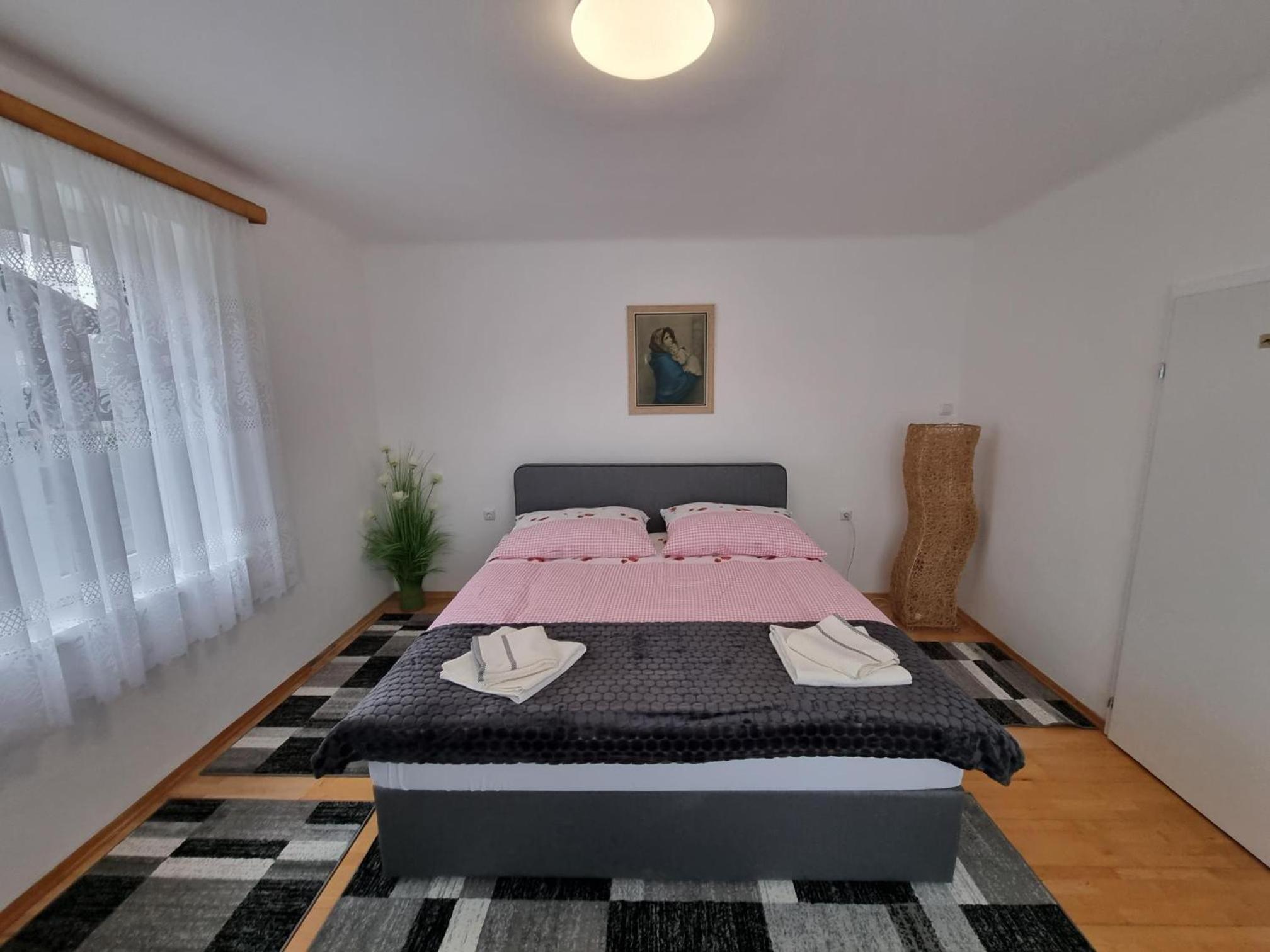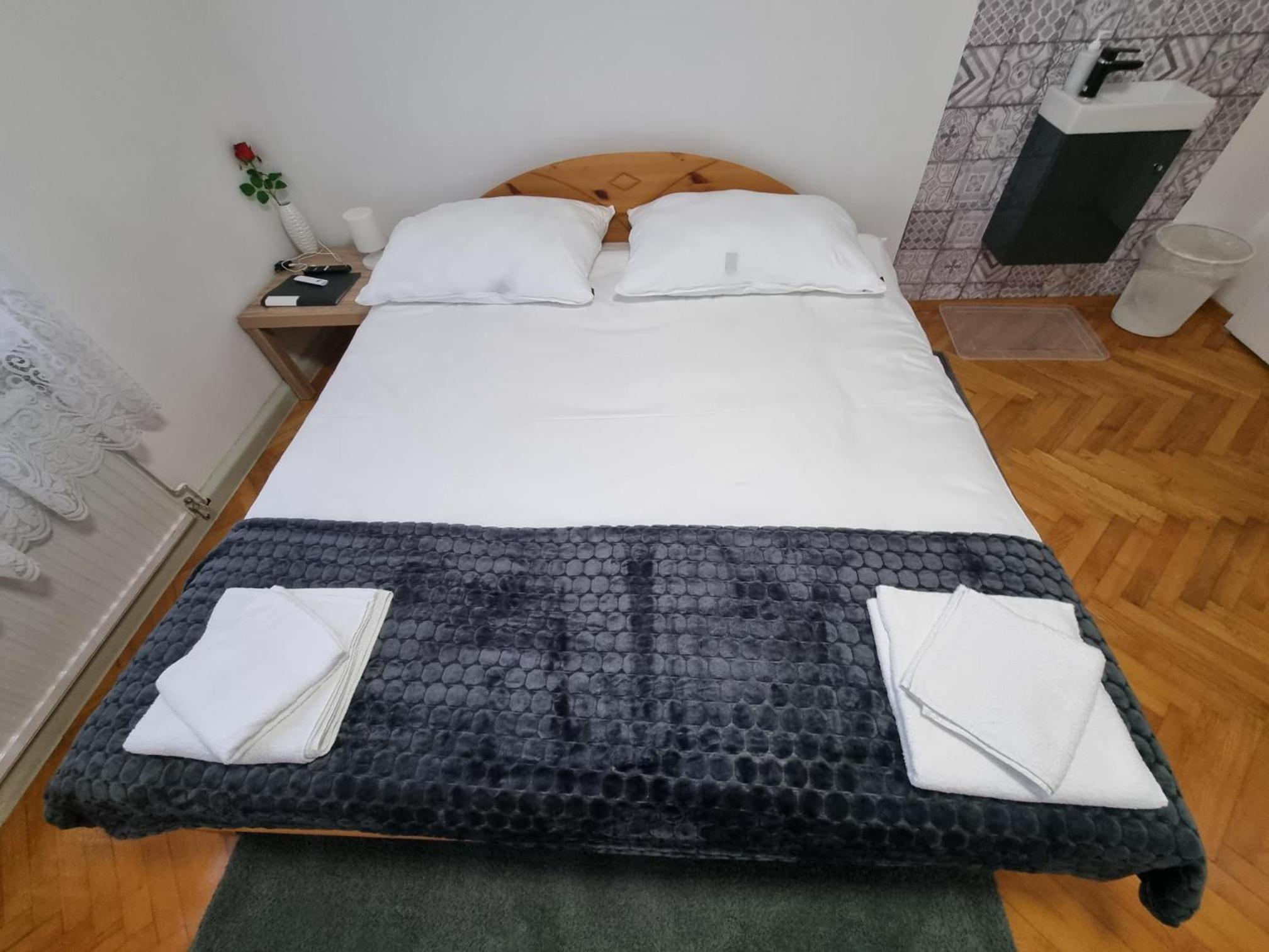 Ein altes Haus auf einem ungepflegt Grundstück, in der Garage ( Fahrrad- Abstellraum) liegt die Wäsche für die Zimmer offen rum, völlig unordentlich. Wir hatten ein DZ mit Dusche und WC. Die Fliesen wölbten, n sich von der Wand, bei Berührung fallen die runter. Duschwanne aussen schimmelig. Armaturen locker, , Putz bröckelt. Alte Möbel, das Bett quietscht und ist unbequem. Dieses Haus gehört grundsaniert, dort kann man nicht wohnen und schon gar nicht für 90 € pro Nacht, eine bodenlose Frechheit.