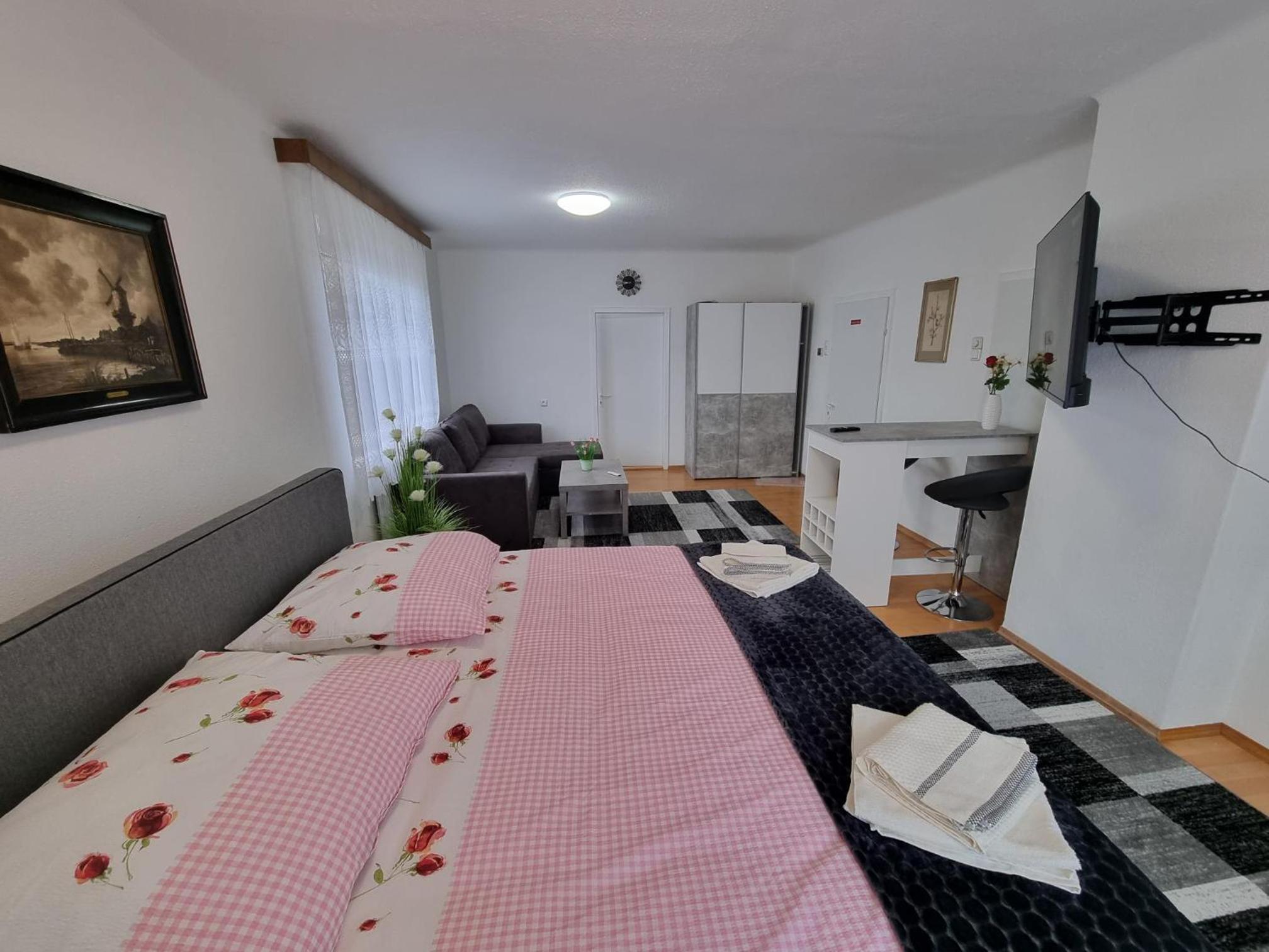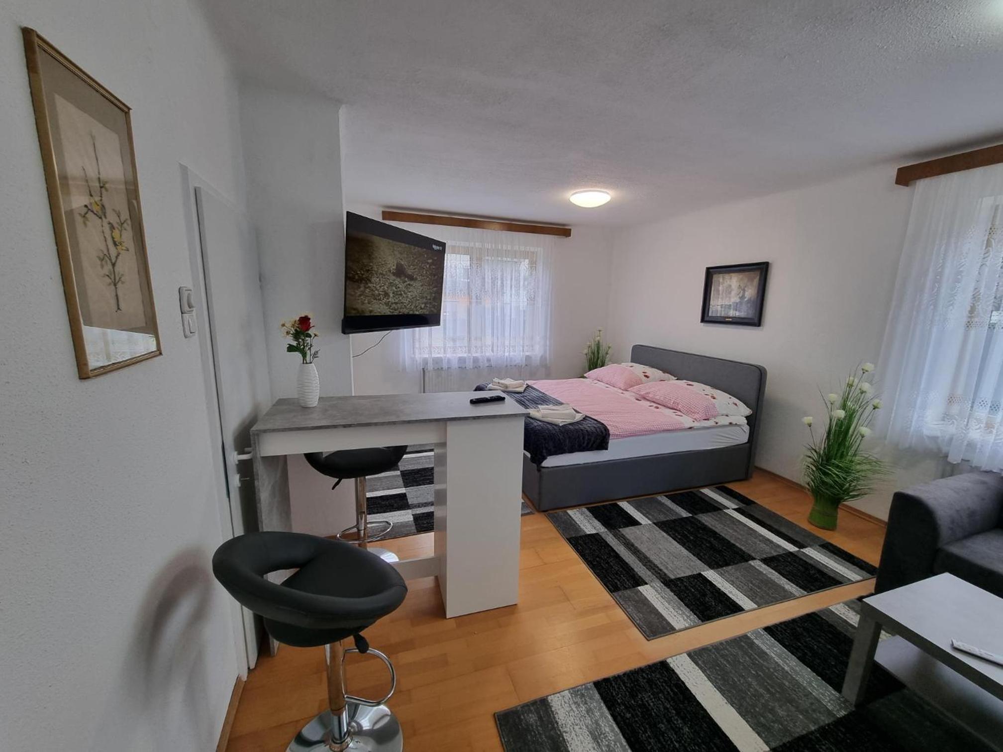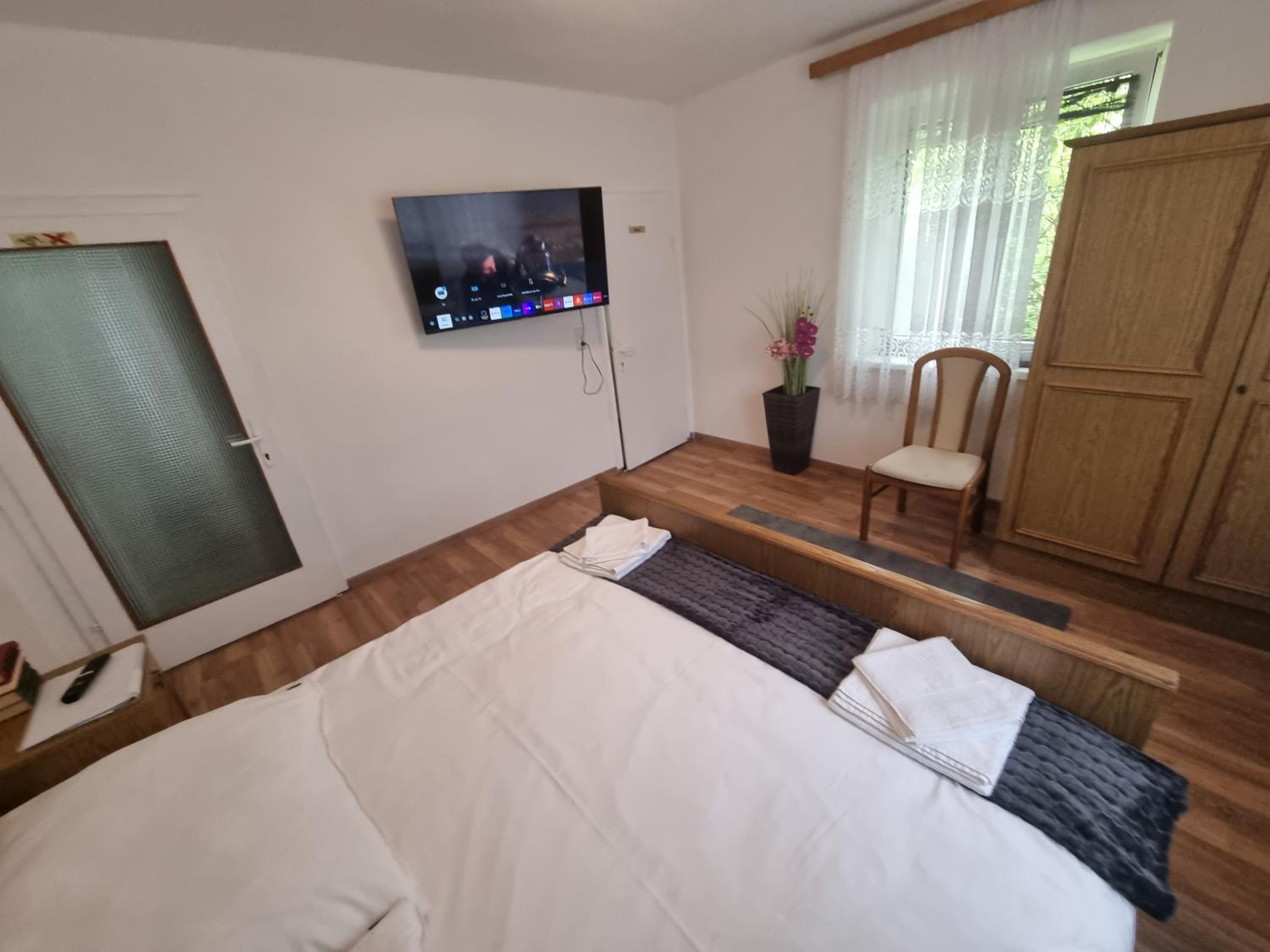 Pension DonauBlick Grein 1 offers a picturesque setting with garden views and modern amenities. Enjoy the convenience of a flat-screen TV, kitchen, and private bathroom in each room.