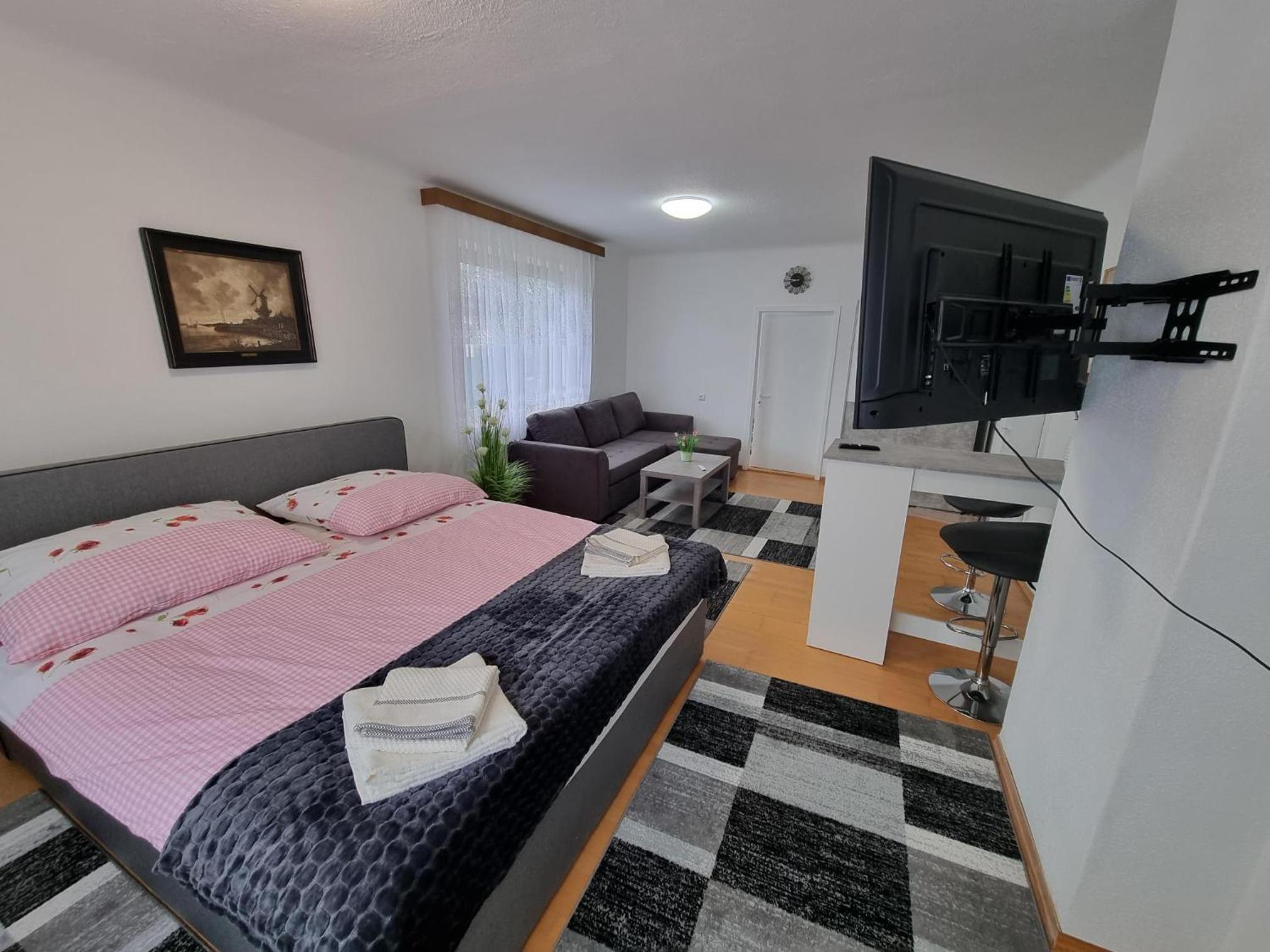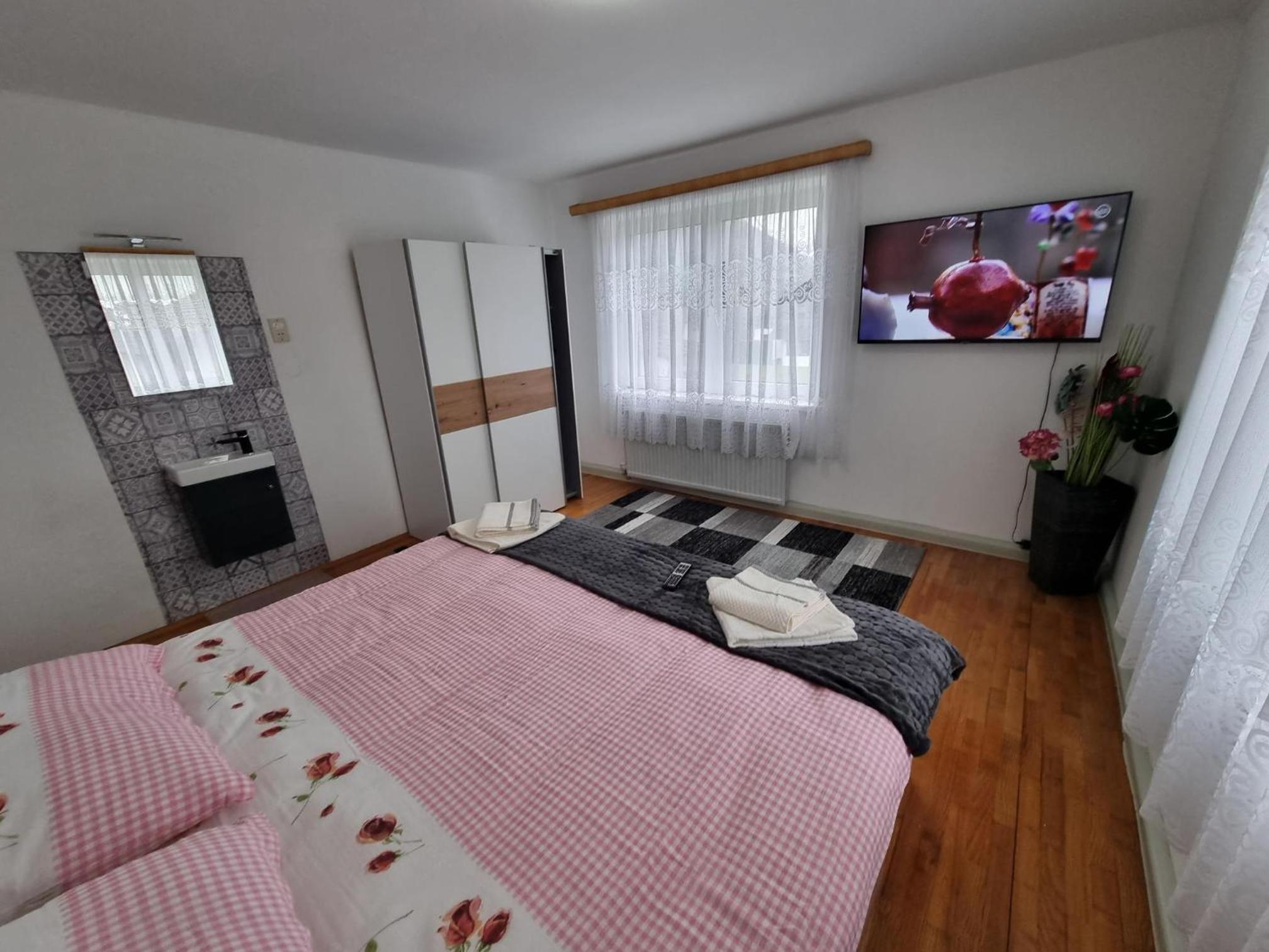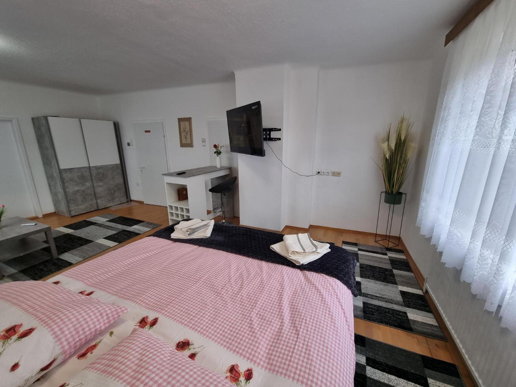 Pension DonauBlick Grein 1 offers a picturesque setting with garden views and modern amenities. Enjoy the convenience of a flat-screen TV, kitchen, and private bathroom in each room.