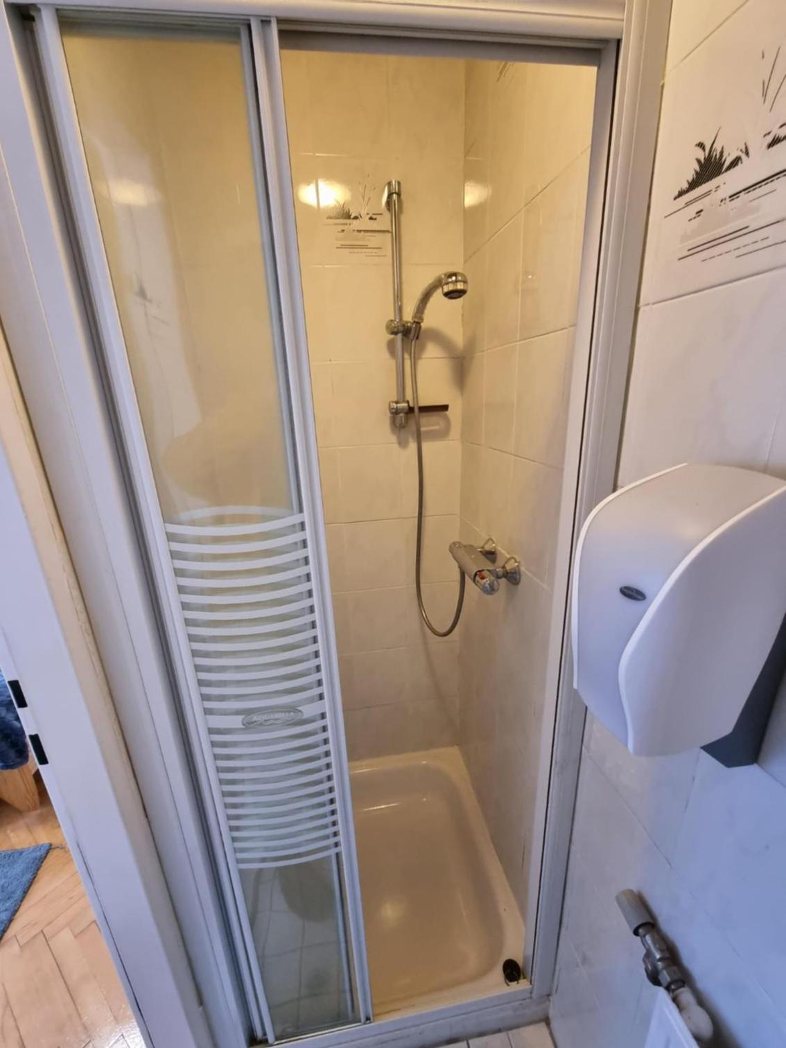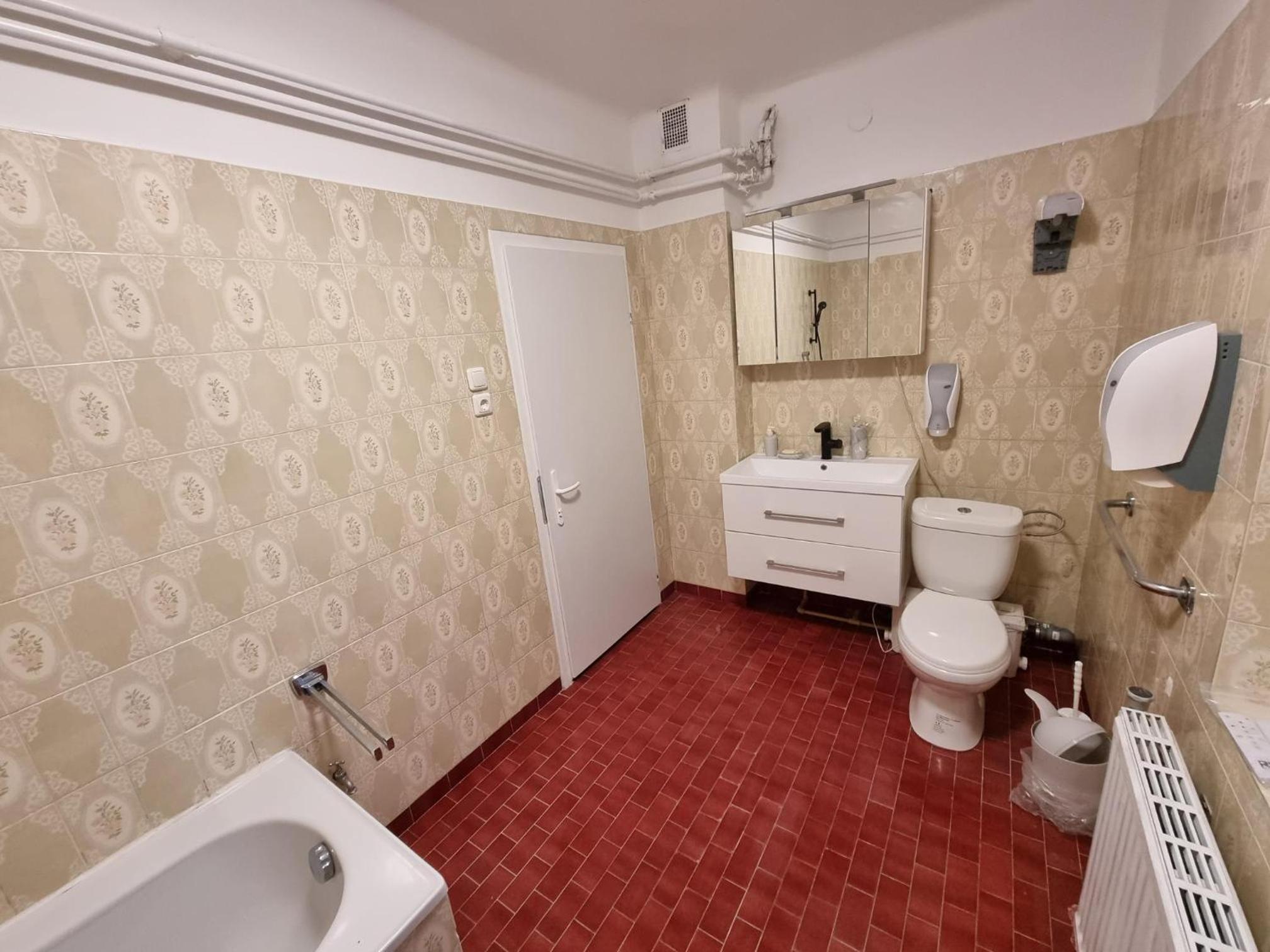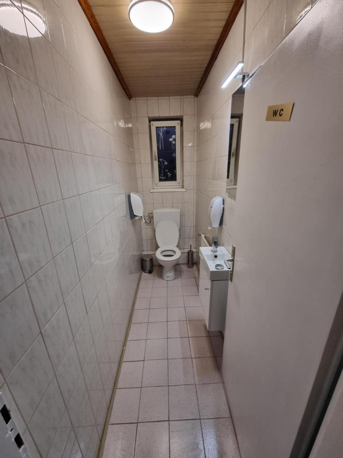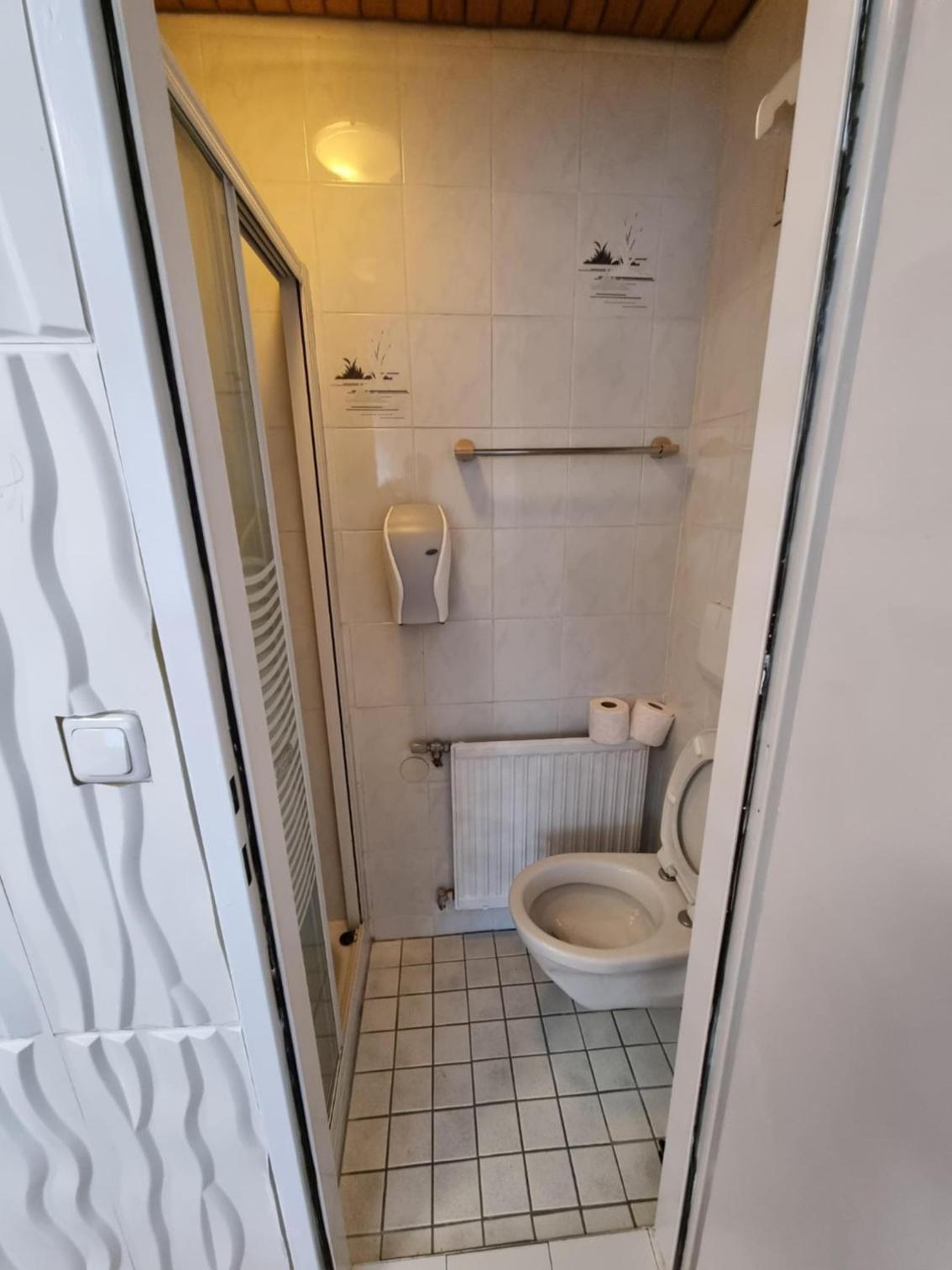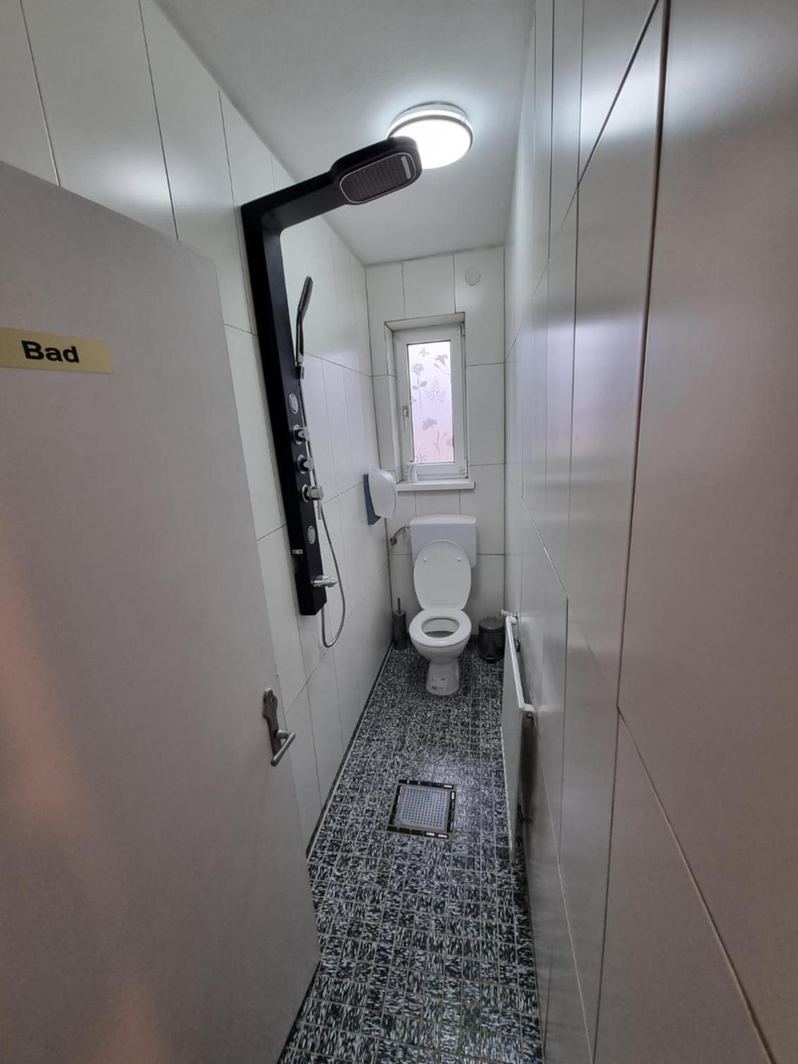Das Badezimmer und die Toilette war ein Raum in der Größe von der Toilette man musste durch die Dusche damit man zur Toilette kam und wenn jemand geduscht hatte stand den ganzen Tag Wasser und man hat immer nasse Füße bekommen wenn man auf die Toilette ging!