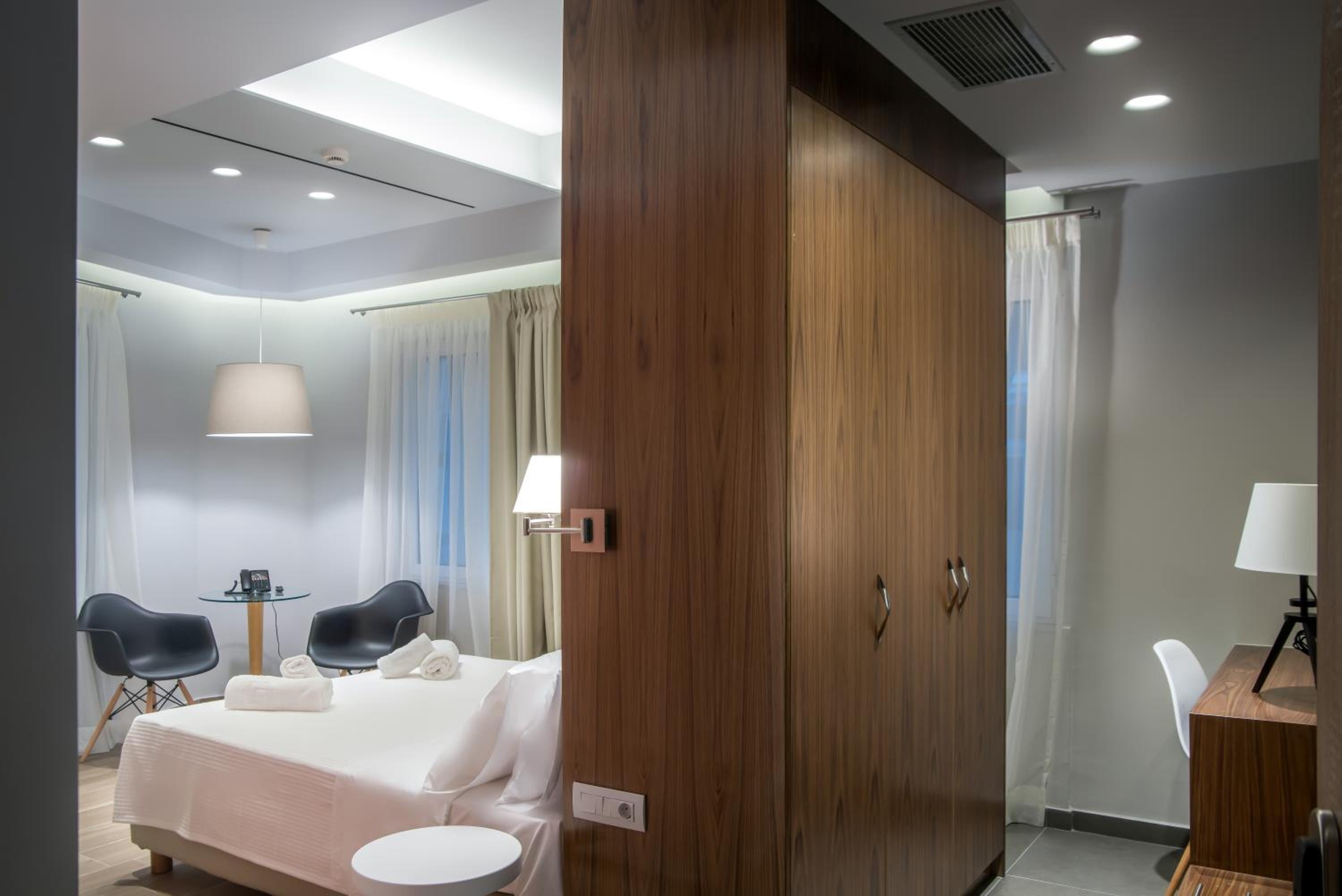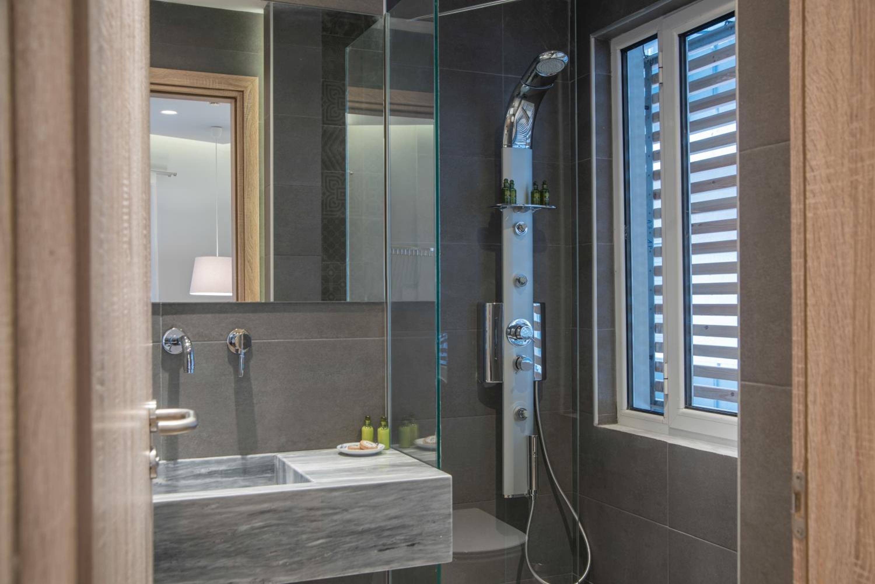 Elegant Accommodations: AD Athens Luxury Rooms & Suites offers stylish rooms and suites with modern furnishings, air conditioning, and flat-screen TVs. The private bathrooms feature hydromassage showers and premium toiletries, ensuring a comfortable stay.