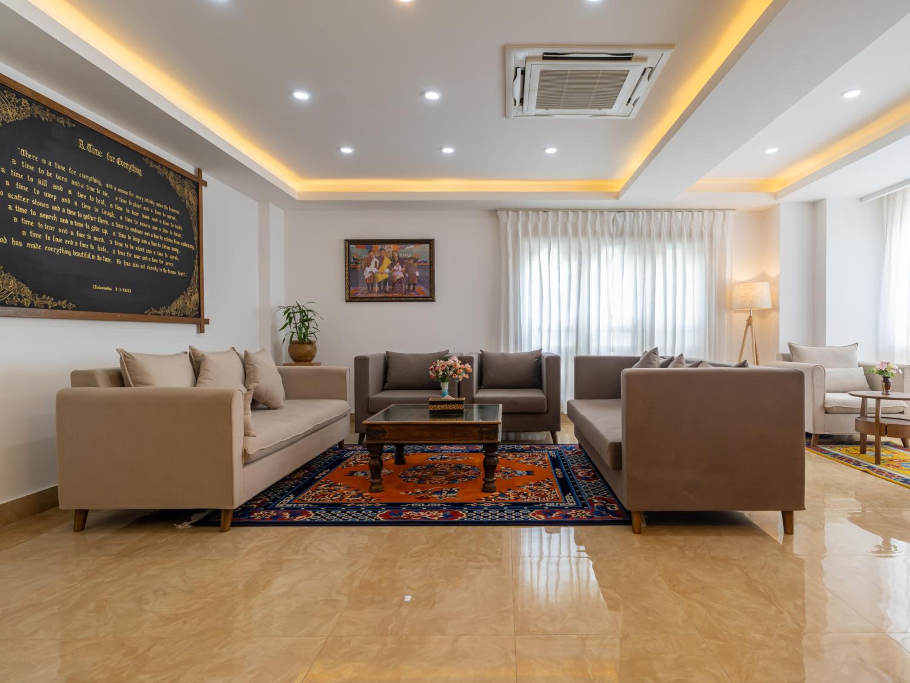 Wonderful service from the staff who welcome you with a traditional Bhutanese khata (scarf) and welcome drink. The room itself was large and well-appointed. Great location in the bustling heart of Thimphu, walking distance to lots of shops and restaurants. The restaurant serves a small selection of Bhutanese dishes which were delicious.